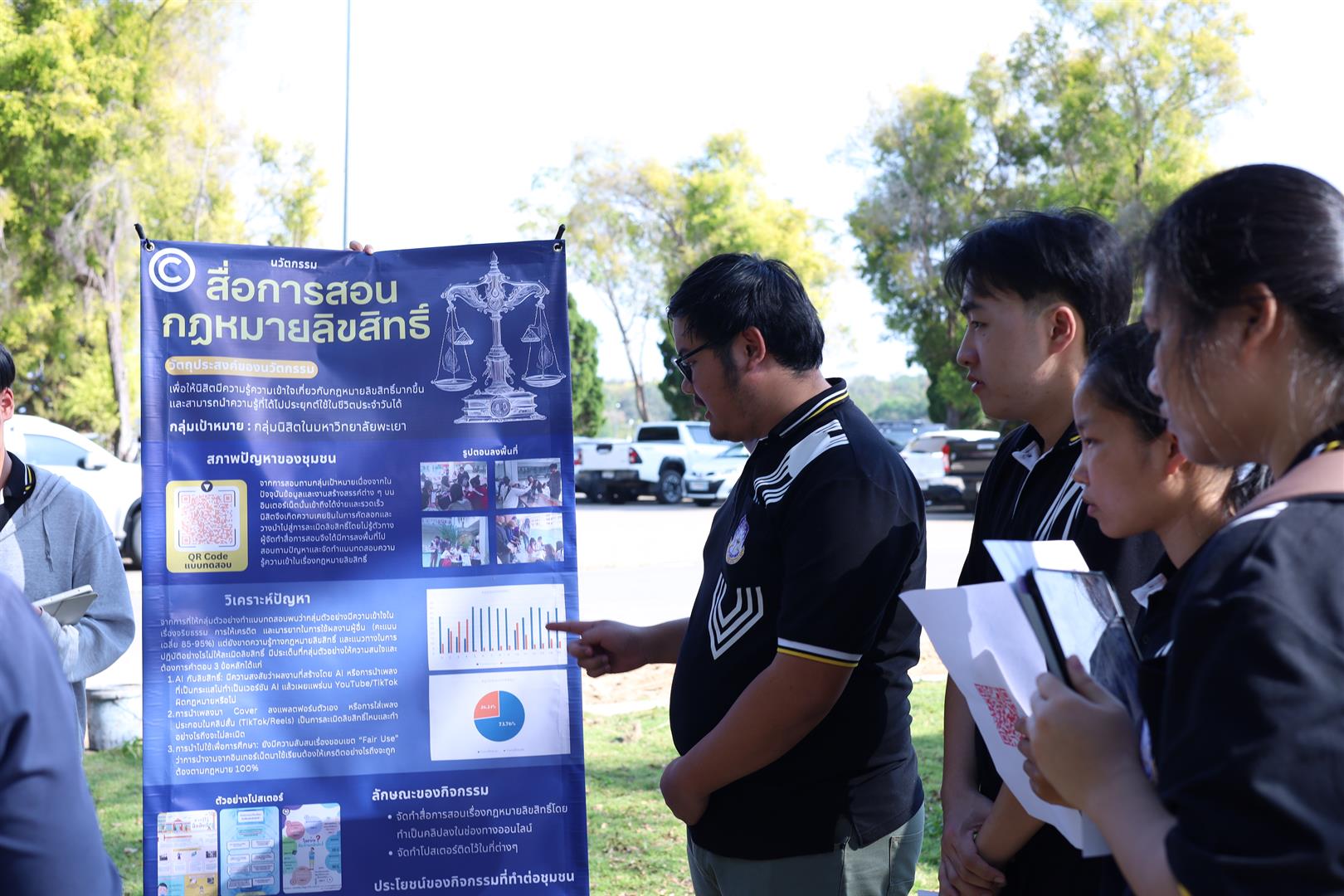 วันที่ 2 กุมภาพันธ์ 2569 ณ แจ่งนิติ คณะนิติศาสตร์ มหาวิทยาลัยพะเยา จัดกิจกรรมเชิญชวนนิสิตที่ลงทะเบียนรายวิชาบูรณาการความรู้สู่นวัตกรรมทางวิชาชีพ เพื่อนำเสนอผลงานและเข้าประกวดผลงานในหัวข้อ "นวัตกรรมกฎหมายเพื่อชุมชน" ซึ่งรางวัลชนะเลิศจะได้รับเงินรางวัล 5,000 บาท รองชนะเลิศอันดับ 1 3,000 บาท รองชนะเลิศอันดับ 2 2,000 บาท รางวัลชมเชย 1,000 บาท
