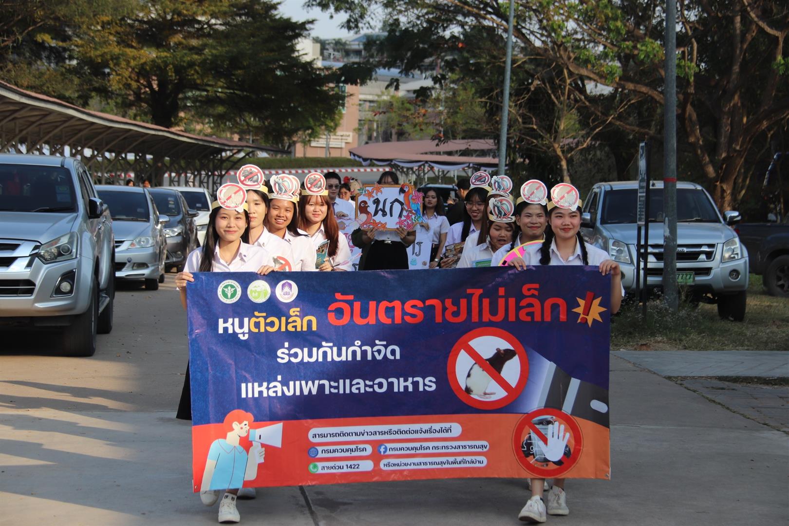 วันที่ 4 กุมภาพันธ์ 2569 สาขาวิชาอนามัยสิ่งแวดล้อม คณะสาธารณสุขศาสตร์ ร่วมกับหน่วยหอพัก และศูนย์สุขภาวะ กองกิจการนิสิต ได้จัดกิจกรรมเดินรณรงค์ให้ความรู้เกี่ยวกับสัตว์พาหะนำโรค ได้แก่ ยุง เห็บหมัด แมลงสาบ นก แมลงวัน และหนู ซึ่งเป็นสาเหตุสำคัญของการเกิดโรคติดต่อจากสัตว์สู่คน และอาจนำไปสู่การระบาดของหลายโรค กิจกรรมดังกล่าวจัดขึ้น ณ บริเวณเวียงพะเยา โรงอาหาร และหอพักนิสิต