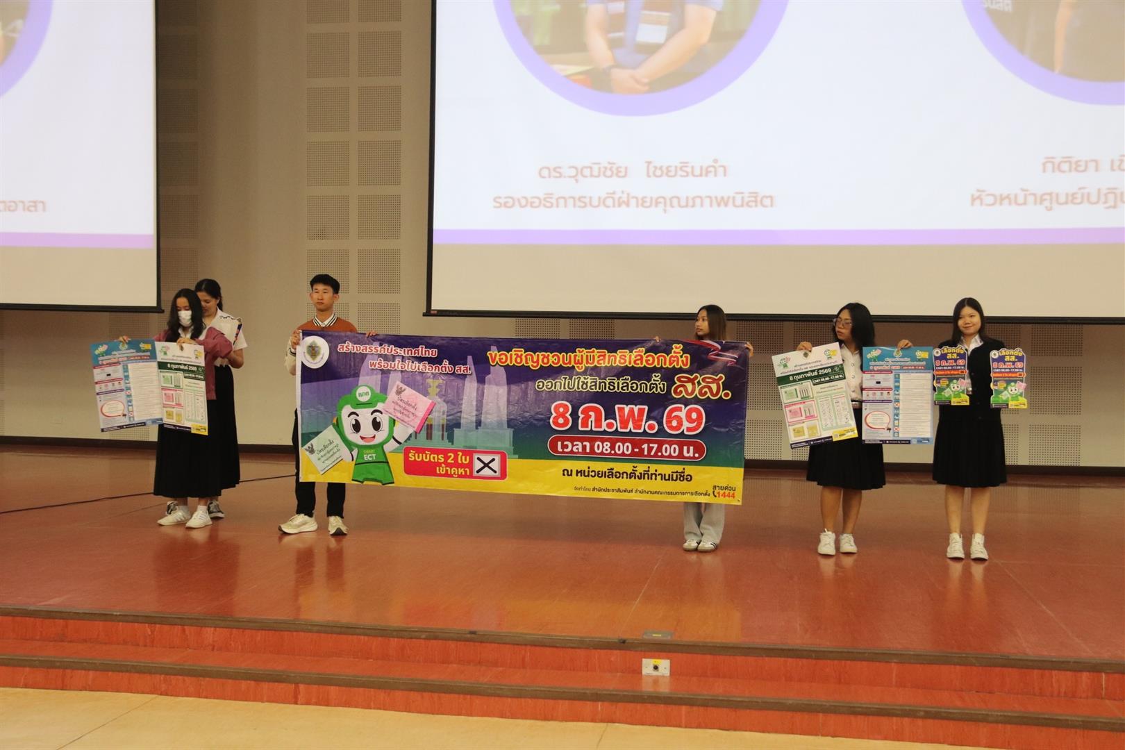 วันที่ 30 มกราคม 2569 งานวินัยนิสิต กองกิจการนิสิต มหาวิทยาลัยพะเยา รณรงค์เลือกตั้งสุดสร้างสรรค์ “UP Vote 2026: พลังนิสิต พลังประชาธิปไตย” มุ่งเน้นสร้างความตระหนักรู้และเตรียมความพร้อมให้นิสิตและบุคลากร ในการออกไปใช้สิทธิเลือกตั้งสมาชิกสภาผู้แทนราษฎร (ส.ส.) และการออกเสียงประชามติ ที่กำลังจะมาถึงในวันอาทิตย์ที่ 8 กุมภาพันธ์ 2569 ณ อาคาร 99 ปี พระอุบาลีคุณูปมาจารย์ (ปวง ธมฺมปญฺโญ) ณ มหาวิทยาลัยพะเยา นิสิตและบุคลากรมหาวิทยาลัยพะเยาที่มีสิทธิเลือกตั้ง ออกไปใช้สิทธิเลือกตั้ง ส.ส. และออกเสียงประชามติ นิสิตมีความรู้ความเข้าใจเกี่ยวกับหน้าที่พลเมือง ความสำคัญของการเลือกตั้ง ส.ส. และกระบวนการออกเสียงประชามติเพื่อกำหนดทิศทางรัฐธรรมนูญฉบับใหม่สร้างวัฒนธรรมทางการเมืองเชิงบวกในรั้วมหาวิทยาลัย ส่งเสริมการยอมรับความเห็นต่างและการมีส่วนร่วมทางการเมือง โดย ดร.วุฒิชัย ไชยรินคำ รองอธิการบดีฝ่ายคุณภาพนิสิต เปิดเผยว่า “งานวินัยนิสิต กองกิจการนิสิตมีภารกิจหลักในการส่งเสริมให้นิสิตเป็นพลเมืองที่ดี (Active Citizen) การเลือกตั้งครั้งนี้มีความสำคัญอย่างยิ่งเนื่องจากมีการออกเสียงประชามติควบคู่ไปด้วย โครงการนี้จึงมุ่งหวังให้นิสิตเข้าใจขั้นตอนการลงคะแนนบัตร 3 ใบ เพื่อลดจำนวนบัตรเสียและส่งเสริมการใช้สิทธิอย่างมีคุณภาพ