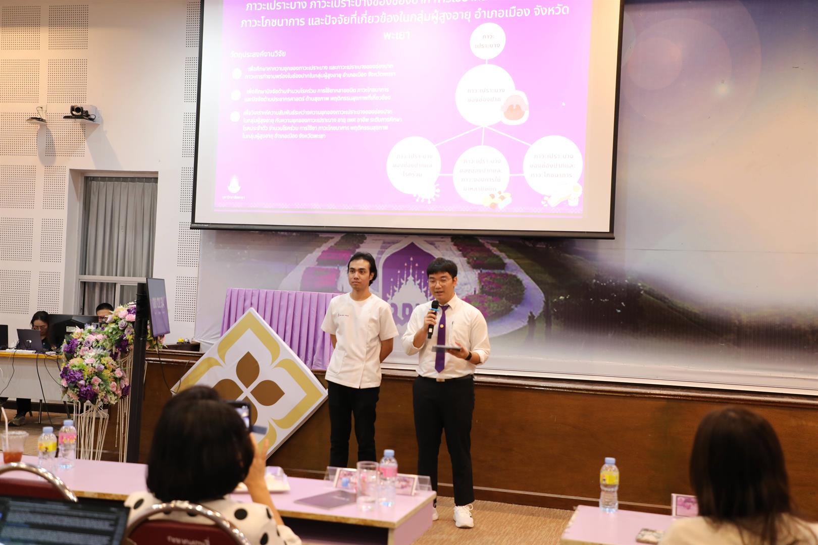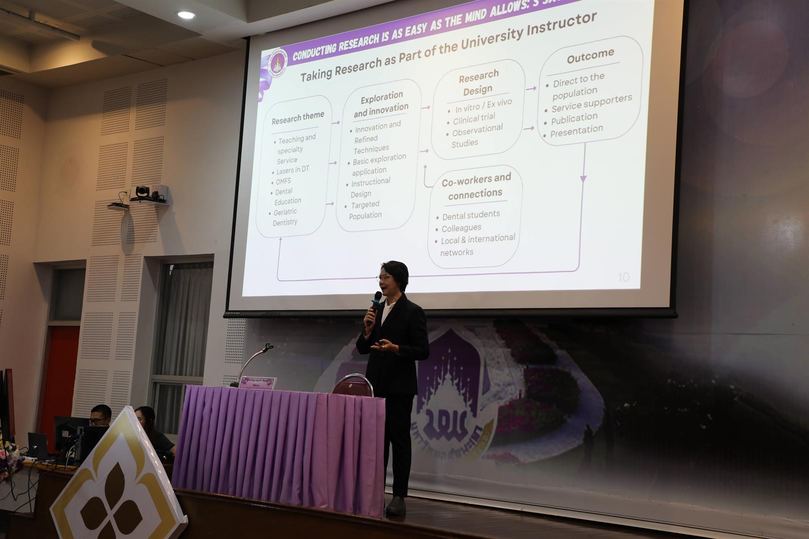 1. ห้องประชุมเมืองพะเยา: ได้มีการบรรยายพิเศษหัวข้อ “วิจัยง่ายเท่าใจคิด” โดย ศาสตราจารย์ ดร.ทันตแพทย์หญิงศจี สัตยุตม์ หัวหน้ากลุ่มวิจัยเฉพาะทางเลเซอร์วิทยาทางทันตแพทยศาสตร์ จาก คณะทันตแพทยศาสตร์ มหาวิทยาลัยขอนแก่น เวทีนำเสนอผลงานวิจัยแบบปากเปล่า (Oral Presentation) และการ Show & Share โดยนิสิตทันตแพทย์ชั้นปีที่ 5 และ 6 รวมถึงคณาจารย์ที่ได้รับทุนวิจัย และมีการให้ข้อเสนอแนะโดยผู้ทรงคุณวุฒิ เพื่อพัฒนาต่อยอดผลงานวิจัยให้สามารถตีพิมพ์ในระดับสากล