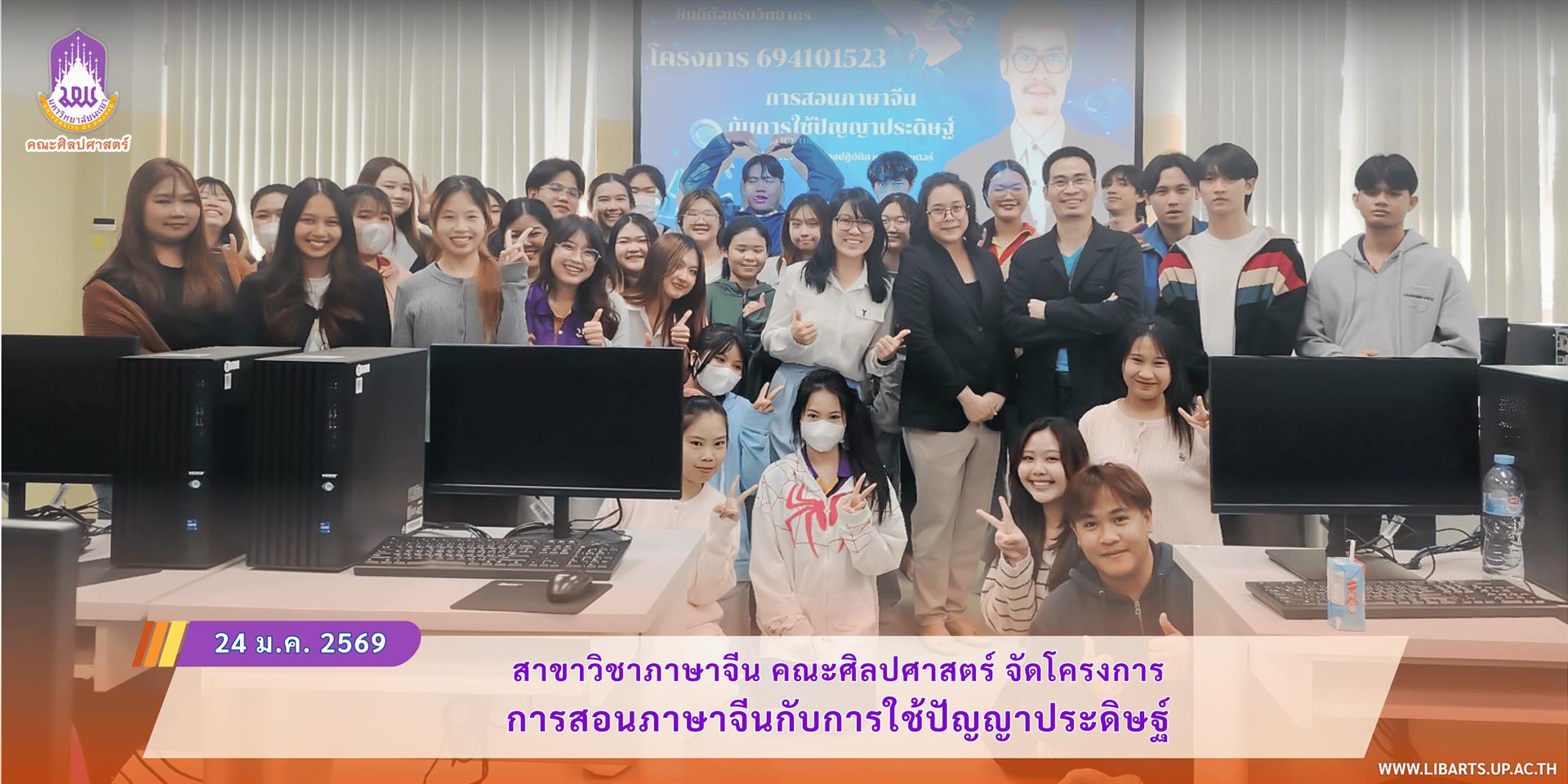 สาขาวิชาภาษาจีน คณะศิลปศาสตร์ จัดโครงการ การสอนภาษาจีนกับการใช้ปัญญาประดิษฐ์ ในวันเสาร์ที่ 24 มกราคม 2569 เวลา 08.30–16.30 น. ณ ห้อง ICT 1105 ห้องปฏิบัติการคอมพิวเตอร์ คณะเทคโนโลยีสารสนเทศและการสื่อสาร มหาวิทยาลัยพะเยา เพื่อให้นิสิตมีความรู้ความเข้าใจ และสามารถใช้เครื่องมือปัญญาประดิษฐ์ในการสอนภาษาจีนในฐานะภาษาต่างประเทศได้ โดยได้รับเกียรติจาก ผู้ช่วยศาสตราจารย์ ดร.นครินทร์ ชัยแก้ว รองคณบดีฝ่ายคุณภาพนิสิต คณะเทคโนโลยีสารสนเทศและการสื่อสาร เป็นวิทยากรอบรมเชิงปฎิบัติการ ในหัวข้อ “การสร้างสื่อการสอนแอนิเมชั่นด้วยปัญญาประดิษฐ์ (AI)” และ อาจารย์ภัทรพงศ์ พื้นงาม อาจารย์ประจำสาขาวิชาภาษาจีน คณะศิลปศาสตร์ เป็นวิทยากรอบรมเชิงปฎิบัติการในหัวข้อ “การสอนภาษาจีนยุค AI: 10 ทักษะดิจิทัลที่ครูมือใหม่ต้องรู้” โดยมี ดร.สุนทรี ศรีวันทนียกุล อาจารย์ประจำสาขาวิชาภาษาจีน คณะศิลปศาสตร์ เป็นผู้รับผิดชอบโครงการฯ