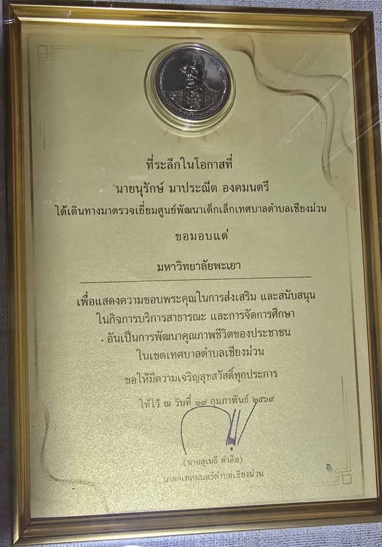 วันพฤหัสบดีที่ 19 กุมภาพันธ์ 2569 รองศาสตราจารย์ ดร.สุภกร พงศบางโพธิ์ อธิการบดีมหาวิทยาลัยพะเยา มอบหมายให้ รองศาสตราจารย์ ดร.ดิเรก ธีระภูธร รองอธิการบดีฝ่ายสื่อสารองค์กร พร้อมด้วย ดร.จารุวรรณ โปษยานนท์ ผู้ช่วยอธิการบดี และ ผู้ช่วยศาสตราจารย์ อุดม งามเมืองสกุล คณบดีคณะนิติศาสตร์ ร่วมต้อนรับ นายนุรักษ์ มาประณีต องคมนตรี และคณะ ในโอกาสตรวจเยี่ยมสถานศึกษาในโครงการกองทุนการศึกษาในพื้นที่จังหวัดพะเยา ณ โรงเรียนบ้านสระ อำเภอเชียงม่วน จังหวัดพะเยา