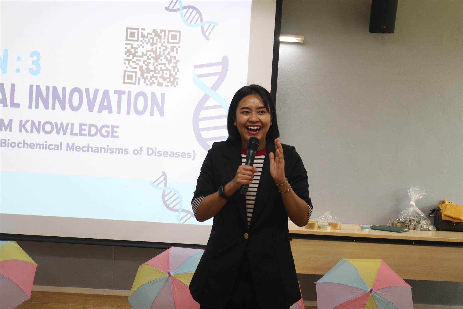 ภายในงานมีการนำเสนอไอเดียนวัตกรรมของนิสิตที่มุ่งเน้นการตรวจวินิจฉัยและการรักษาโรคอุบัติซ้ำในประเทศไทย โดยประยุกต์ใช้องค์ความรู้จากรายวิชากลไกทางชีวเคมีของโรคควบคู่กับกระบวนการคิดเชิงออกแบบ (Design Thinking) ซึ่งสะท้อนถึงศักยภาพของนิสิตหลักสูตรชีวเคมีในการบูรณาการองค์ความรู้สู่การพัฒนาแนวคิดเชิงนวัตกรรมที่ตอบโจทย์ปัญหาสุขภาพของสังคม