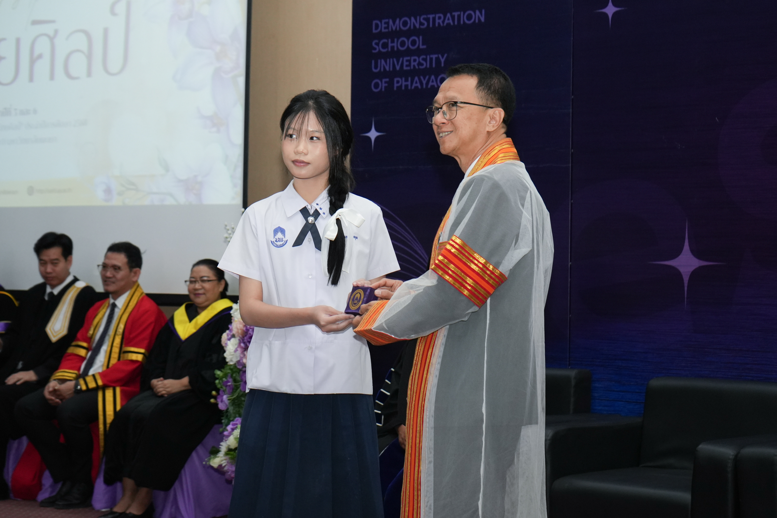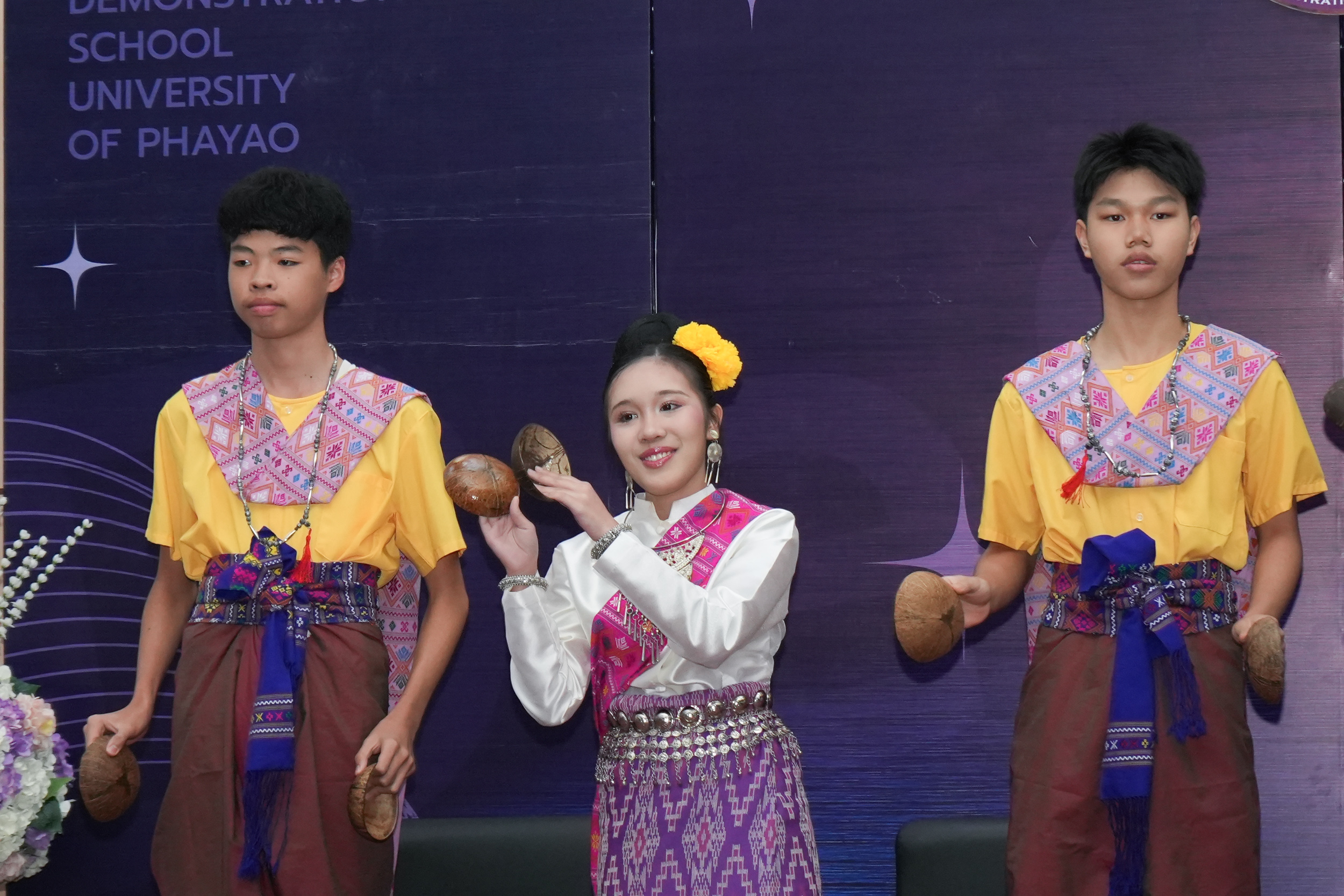 บรรยากาศภายในงานเต็มไปด้วย ความอบอุ่นและความประทับใจ เริ่มต้นด้วยการแสดงชุด “อีสาน–ใต้ สายสัมพันธ์” สะท้อนความหลากหลายและความผูกพันของชุมชนโรงเรียนสาธิตฯ จากนั้น รองศาสตราจารย์ ดร.ชยันต์ บุณยรักษ์ รักษาการแทนผู้อำนวยการโรงเรียนสาธิตมหาวิทยาลัยพะเยา ได้กล่าวรายงานผลการดำเนินงาน และแสดงความรู้สึกถึงนักเรียนรุ่นที่ 12 “ขจรวิทยศิลป์” พร้อมมอบเกียรติบัตรแสดงความยินดีแก่ผู้สำเร็จการศึกษา