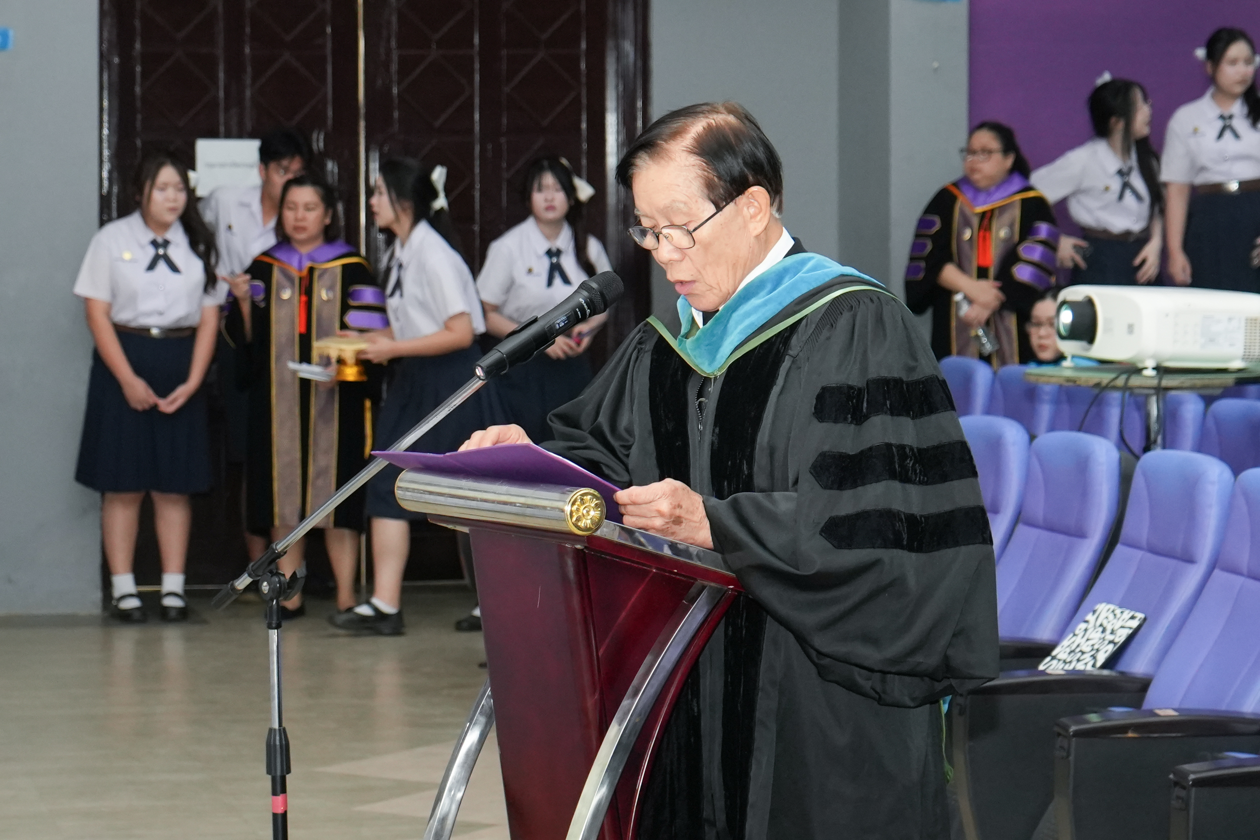 ในโอกาสนี้ ประธานในพิธีได้มอบ เหรียญรางวัลพัชรสัตภัณฑ์ แก่นักเรียนระดับชั้นมัธยมศึกษาปีที่ 3 และ 6 เพื่อเป็นสัญลักษณ์แห่งความภาคภูมิใจ พร้อมถ่ายทอดข้อคิดสำคัญในการดำเนินชีวิตและการเรียนรู้แก่ผู้สำเร็จการศึกษา โดยเน้น 3 ประเด็นหลัก ได้แก่ การพึ่งพาตนเอง ความกตัญญู และ การรู้เท่าทันโลกยุคใหม่ โดยเฉพาะเทคโนโลยี นวัตกรรม และปัญญาประดิษฐ์ เพื่อให้สามารถใช้ชีวิตในสังคมได้อย่างมีความสุขและปลอดภัย