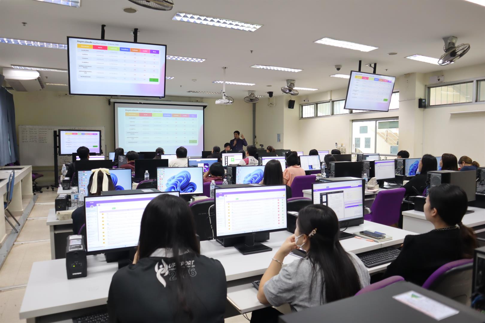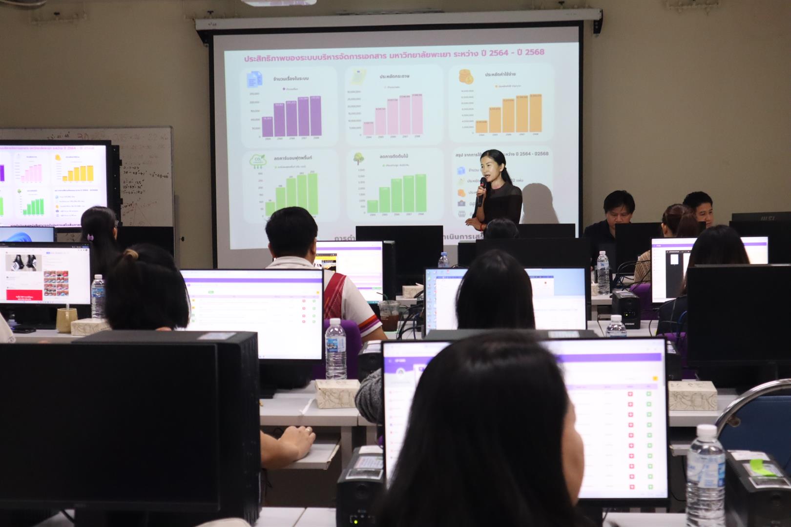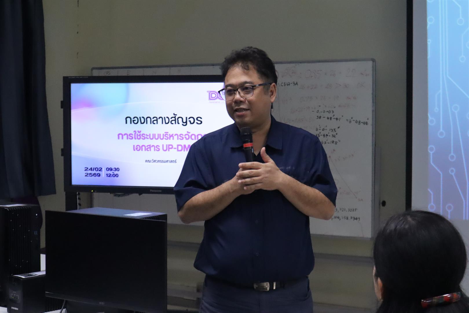 คณะวิศวกรรมศาสตร์ มหาวิทยาลัยพะเยา นำโดย ผู้ช่วยศาสตราจารย์ ดร.อภิชาต บัวกล้า รองคณบดีฝ่ายบริหารและกิจการพิเศษ และ ผู้ช่วยศาสตราจารย์ ดร.วาสนา นากุ รองคณบดีฝ่ายวิชาการและประกันคุณภาพ พร้อมด้วยบุคลากรและครูปฏิบัติการภายในคณะ เข้าร่วมกิจกรรม “สัญจรเกี่ยวกับการใช้งานระบบบริหารจัดการเอกสาร UP DMS” ซึ่งจัดโดยกองกลาง มหาวิทยาลัยพะเยา เมื่อวันที่ 24 กุมภาพันธ์ 2569 ที่ผ่านมา ณ ห้องปฏิบัติการคอมพิวเตอร์คณะฯ EN 1301 โดยได้รับเกียรติจาก นางณัฐธิดา ชาวน่าน ผู้อำนวยการกองกลาง พร้อมคณะทำงานร่วมให้คำแนะนำเกี่ยวกับแนวปฏิบัติในการใช้งานระบบ ตลอดจนแนะนำฟังก์ชันและแอปพลิเคชันใหม่ เพื่อเพิ่มประสิทธิภาพในการบริหารจัดการเอกสารอิเล็กทรอนิกส์ให้เป็นไปอย่างถูกต้อง รวดเร็ว และสอดคล้องกับระเบียบงานสารบรรณของมหาวิทยาลัย