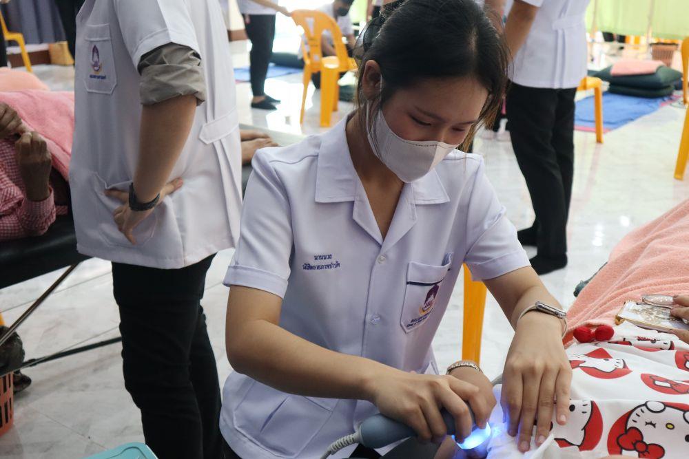 เมื่อวันเสาร์ที่ 14 กุมภาพันธ์ 2569 สาขาวิชากายภาพบำบัด คณะสหเวชศาสตร์ มหาวิทยาลัยพะเยา ได้จัดโครงการ “กายภาพบำบัดสัมผัสชุมชนเนื่องในวันกายบำบัดแห่งชาติ” ณ วัดแม่กาโทกหวาก โดยมี ดร.ปาจรีย์ มาน้อย พร้อมด้วยคณาจารย์แขนงวิชากายภาพบำบัด ในระบบหายใจและไหลเวียนโลหิต ทำหน้าที่เป็นแกนนำในการดำเนินงาน ร่วมกับคณาจารย์ บุคลากร นิสิตกายภาพบำบัด ที่เข้าร่วมอย่างพร้อมเพรียง เพื่อให้บริการทางกายภาพบำบัดแก่ประชาชนในพื้นที่ ตั้งแต่เวลา 08.00–12.00 น. โครงการดังกล่าวเป็นโครงการประจำปีงบประมาณ พ.ศ. 2569 ของสาขาวิชากายภาพบำบัด ดำเนินงานภายใต้ยุทธศาสตร์การบริการวิชาการและการสร้างสรรค์พื้นที่การเรียนรู้เพื่อความเป็นอยู่ที่ดีทางสังคมของมหาวิทยาลัย โดยมุ่งพัฒนาชุมชนให้เป็น “พื้นที่แห่งการเรียนรู้” ควบคู่กับการยกระดับคุณภาพชีวิตของประชาชนอย่างยั่งยืน และสอดคล้องกับยุทธศาสตร์ชาติ 20 ปี (พ.ศ. 2561–2580) และแผนพัฒนาเศรษฐกิจและสังคมแห่งชาติ ฉบับที่ 13 ที่มุ่งพัฒนาคนให้มีสมรรถนะสูงด้านการแพทย์และสาธารณสุข พร้อมทั้งลดความเหลื่อมล้ำในการเข้าถึงบริการสุขภาพ โดยบูรณาการเข้ากับเป้าหมายการพัฒนาที่ยั่งยืน (SDGs) ด้านการมีสุขภาวะที่ดี (SDG 3)