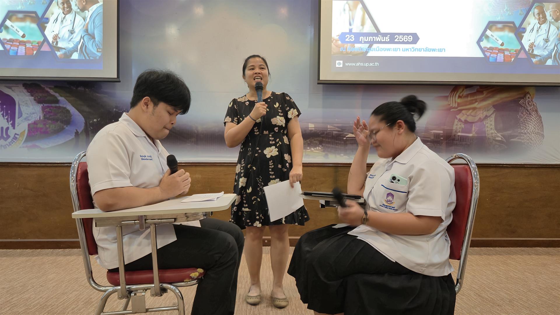 เมื่อวันจันทร์ที่ 23 กุมภาพันธ์ 2569 สาขาวิชาเทคนิคการแพทย์ คณะสหเวชศาสตร์ มหาวิทยาลัยพะเยา ได้จัดโครงการอบรมเชิงปฏิบัติการเรื่อง “การให้คำปรึกษาและการตรวจวินิจฉัยโรคติดเชื้อทางเพศสัมพันธ์แบบครบวงจร” เพื่อเป็นการเตรียมความพร้อมให้นิสิตสาขาวิชาเทคนิคการแพทย์ชั้นปีที่ 4 มีทักษะปฏิบัติในการให้คำปรึกษาและตรวจวิเคราะห์ทางห้องปฏิบัติการสำหรับการวินิจฉัยการติดเชื้อไวรัสเอชไอวีและโรคติดเชื้อทางเพศสัมพันธ์อย่างครบวงจร อันเป็นทักษะวิชาชีพสำคัญที่กำหนดไว้ในผลลัพธ์การเรียนรู้ของหลักสูตรวิทยาศาสตรบัณฑิต สาขาเทคนิคการแพทย์