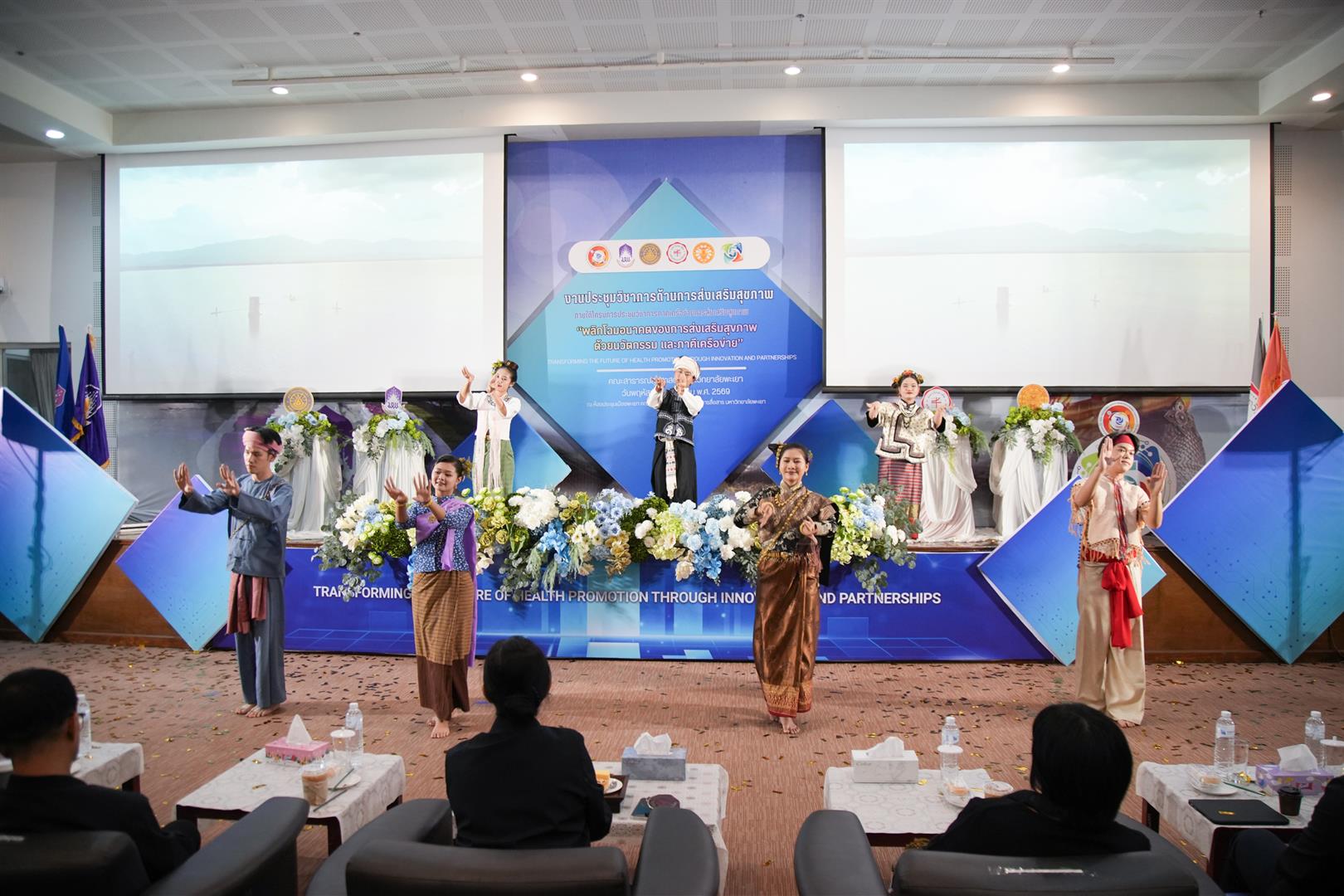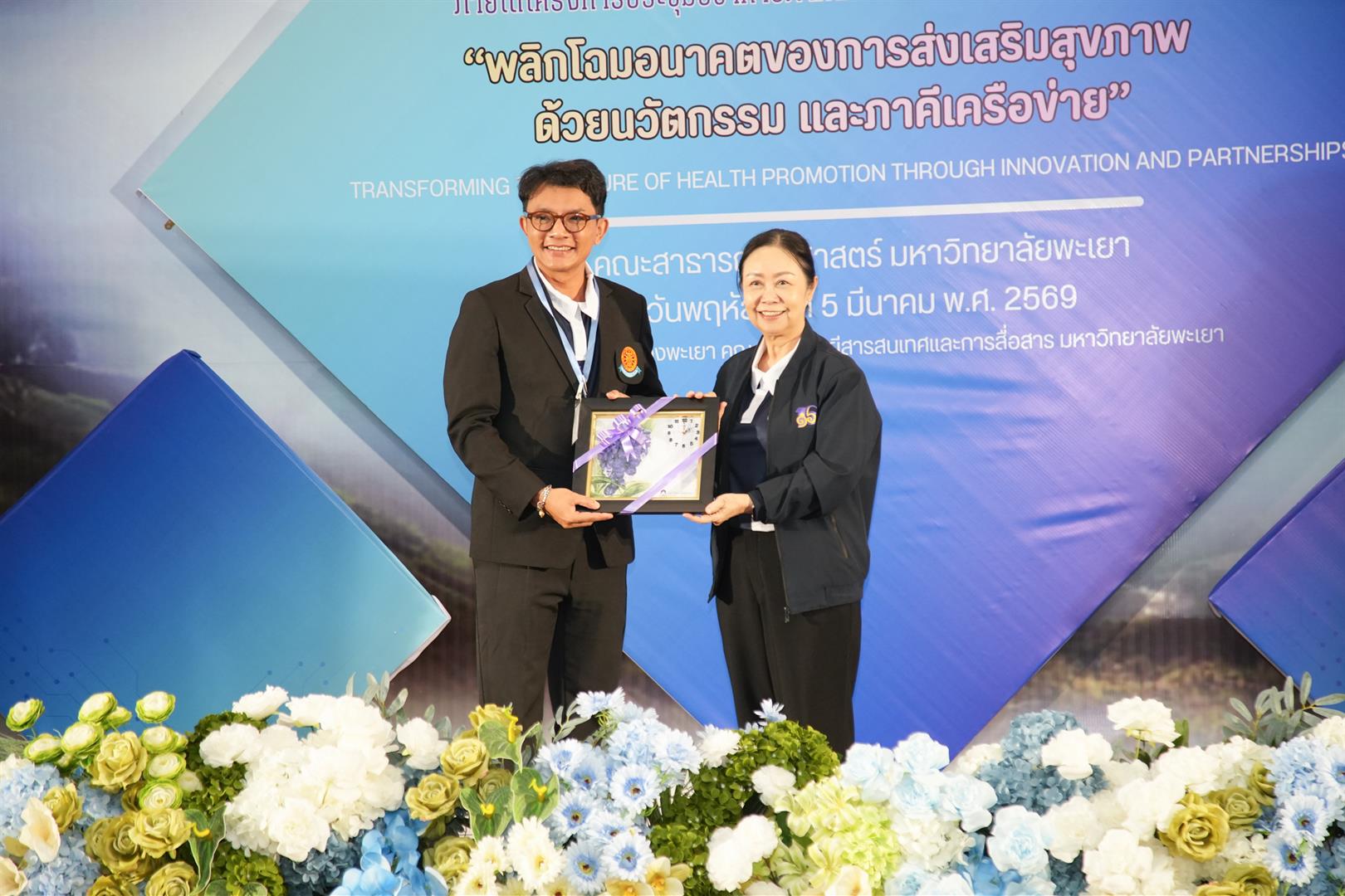 วันพฤหัสบดีที่ 5 มีนาคม 2569 รองศาสตราจารย์ ดร.สุภกร พงศบางโพธิ์ อธิการบดีมหาวิทยาลัยพะเยา เป็นประธานกล่าวเปิดโครงการประชุมวิชาการด้านการส่งเสริมสุขภาพ 4 สถาบัน ครั้งที่ 5 ภายใต้หัวข้อ “Transforming the Future of Health Promotion through Innovation and Partnerships พลิกโฉมอนาคตของการส่งเสริมสุขภาพ ด้วยนวัตกรรม และภาคีเครือข่าย” โดยมีคณะผู้บริหาร คณาจารย์ และนิสิตนักศึกษาจากเครือข่ายสถาบันอุดมศึกษาเข้าร่วมอย่างพร้อมเพรียง ในพิธีเปิดผู้ช่วยศาสตราจารย์ ดร.สมคิด จูหว้า คณบดีคณะสาธารณสุขศาสตร์ มหาวิทยาลัยพะเยา ได้กล่าวรายงานวัตถุประสงค์ของการจัดโครงการ ซึ่งมุ่งสร้างเวทีทางวิชาการสำหรับการแลกเปลี่ยนองค์ความรู้ ประสบการณ์ และผลงานวิจัยด้านการส่งเสริมสุขภาพของนิสิตนักศึกษา โครงการจัดขึ้น ณ ห้องประชุมเมืองพะเยา มหาวิทยาลัยพะเยา