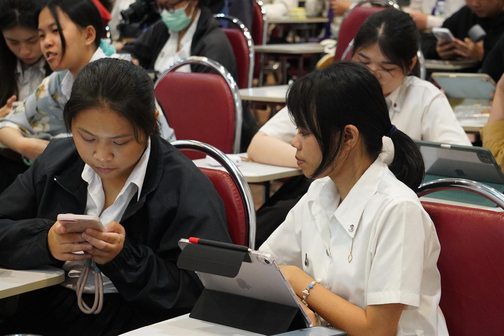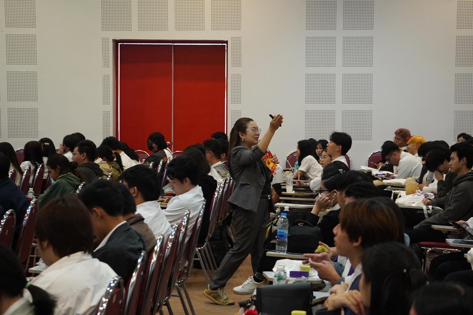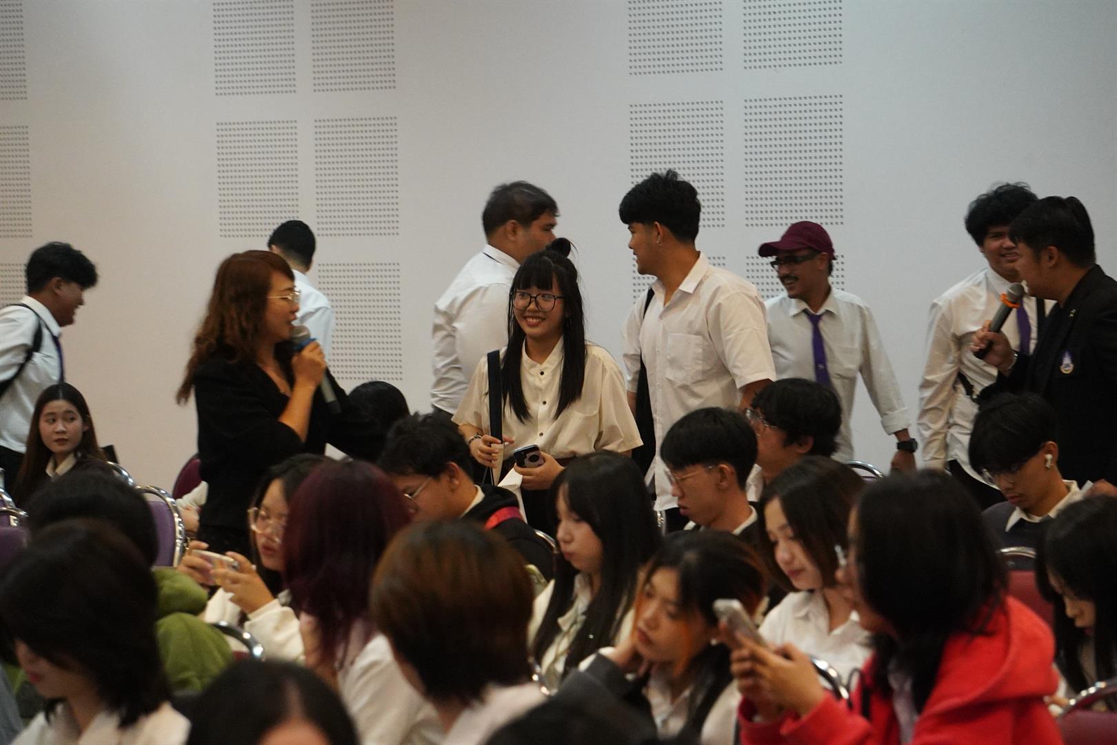 ไฮไลต์สำคัญของกิจกรรม คือ การบรรยายพิเศษเพื่อเตรียมความพร้อมสู่โลกการทำงาน โดยได้รับเกียรติจาก คุณสายสุนี เตชา วิทยากรผู้เชี่ยวชาญด้านการพัฒนาศักยภาพบุคลากรและการเตรียมความพร้อมสู่ตลาดแรงงาน จากบริษัท JOBTOPGUN Thailand ซึ่งเป็นองค์กรชั้นนำด้านการจัดหางานและพัฒนาเส้นทางอาชีพของคนรุ่นใหม่ ซึ่งได้ถ่ายทอดความรู้และประสบการณ์ในหัวข้อ “เตรียมความพร้อมนักศึกษาสู่ตลาดแรงงานยุค AI” และ “การเตรียมความพร้อมการสมัครงานของนิสิตจบใหม่” โดยเน้นการพัฒนาทักษะสำคัญสำหรับการทำงานในยุคปัจจุบัน ทั้งเทคนิคการเขียน Resume การเตรียมตัวสัมภาษณ์งาน รวมถึงการพัฒนา Soft Skills