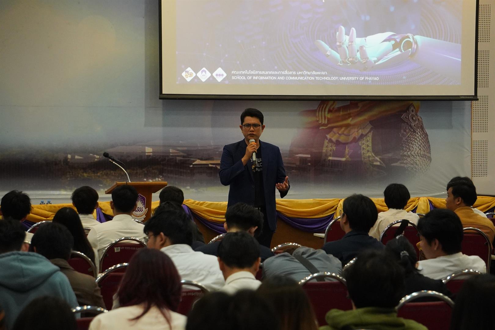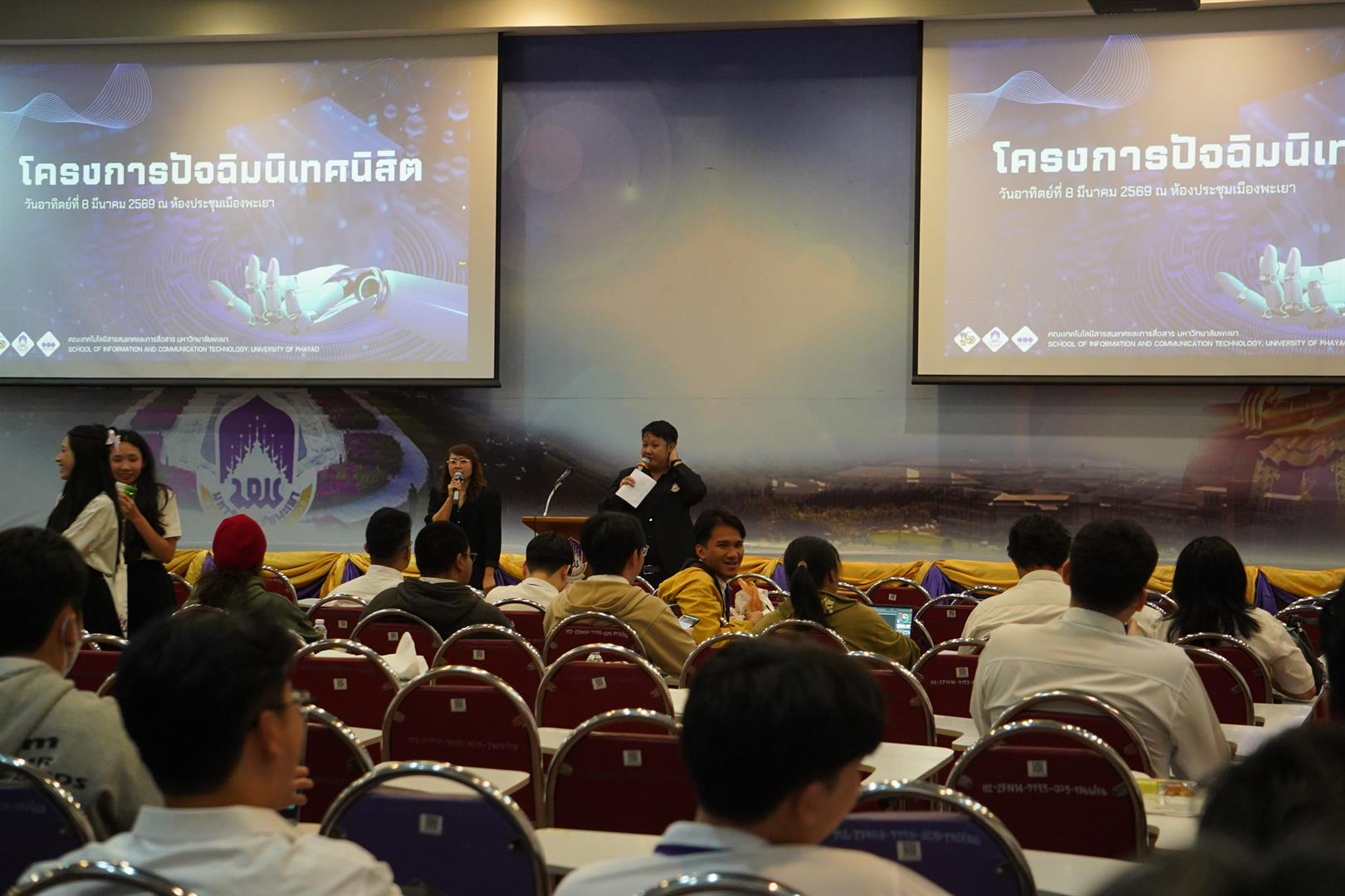 คณะเทคโนโลยีสารสนเทศและการสื่อสาร มหาวิทยาลัยพะเยา จัดโครงการ ปัจฉิมนิเทศนิสิต ประจำปีการศึกษา 2568 เมื่อวันที่ 8 มีนาคม 2569 ณ ห้องประชุมเมืองพะเยา เพื่อเตรียมความพร้อมให้นิสิตชั้นปีที่ 4 ก่อนก้าวสู่โลกการทำงาน พร้อมสร้างแรงบันดาลใจและแนะแนวเส้นทางอาชีพในอนาคต