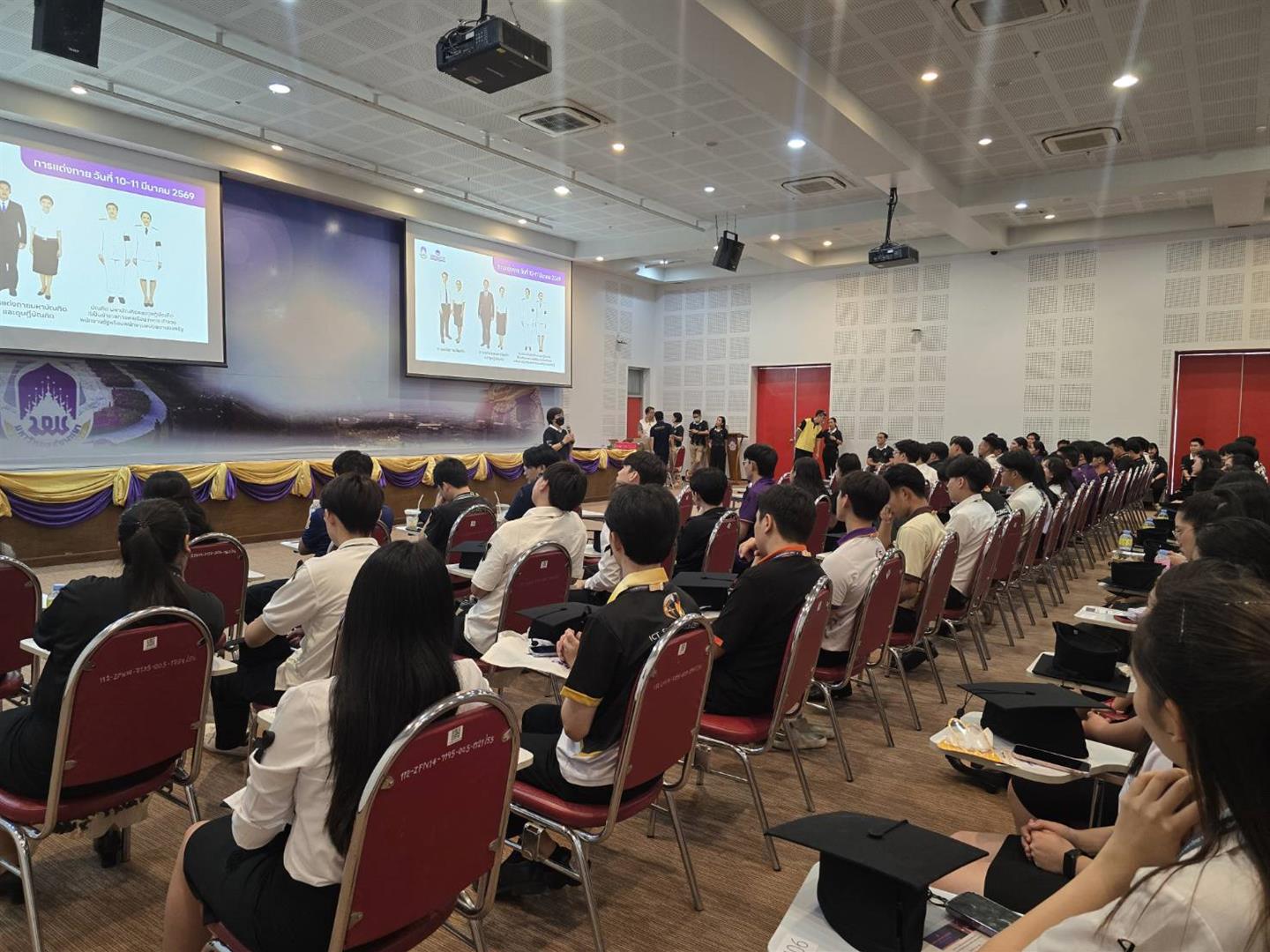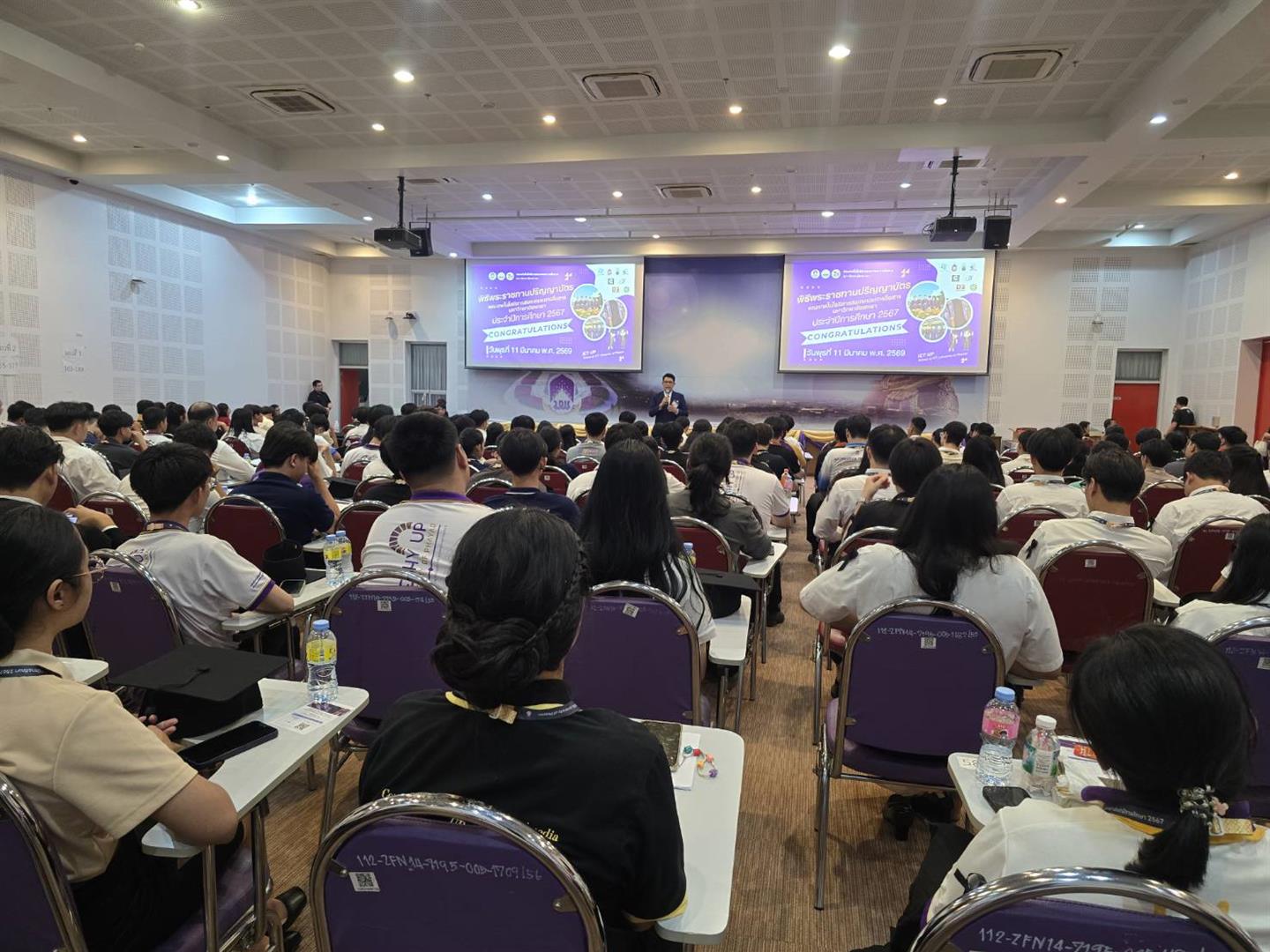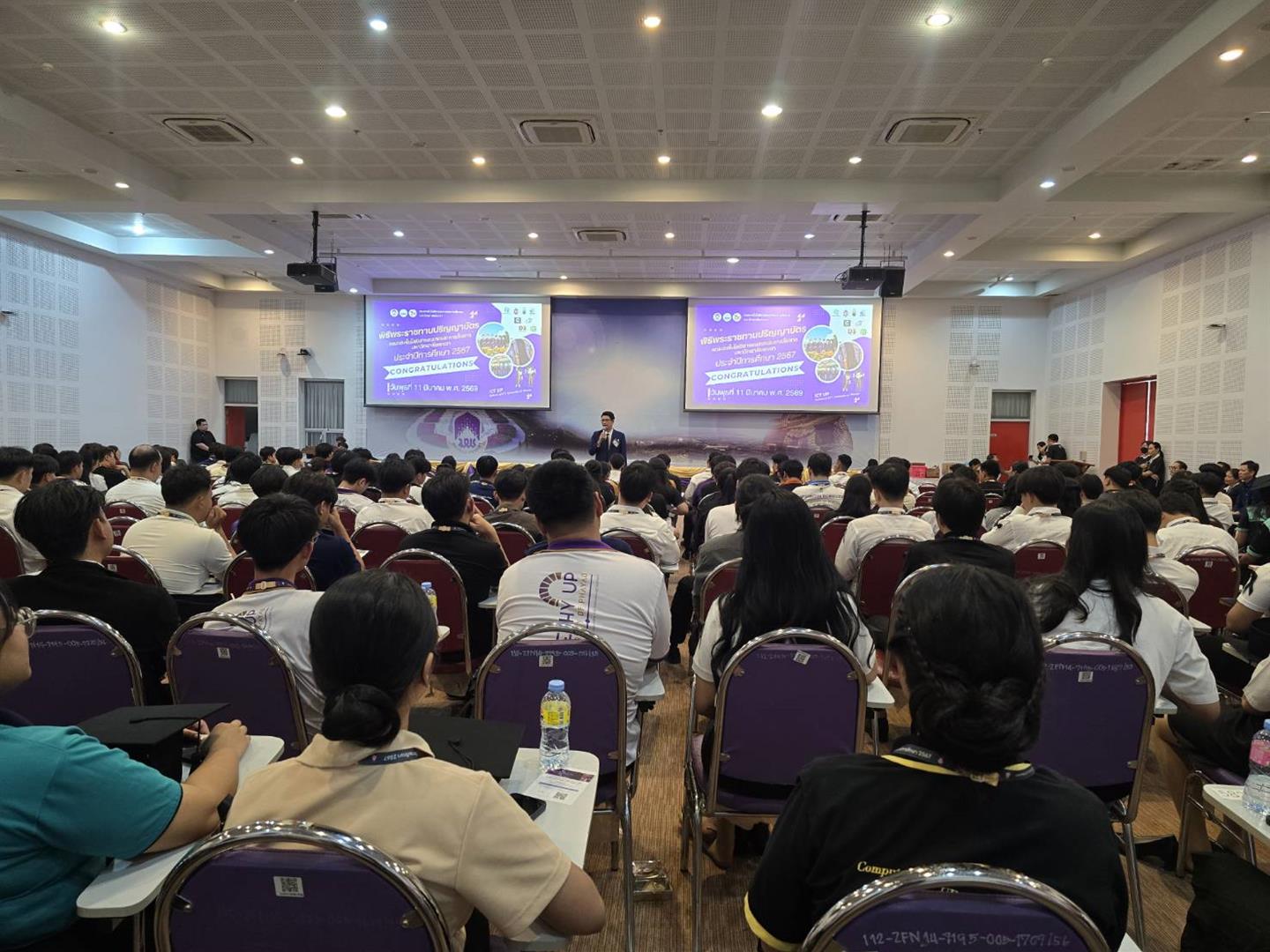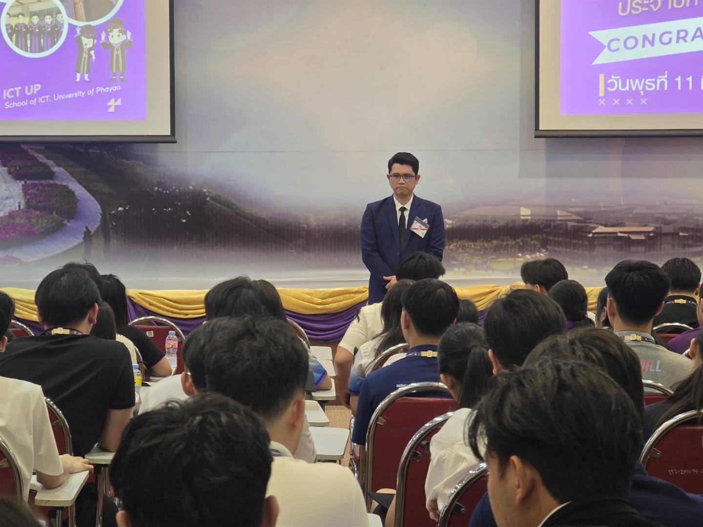 เมื่อวันที่ 9 มีนาคม 2569 ณ ห้องประชุมเมืองพะเยา ผู้ช่วยศาสตราจารย์ ดร.นครินทร์ ชัยแก้ว รองคณบดีฝ่ายคุณภาพนิสิต กล่าวรายงานวัตถุประสงค์ของการจัดกิจกรรมภายใต้ โครงการบัณฑิตสัมพันธ์ จากนั้น ผู้ช่วยศาสตราจารย์ ดร.พรเทพ โรจนวสุ คณบดีคณะเทคโนโลยีสารสนเทศและการสื่อสาร กล่าวแสดงความยินดีกับบัณฑิตและมหาบัณฑิตที่สำเร็จการศึกษา พร้อมทั้งกล่าวโอวาทและให้ข้อคิดในการดำเนินชีวิต โดยเน้นย้ำการใช้ชีวิตอย่างมีสติ การรู้จักวางแผนและออมเงินเพื่ออนาคตของตนเองและครอบครัว รวมถึงการพัฒนาตนเองอย่างต่อเนื่องเพื่อเตรียมพร้อมสู่โลกการทำงานในอนาคต