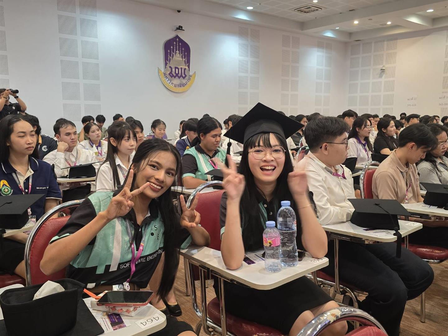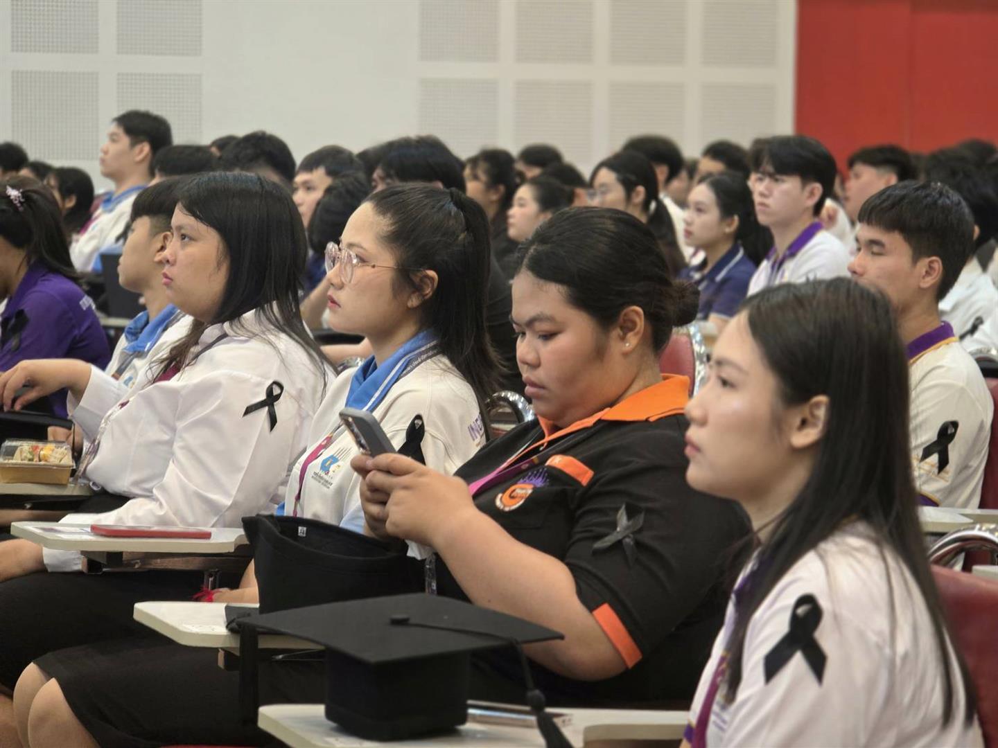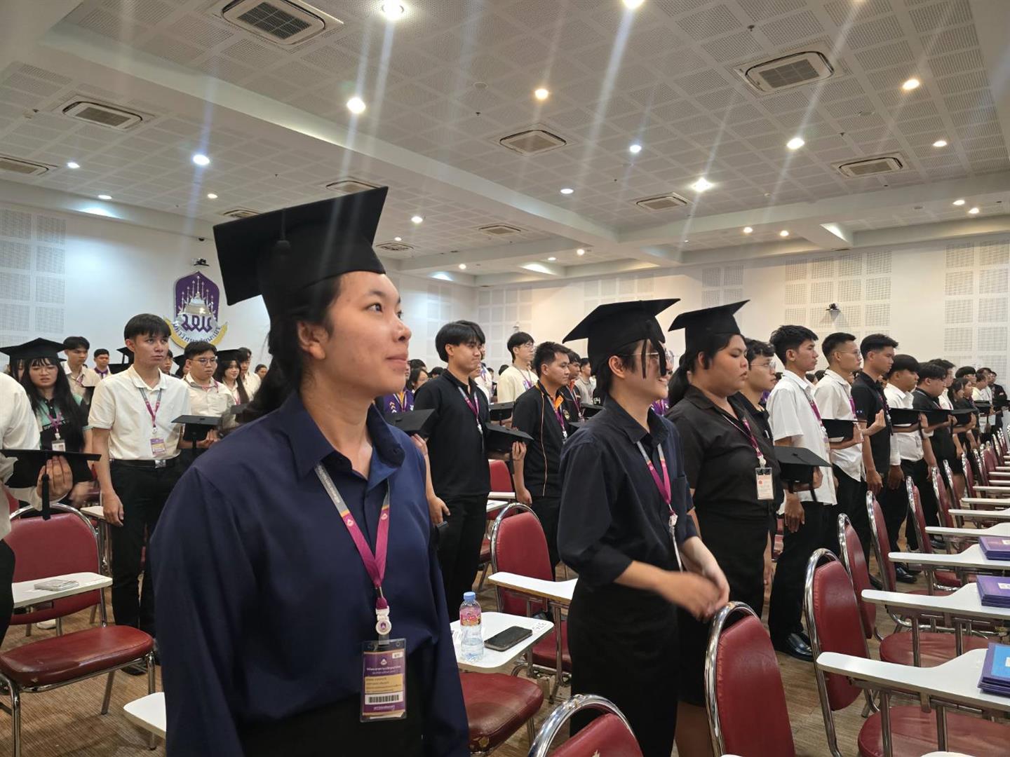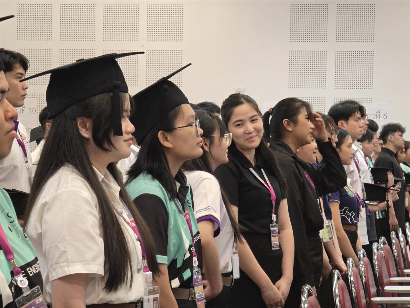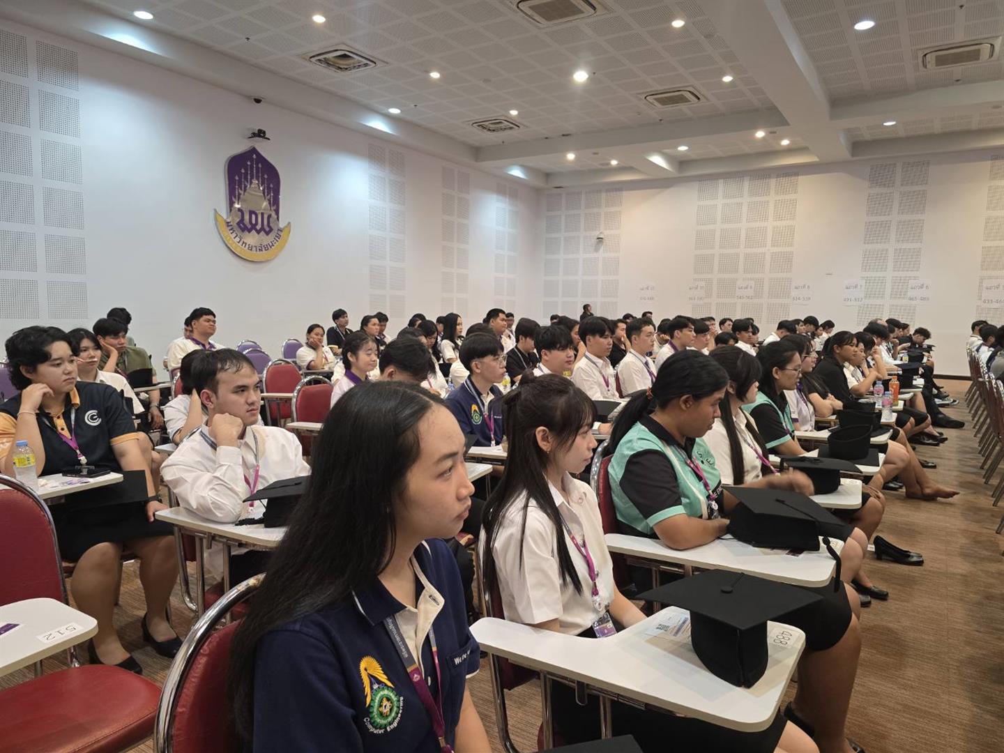 เมื่อวันที่ 9 มีนาคม 2569 ณ ห้องประชุมเมืองพะเยา ผู้ช่วยศาสตราจารย์ ดร.นครินทร์ ชัยแก้ว รองคณบดีฝ่ายคุณภาพนิสิต กล่าวรายงานวัตถุประสงค์ของการจัดกิจกรรมภายใต้ โครงการบัณฑิตสัมพันธ์ จากนั้น ผู้ช่วยศาสตราจารย์ ดร.พรเทพ โรจนวสุ คณบดีคณะเทคโนโลยีสารสนเทศและการสื่อสาร กล่าวแสดงความยินดีกับบัณฑิตและมหาบัณฑิตที่สำเร็จการศึกษา พร้อมทั้งกล่าวโอวาทและให้ข้อคิดในการดำเนินชีวิต โดยเน้นย้ำการใช้ชีวิตอย่างมีสติ การรู้จักวางแผนและออมเงินเพื่ออนาคตของตนเองและครอบครัว รวมถึงการพัฒนาตนเองอย่างต่อเนื่องเพื่อเตรียมพร้อมสู่โลกการทำงานในอนาคต
