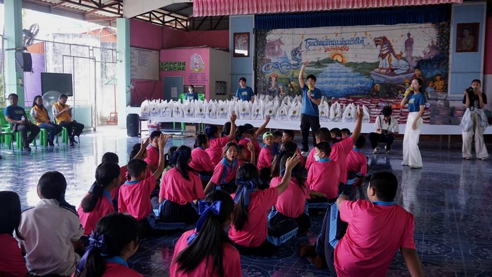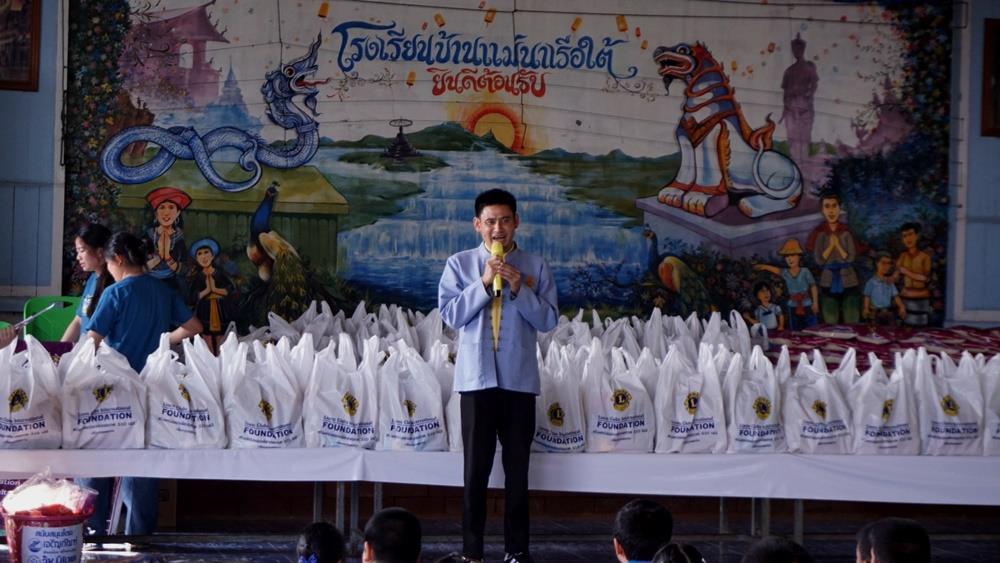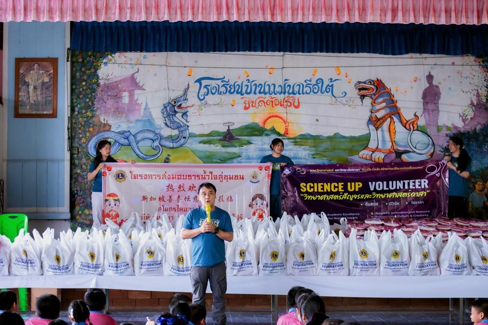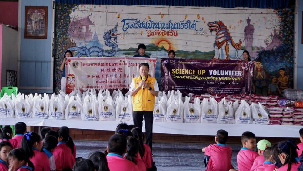 In the afternoon, the Lions Club of Phayao and the Shan Zi Tan Foundation of the Republic of Singapore hosted the distribution of over 100 relief bags to students and vulnerable groups in the area. The opening ceremony was presided over by Assoc. Prof. Dr. Sitthisak Pinmongkhonkul, Dean of the School of Science. Ms. Tassanan Jaibun, President of the Mae Na Ruea Subdistrict Administrative Organization, and Mr. Chakrapong Tarama, Director of Ban Mae Na Ruea Tai School, gave welcome and thank-you speeches. Village headmen and local officials also joined the ceremony as honored guests.