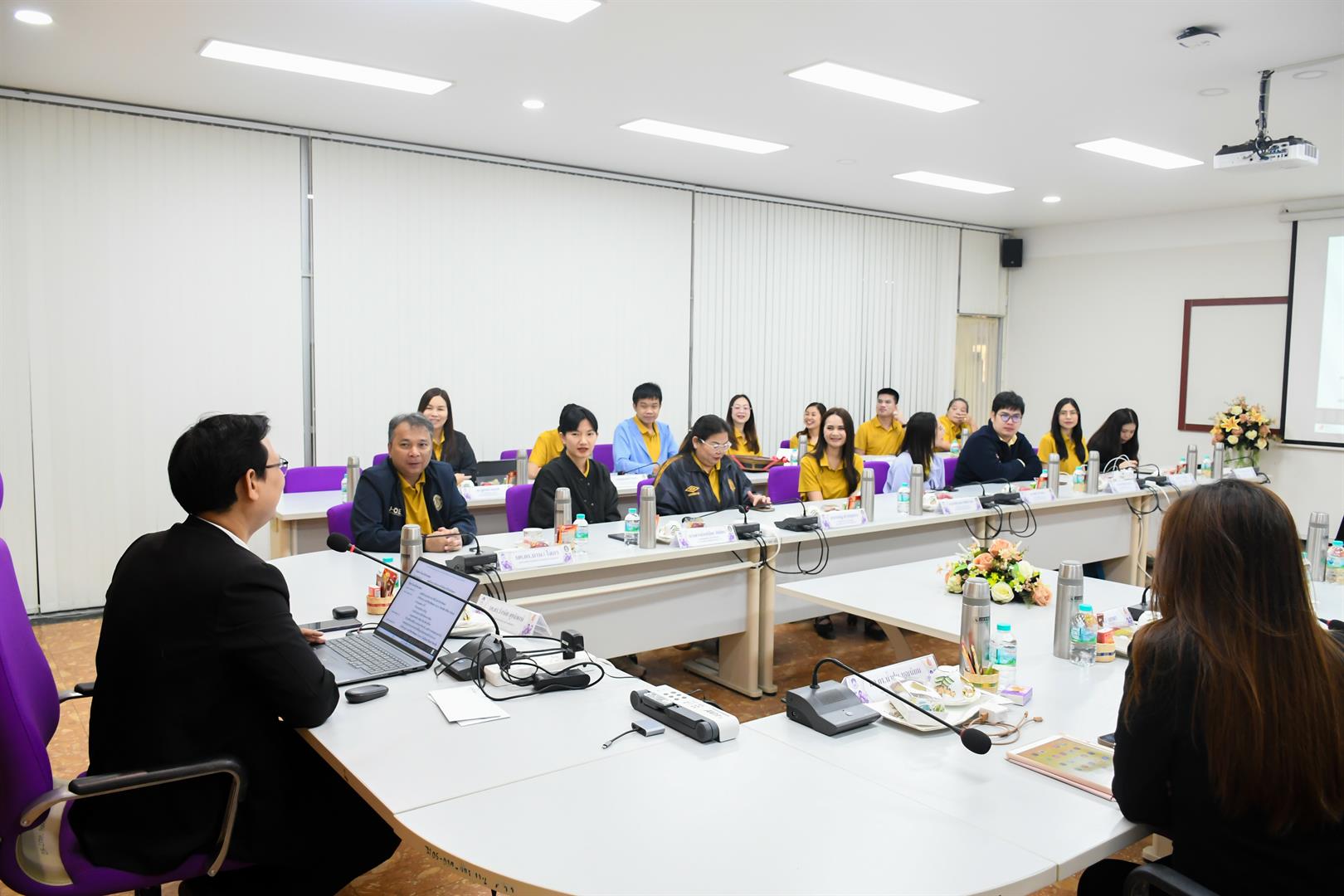 วันที่ 25 มีนาคม 2569 รองศาสตราจารย์ ดร.รักษิต สุทธิพงษ์ คณบดีวิทยาลัยการศึกษา พร้อมด้วย ผู้ช่วยศาสตราจารย์ ดร.น้ำฝน กันมา รองคณบดีฝ่ายวิชาการและนวัตกรรมการศึกษา ผู้ช่วยศาสตราจารย์ ดร.วัชระ จตุพร รองคณบดีฝ่ายวิจัยและบริการวิชาการเชิงพื้นที่ ผู้ช่วยศาสตราจารย์ ดร.ณัฐวุฒิ สัพโส อาจารย์เมทิกา เลิศปฐมา ผู้ช่วยคณบดี ดร.วิภาวี ศิริลักษณ์ อาจารย์สาขาวิชาวัดและประเมินผลการศึกษา หัวหน้าสำนักงาน หัวหน้างาน และบุคลากรสายสนับสนุน ให้การต้อนรับคณะศึกษาดูงานจากคณะครุศาสตร์ มหาวิทยาลัยราชภัฏอุดรธานี ณ ห้องประชุมวิทยาลัยการศึกษา มหาวิทยาลัยพะเยา โดยมี ผู้ช่วยศาสตราจารย์ ดร.มานะ โสภา รองคณบดีคณะครุศาสตร์ มหาวิทยาลัยราชภัฏอุดรธานี นำคณาจารย์ และบุคลากรสายสนับสนุน เข้าศึกษาดูงานและแลกเปลี่ยนเรียนรู้ด้าน “งานฝึกประสบการณ์วิชาชีพทางการศึกษา และกิจกรรมเสริมความเป็นครู” การศึกษาดูงานในครั้งนี้มีวัตถุประสงค์เพื่อพัฒนาการบริหารจัดการศูนย์การฝึกประสบการณ์วิชาชีพครู ตลอดจนส่งเสริมการสร้างเครือข่ายความร่วมมือทางวิชาการระหว่างสถาบัน ซึ่งจะนำไปสู่การยกระดับคุณภาพการจัดการศึกษา และการพัฒนาวิชาชีพครูในอนาคต สอดคล้องกับเป้าหมายการพัฒนาที่ยั่งยืนของ ได้แก่ SDG 4: การศึกษาที่มีคุณภาพ (Quality Education) และSDG 17: ความร่วมมือเพื่อการพัฒนาที่ยั่งยืน (Partnerships for the Goals)