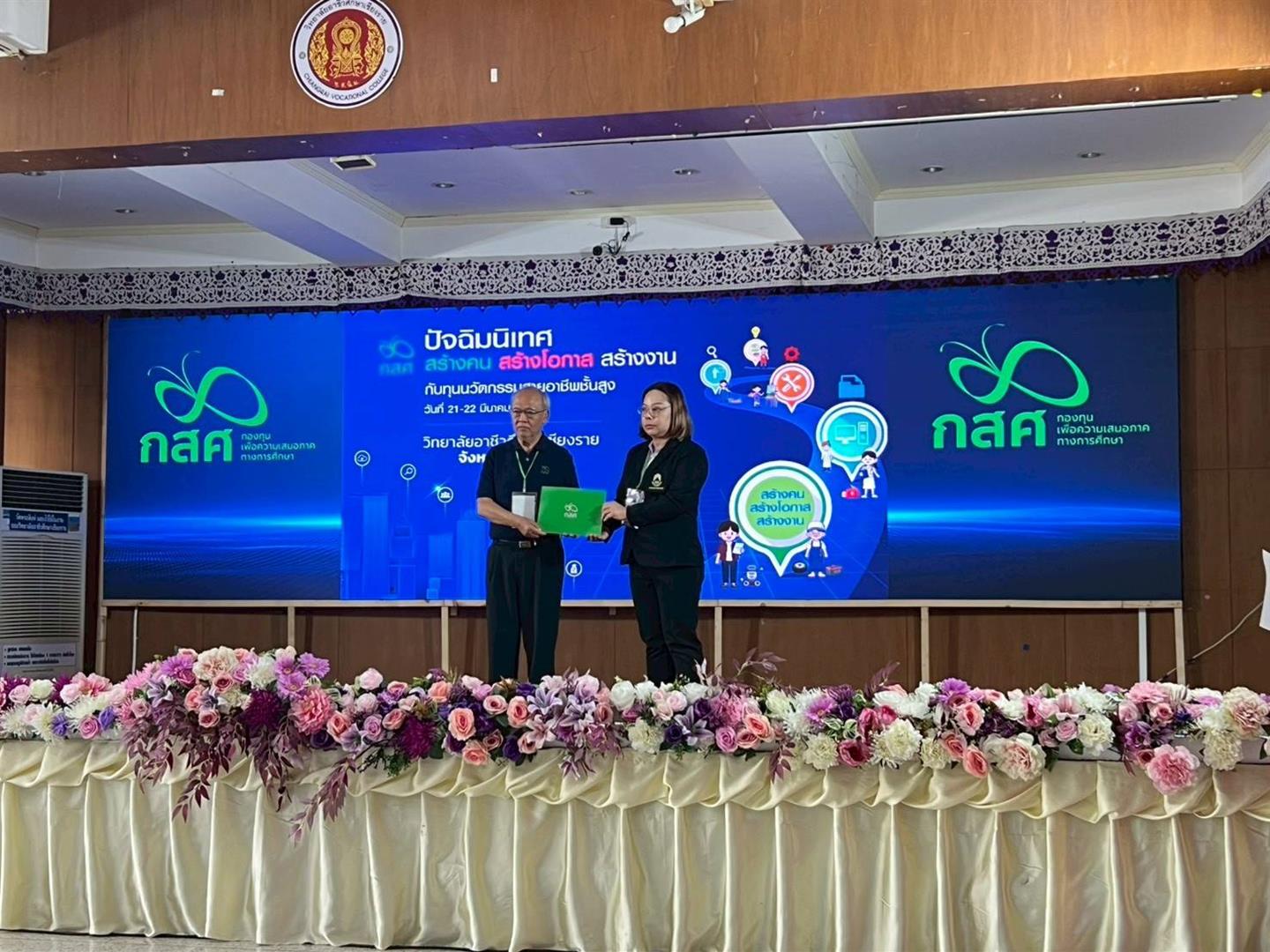 คณะพยาบาลศาสตร์ มหาวิทยาลัยพะเยา เข้าร่วมกิจกรรมปัจฉิมนิเทศ “สร้างคน สร้างโอกาส สร้างงาน กับทุนนวัตกรรมสายอาชีพชั้นสูง” ร่วมกับกองทุนเพื่อความเสมอภาคทางการศึกษา (กสศ.) ประจำปีการศึกษา 2568 ณ วิทยาลัยอาชีวศึกษาเชียงราย จังหวัดเชียงราย ระหว่างวันที่ 20 – 22 มีนาคม 2569 เพื่อส่งเสริมและพัฒนาศักยภาพของนักศึกษาทุนโครงการทุนนวัตกรรมสายอาชีพชั้นสูงที่กำลังจะสำเร็จการศึกษา ผ่านกระบวนการมีส่วนร่วมของ ครู อาจารย์และว่าที่นายจ้าง และพัฒนาเครือข่ายความร่วมมือการส่งเสริมโอกาสการมีงานทำให้แก่นักศึกษาทุน ในงานได้จัดให้มีกิจกรรมการเตรียมความพร้อมให้นักศึกษาทุนเพื่อก้าวไปสู่การทำงานในอนาคต และจัดพิธีมอบประกาศนียบัตรให้แก่นักศึกษาทุนนวัตกรรมสายอาชีพชั้นสูงทุกคนที่เข้าร่วมกิจกรรมครั้งนี้ด้วย