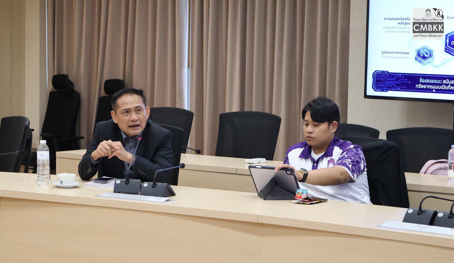 วันที่ 29 มีนาคม 2569 เวลา 09.00 – 12.00 น. วิทยาลัยการจัดการ มหาวิทยาลัยพะเยา หลักสูตรการศึกษามหาบัณฑิต สาขาวิชาการบริหารการศึกษา แผน ข จัดการบรรยายพิเศษในรายวิชาการพัฒนานวัตกรรมทางการบริหารการ นำโดย ผู้ช่วยศาสตราจารย์ ดร.ศิริพร แพรศรี รักษาการแทนรองคณบดีวิทยาลัยการจัดการ พร้อมด้วย รองศาสตราจารย์ ดร.ศักดิ์ชัย นิรัญทวี ประธานหลักสูตรปรัชญาดุษฎีบัณฑิต ดร.ธารินทร์ รสานนท์ ประธานหลักสูตรการศึกษามหาบัณฑิต และ รองศาสตราจารย์ พ.ต.ท. ดร.ศิริพงษ์ เศาภายน อาจารย์ผู้สอนรายวิชา โอกาสนี้ได้รับเกียรติจาก รองศาสตราจารย์ ดร.ยศระวี วายทองคำ นักวิชาการอิสระ เป็นวิทยากรบรรยายในหัวข้อ “Digital Transformation Blueprint for Schools” ซึ่งมุ่งเน้นแนวทางการขับเคลื่อนสถานศึกษาสู่ยุคดิจิทัลอย่างเป็นระบบ ครอบคลุมการวางแผนเชิงกลยุทธ์ การบริหารจัดการการเปลี่ยนแปลง และการสร้างความพร้อมของบุคลากรและองค์กรทางการศึกษา นอกจากนี้ ยังได้รับเกียรติจาก ดร.ธำรงศักดิ์ ดำรงศิริ อุปนายกสมาคมศิษย์เก่ามหาวิทยาลัยพะเยา และ ดร.สุเทพ ภูวนัตถ์เมธา ผู้อำนวยการสถานศึกษาโรงเรียนพระราม ๙ กาญจนาภิเษก ซึ่งเป็นศิษย์เก่าวิทยาลัยการจัดการ เข้าร่วมรับฟังและแลกเปลี่ยนมุมมองทางวิชาการร่วมกับคณาจารย์และนิสิต ณ ห้องประชุมL806 วิทยาลัยการจัดการ มหาวิทยาลัยพะเยา อาคารเวฟเพลส ชั้น 8 กรุงเทพมหานคร