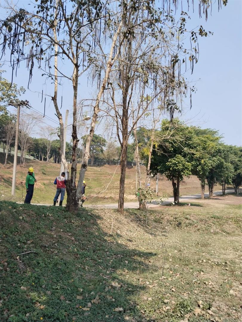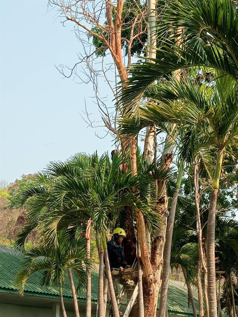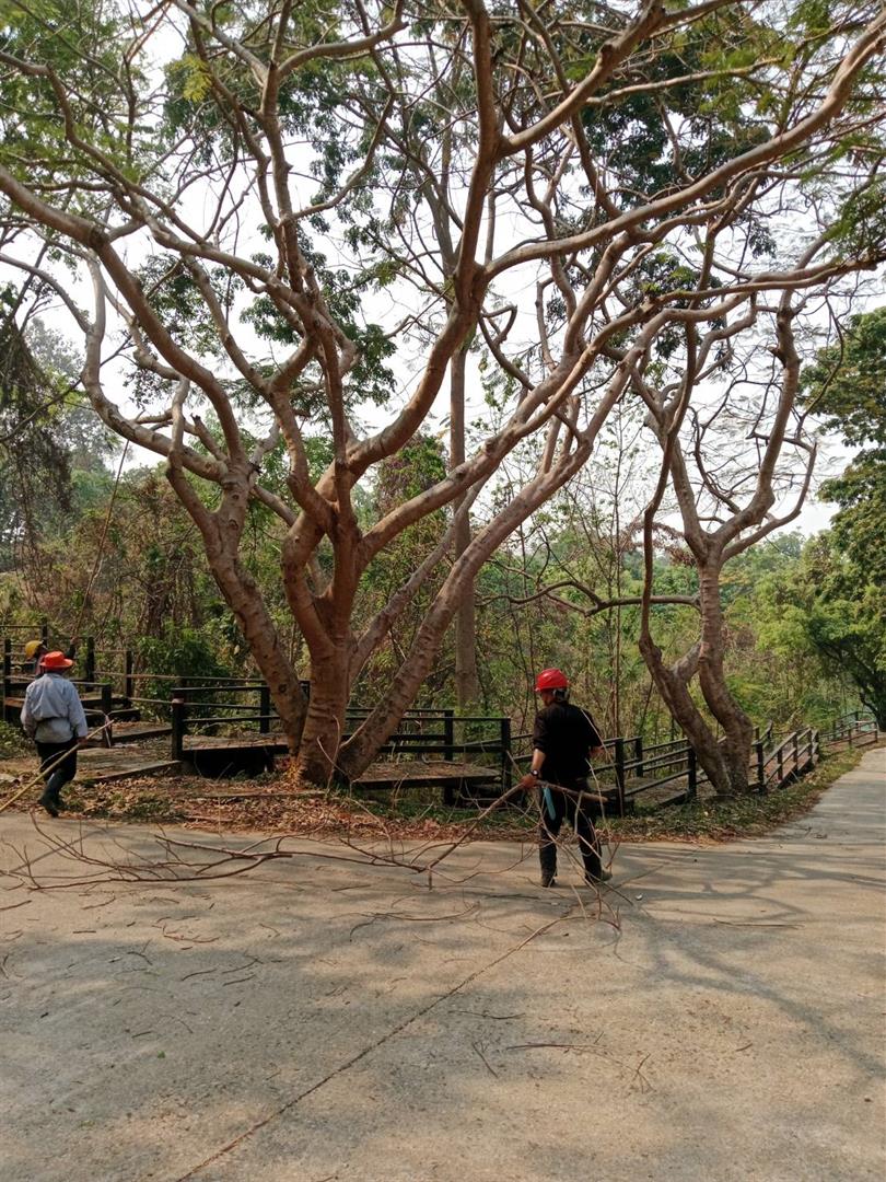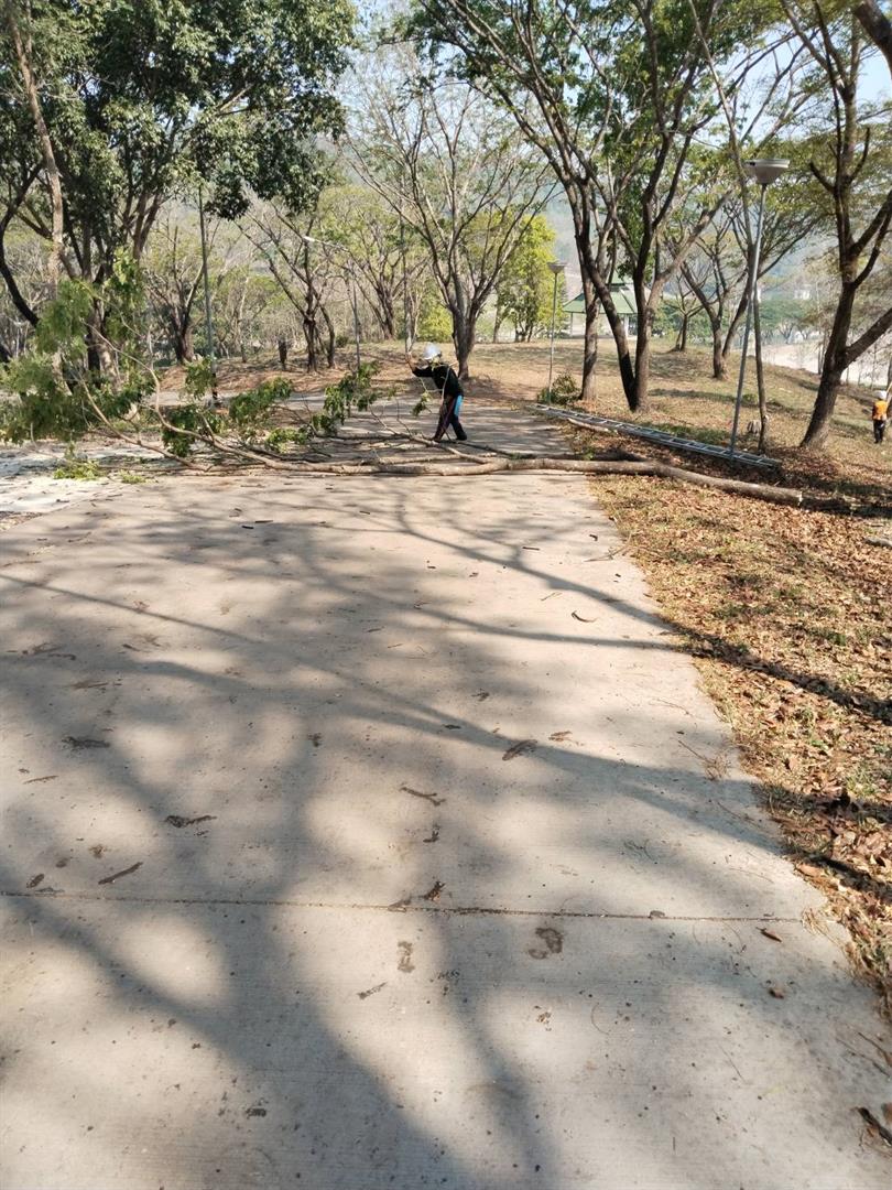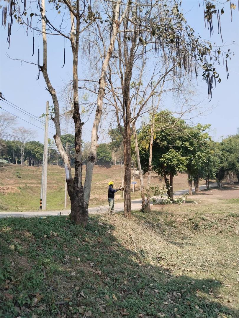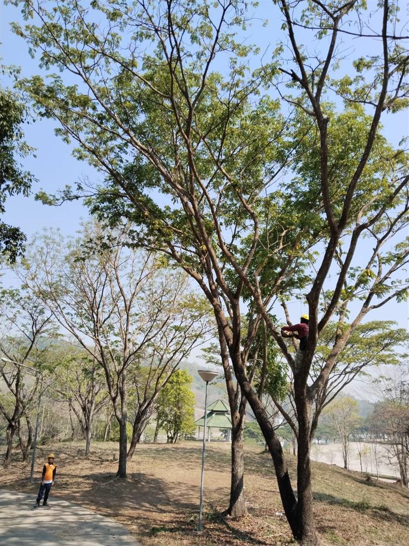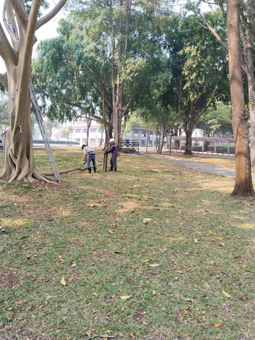 กองอาคารสถานที่ งานสวนและภูมิทัศน์ ดำเนินการเร่งตัดแต่งกิ่งไม้ ต้นไม้ กำจัดเศษใบไม้ กิ่งไม้แห้งสะสม พร้อมรื้อถอนต้นไม้ยืนต้นตาย ในพื้นที่ต่าง ๆ ทั่วทั้งมหาวิทยาลัย อย่างต่อเนื่อง เพื่อเตรียมความพร้อมรับสถานการณ์ลมแรงและพายุฤดูร้อนที่อาจเกิดขึ้นในช่วงนี้