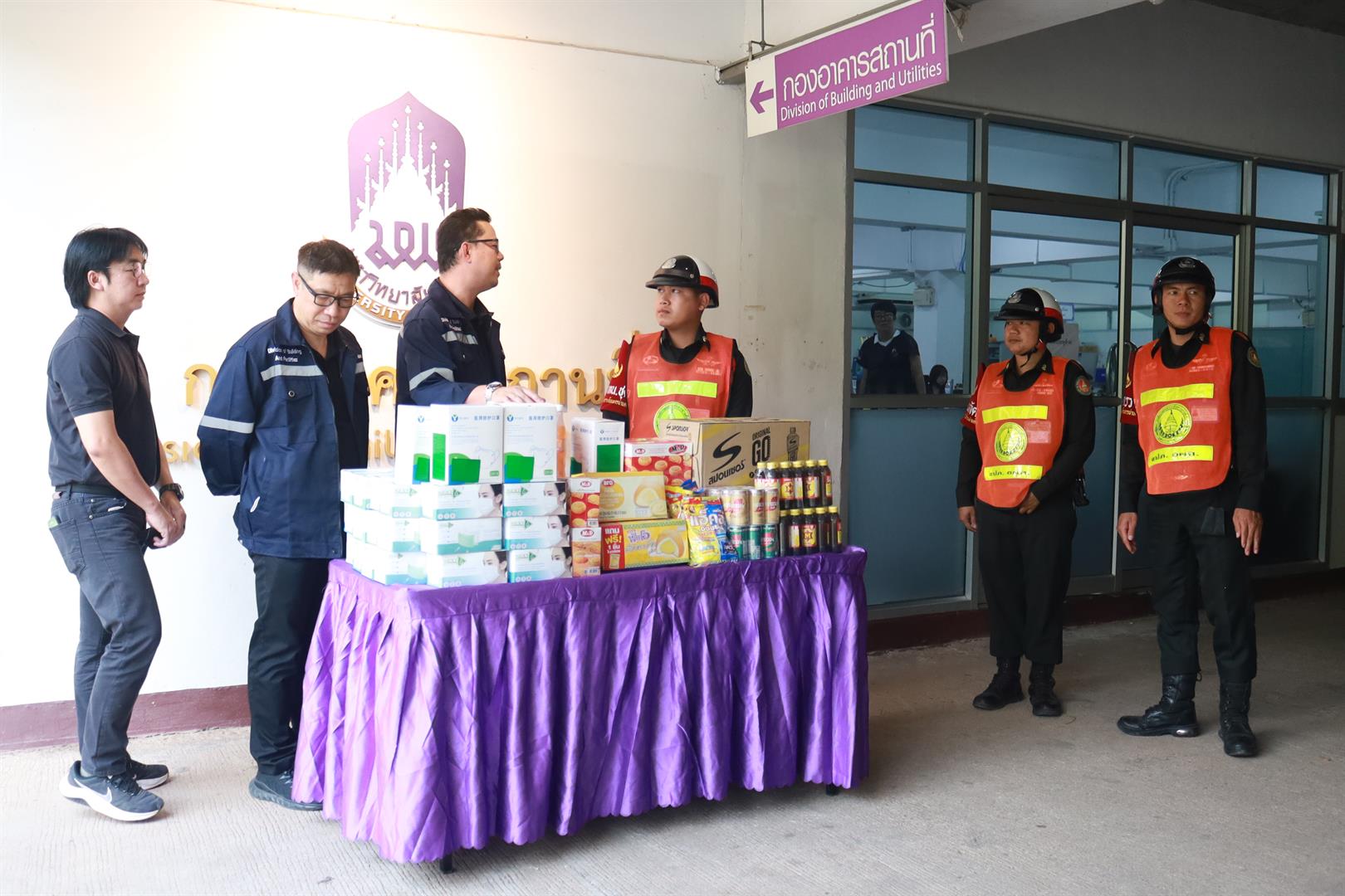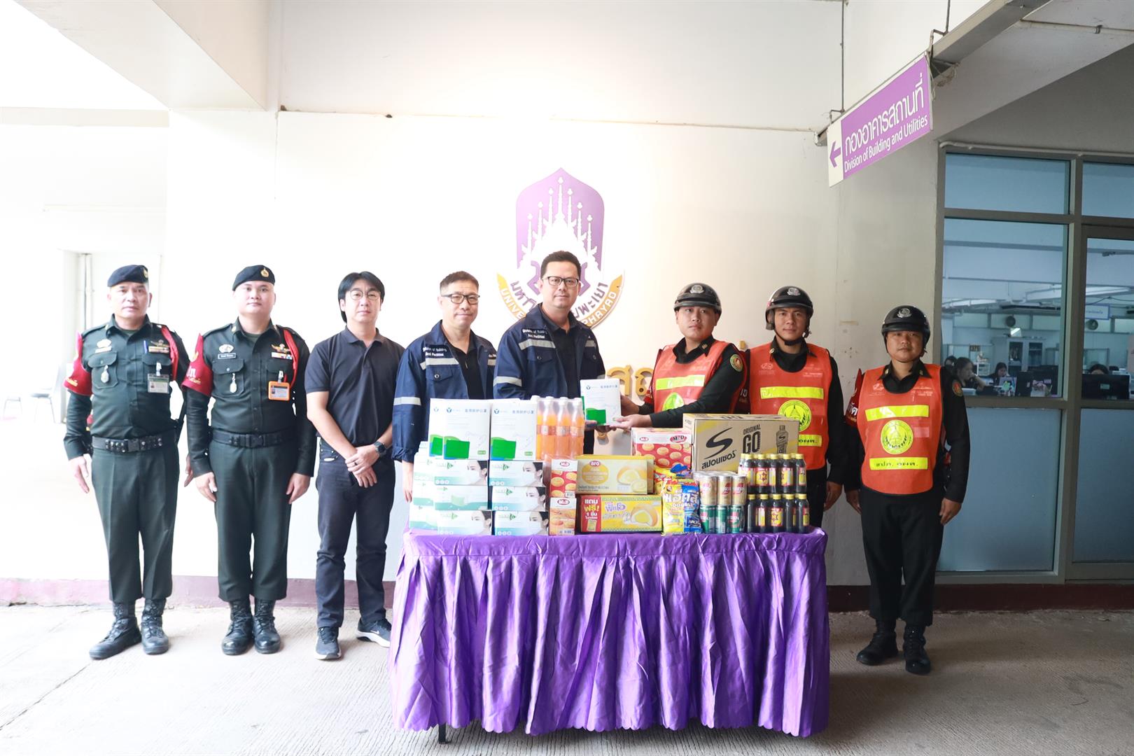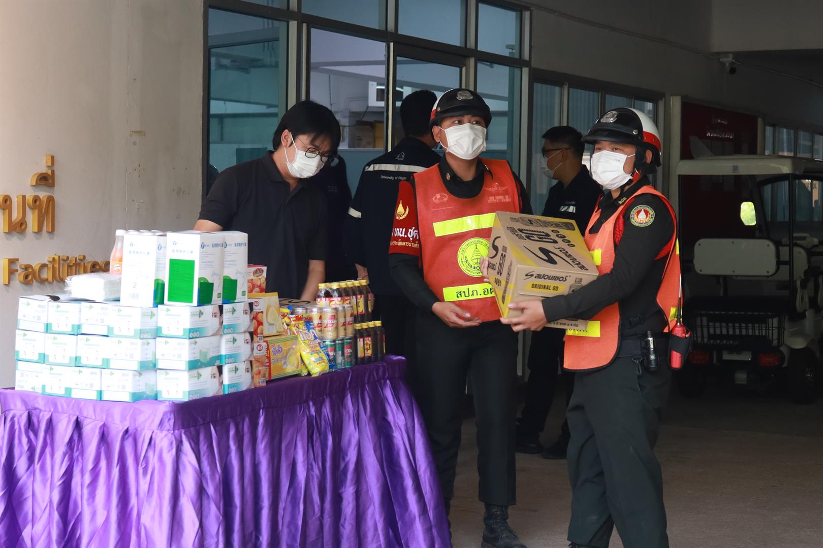ในการนี้ นายจีระวัฒน์ หมั่นงาน ผู้อำนวยการกองอาคารสถานที่ เป็นผู้แทนรับมอบ พร้อมด้วยนายชลาธร ทวีกุล หัวหน้างานความปลอดภัย ตัวแทนเจ้าหน้าที่ความปลอดภัย ตัวแทนเจ้าหน้าที่บริการความสะอาด(แม่บ้าน) ร่วมรับมอบ เพื่อนำไปส่งต่อให้แก่เจ้าหน้าที่รักษาความปลอดภัย แม่บ้าน และเจ้าหน้าที่ชุดป้องกันไฟป่า ที่ปฏิบัติงานในพื้นที่อย่างทั่วถึงและเกิดประโยชน์สูงสุด