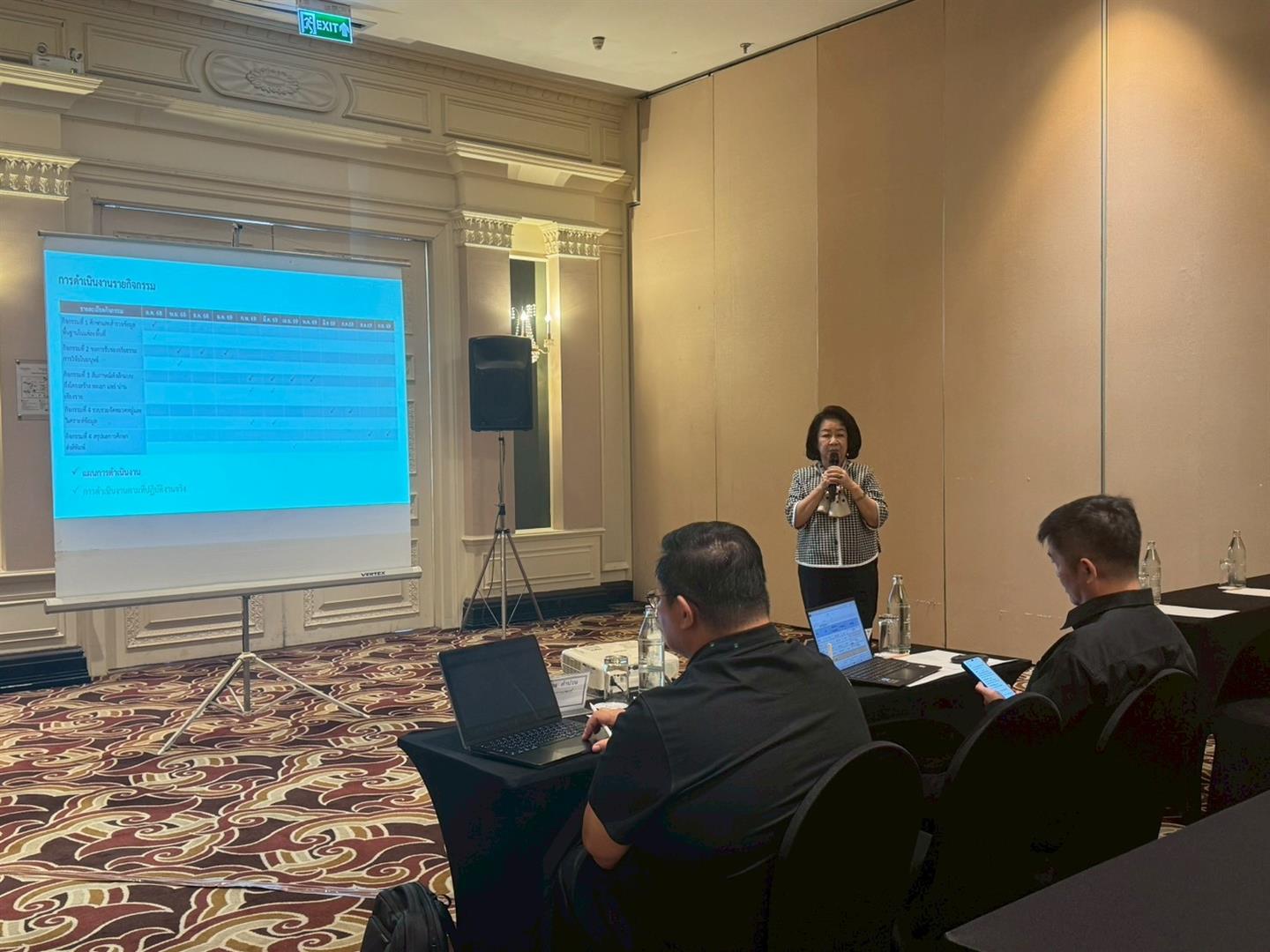 ดร.ปิยะทัศน์ พาฬอนุรักษ์ จากสำนักงานคณะกรรมการส่งเสริมวิทยาศาสตร์ วิจัยและนวัตกรรม (สกสว.) บรรยายเรื่องการบริหารงบประมาณและการประเมินผลหลังสิ้นสุดโครงการ (Post-performance)
