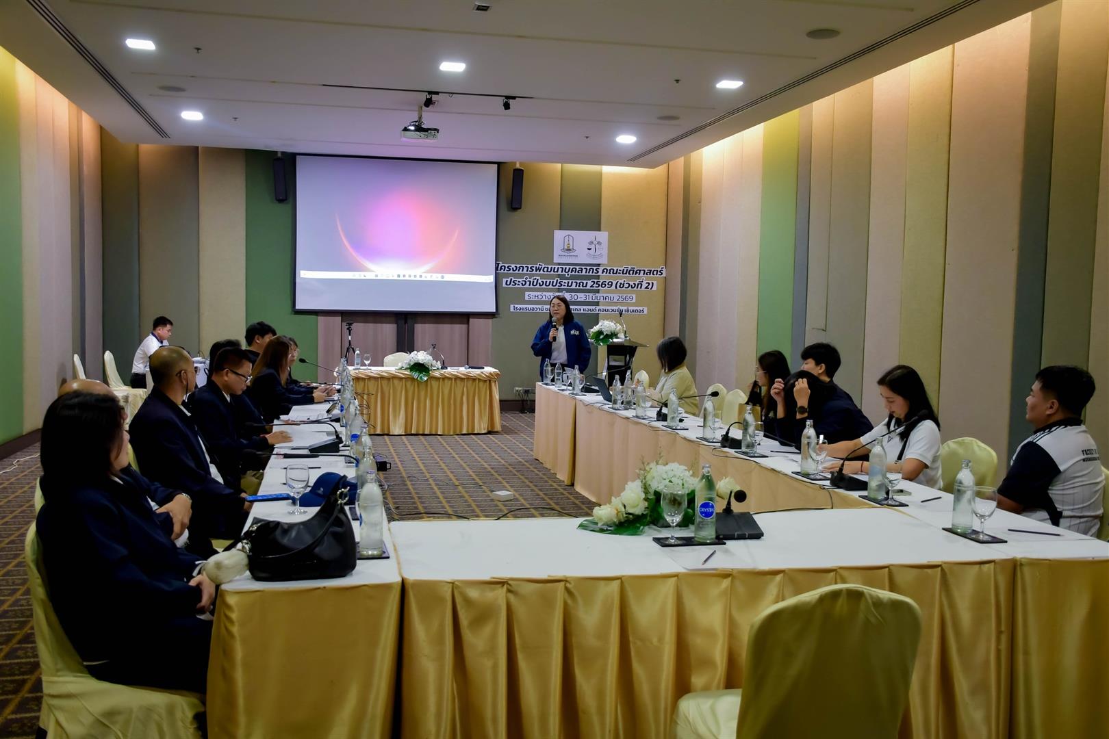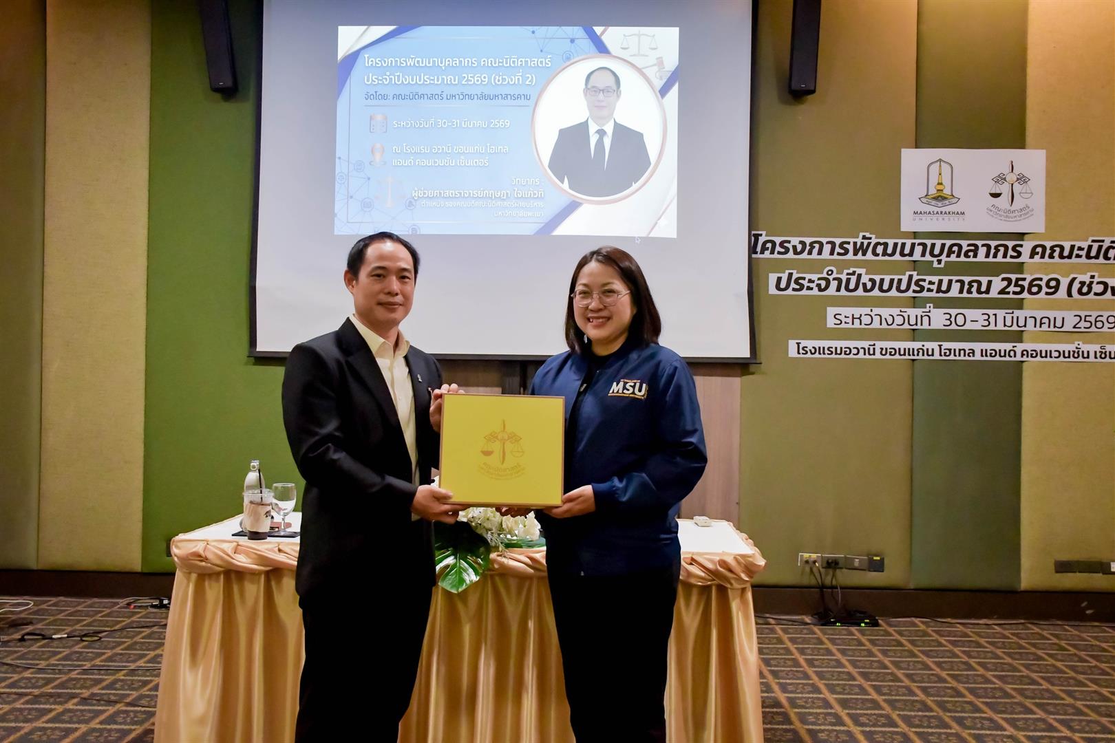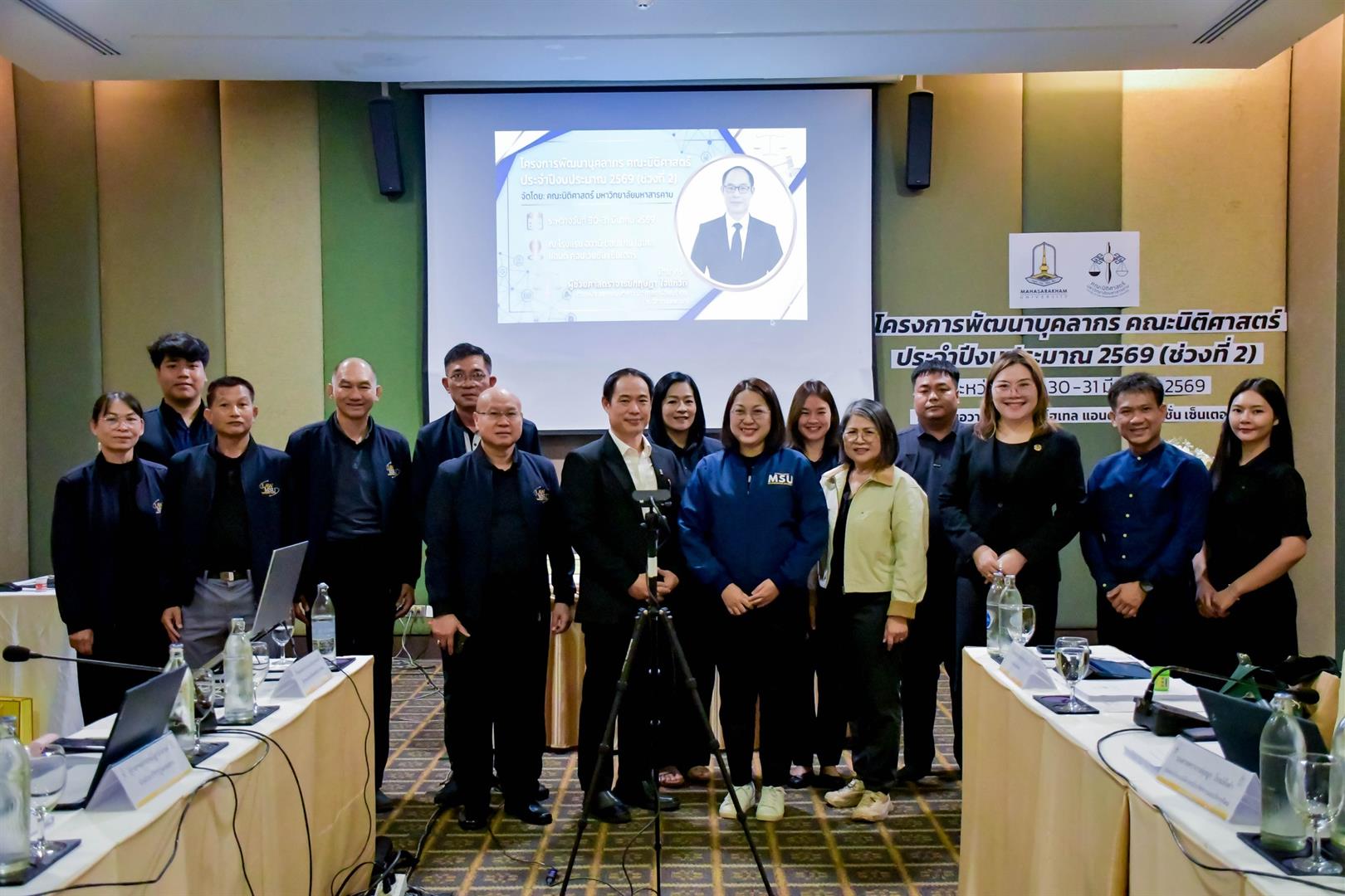 คณะนิติศาสตร์ มหาวิทยาลัยมหาสารคามได้ดำเนินการจัดโครงการพัฒนาบุคลากรคณะนิติศาสตร์ ประจำปีงบประมาณ 2569 (ช่วงที่ 2) โดยเป็นการจัดอบรมเชิงปฏิบัติการ (Workshop) และมีวัตถุประสงค์เพื่อพัฒนาศักยภาพบุคลากรในการออกแบบรายละเอียดของรายวิชา (มคอ.3) ให้เป็นไปตามหลักการจัดการศึกษาที่มุ่งเน้นผลลัพธ์ (Outcome-Based Educatiob:OBE) และสอดคล้องกับเกณฑ์มาตรฐาน AUN-QA อย่างเป็นรูปธรรมเพื่อยกระดับกลไกการเขียน มคอ.3 ให้สามารถเชื่อมโยงผลลัพธ์การเรียนรู้ระดับรายวิชา (CLOs) ไปสู่การวัดและประเมินผลที่ได้มาตรฐานระดับสากล และเพื่อบูรณาการแนวปฏิบัติที่เป็นเลิศ (Best Practices) จากสถาบันชั้นนำมาประยุกต์ใช้ในการบริหารจัดการงานวิชาการให้เกิดประสิทธิภาพสูงสุด และสร้างแรงบันดาลใจในการยกระดับคุณภาพการเรียนการสอนแก่บุคลากร