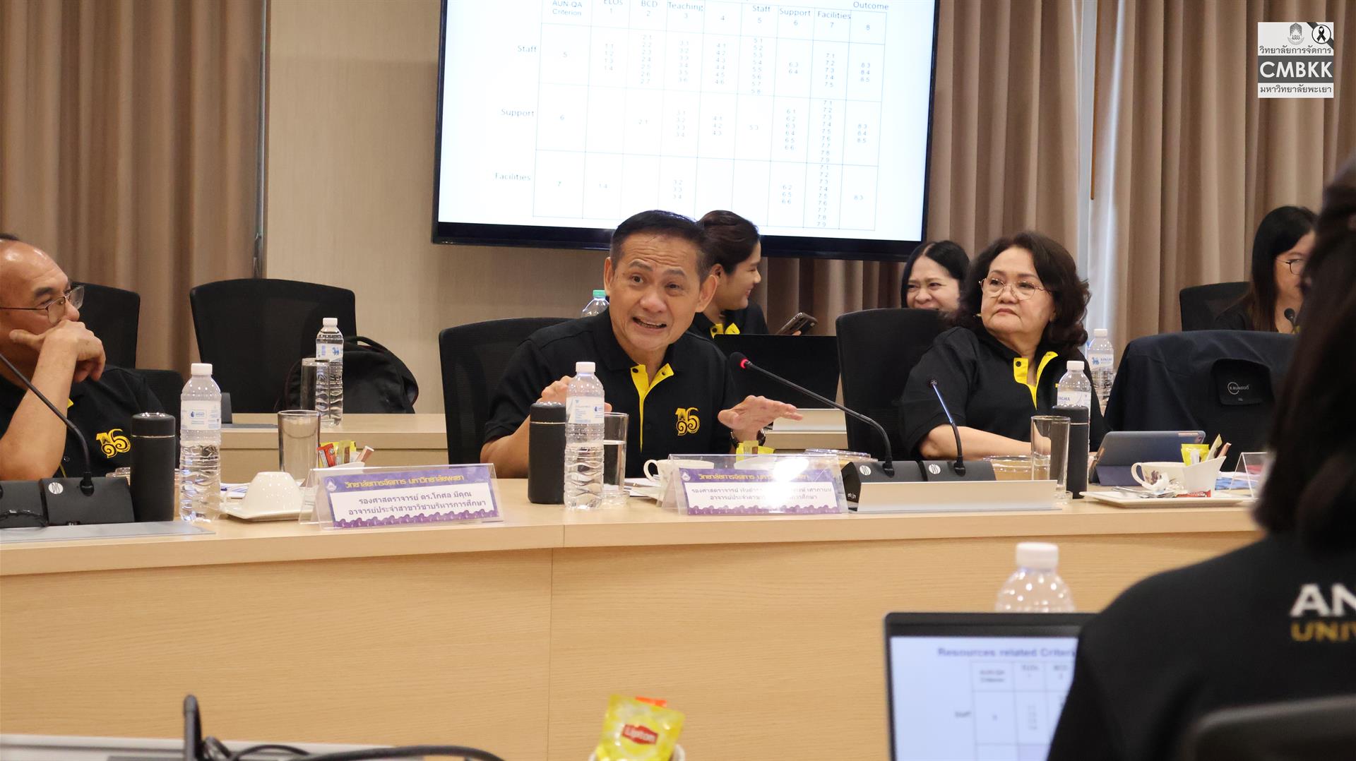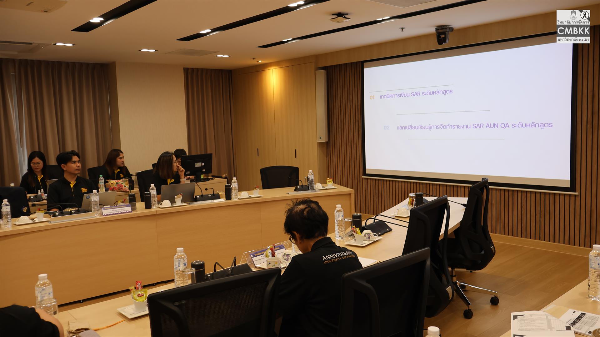 ในการนี้ ดร.ณัฐรินทร์ ปริวงศ์กุลธร อาจารย์ประจำสาขาวิชาการจัดการการท่องเที่ยว โรงแรม และธุรกิจบริการ และ ดร.วสพร ตันประเสริฐ อาจารย์ประจำสาขาบริหารธุรกิจ ซึ่งเป็นผู้ผ่านการเข้าร่วมโครงการฝึกอบรมผู้ประเมินคุณภาพการศึกษาภายใน (Assessor Training) ระหว่างวันที่ 1–2 เมษายน 2569 ณ มหาวิทยาลัยพะเยา จังหวัดพะเยา มาแลกเปลี่ยนเรียนรู้และถ่ายทอดความเข้าใจเกี่ยวกับกระบวนการประเมินคุณภาพการศึกษาตามเกณฑ์ AUN-QA รวมถึงการแลกเปลี่ยนประสบการณ์และแนวทางการจัดทำรายงานการประเมินตนเองระดับหลักสูตร (SAR) เพื่อยกระดับคุณภาพหลักสูตรให้เป็นไปตามมาตรฐานสากล ณ ห้องประชุม L806 วิทยาลัยการจัดการ มหาวิทยาลัยพะเยา อาคารเวฟเพลส ชั้น 8 กรุงเทพมหานคร