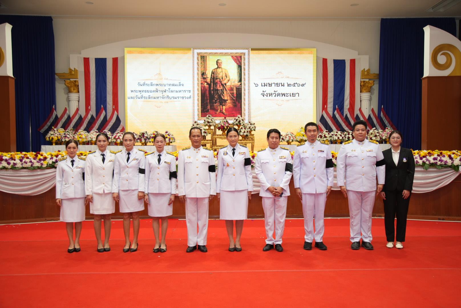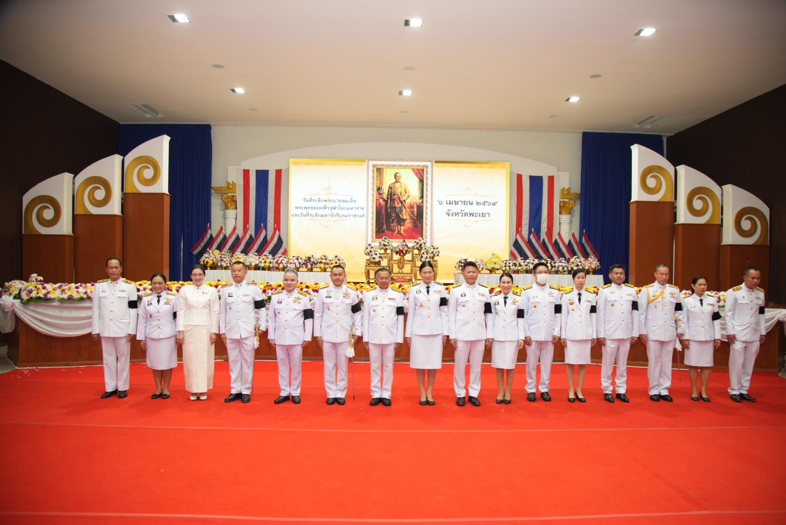 วันจันทร์ที่ 6 เมษายน 2569 รองศาสตราจารย์ ดร.สุภกร พงศบางโพธิ์ อธิการบดีมหาวิทยาลัยพะเยา มอบหมายให้รองศาสตราจารย์ ดร.มนตรา พงษ์นิล คณบดีคณะรัฐศาสตร์และสังคมศาสตร์ พร้อมด้วย รองคณบดีและบุคลากรคณะรัฐศาสตร์และสังคมศาสตร์ คณะวิทยาศาสตร์การแพทย์ และกองกลาง ร่วมพิธีวางพานพุ่มดอกไม้ ถวายราชสักการะ เนื่องใน "วันที่ระลึกพระบาทสมเด็จพระพุทธยอดฟ้าจุฬาโลกมหาราช และวันที่ระลึกมหาจักรีบรมราชวงศ์" ประจำปี 2569 ณ ศาลาประชาคมจังหวัดพะเยา