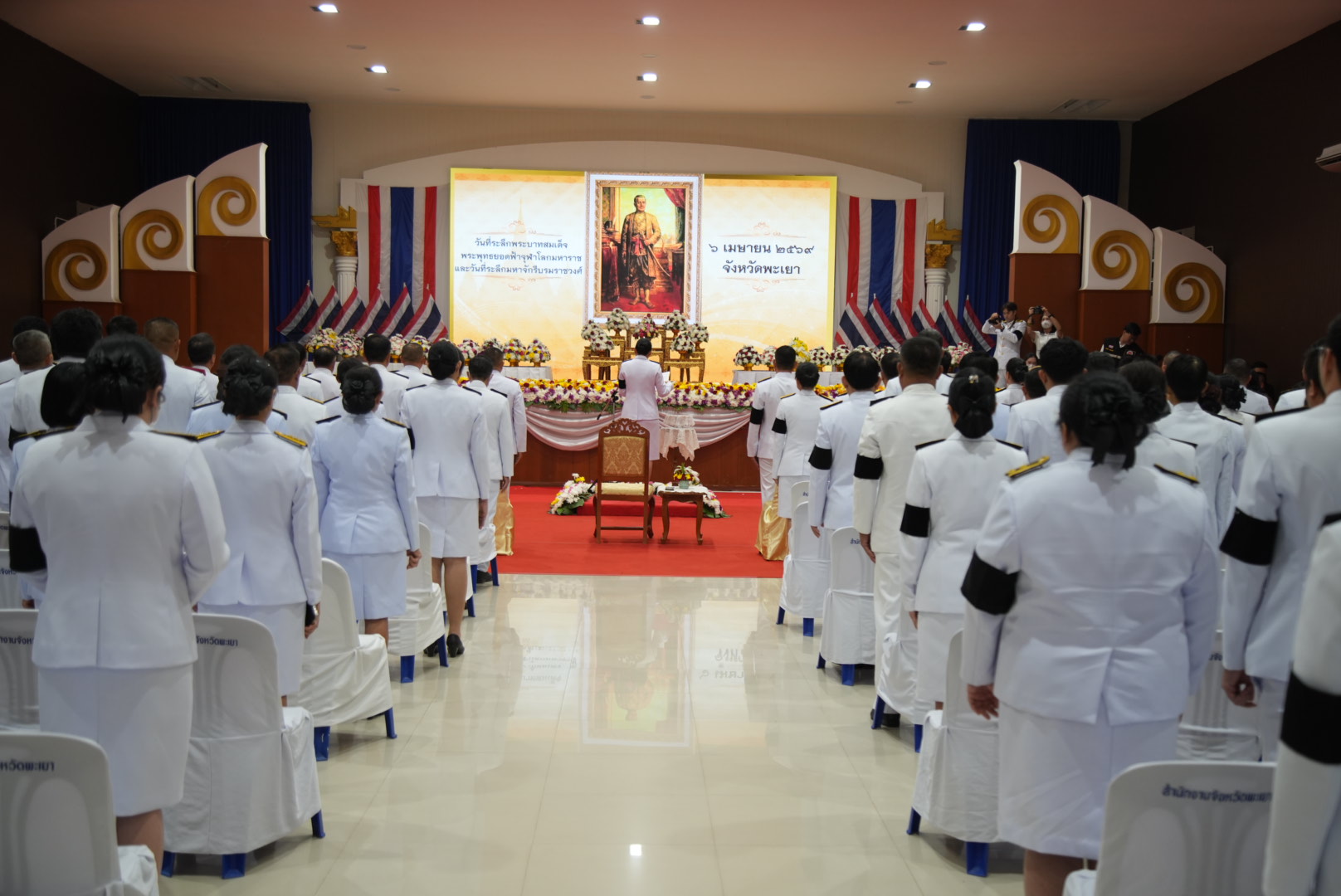 โดยการประกอบพิธีในครั้งนี้ นางสาวอรอาภา โล่ห์วีระ ผู้ว่าราชการจังหวัดพะเยา เป็นประธานนำข้าราชการพลเรือน ตุลาการ ทหาร ตำรวจ และประชาชนชาวจังหวัดพะเยา ประกอบพิธีถวายเครื่องราชสักการะ (พานพุ่มดอกไม้) จุดธูปเทียน เครื่องทองน้อย และนำกล่าวคำถวายราชสดุดีเฉลิมพระเกียรติ เนื่องใน "วันจักรี" ระลึกถึงพระมหากรุณาธิคุณ พระบาทสมเด็จพระพุทธยอดฟ้าจุฬาโลกมหาราช และมหาจักรีบรมราชวงศ์