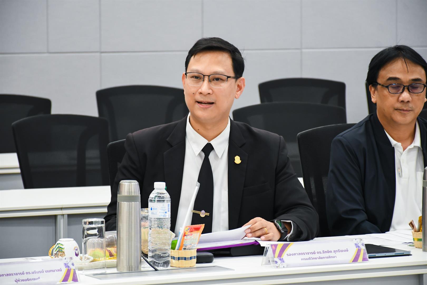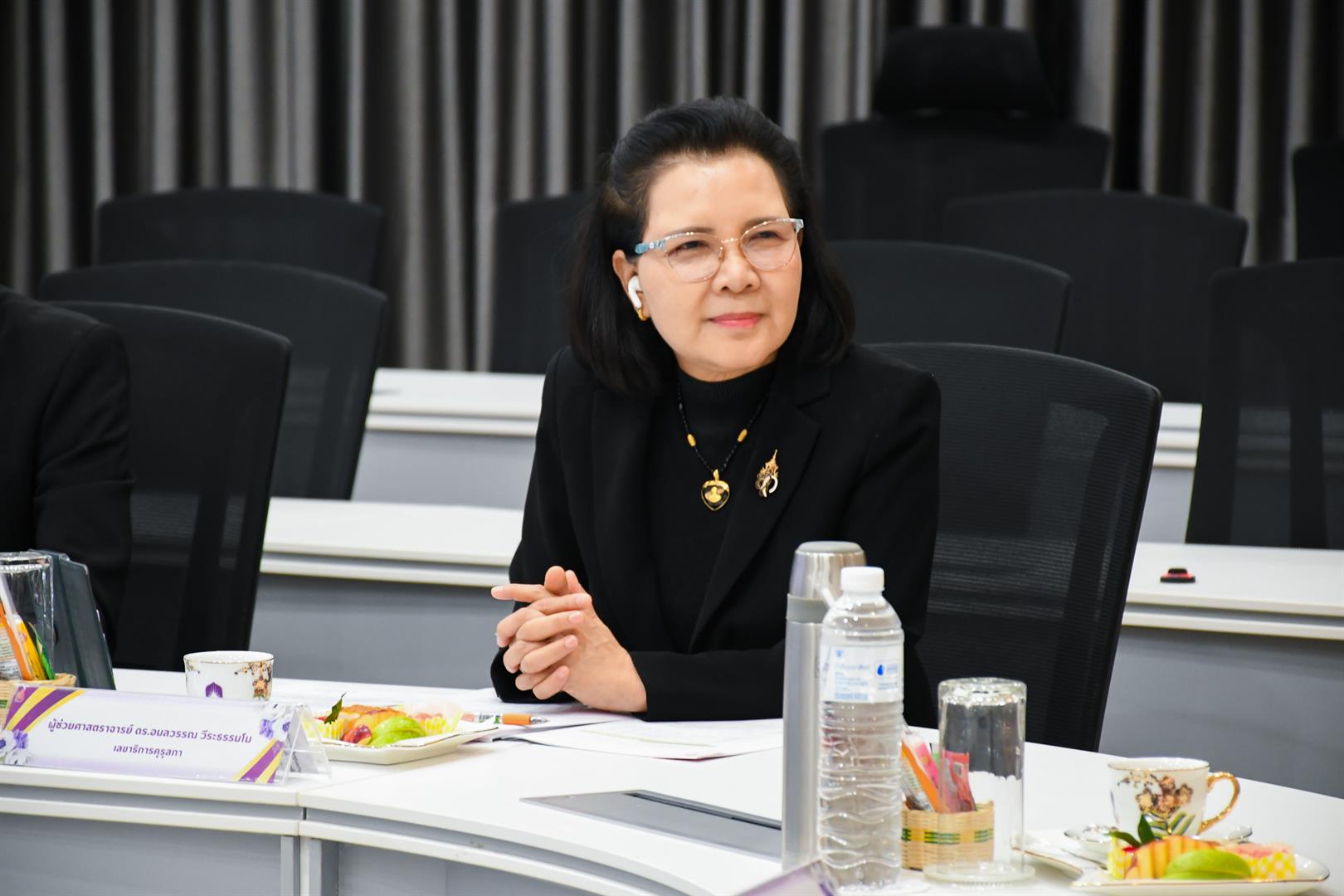 กิจกรรมที่ 1 บรรยายพิเศษ เรื่อง “การรับรองปริญญาและประกาศนียบัตรทางการศึกษา ตามมาตรฐานวิชาชีพเพื่อการประกอบวิชาชีพ พ.ศ. 2567” โดย ผู้ช่วยศาสตราจารย์ ดร.อมลวรรณ วีระธรรมโม เลขาธิการคุรุสภา และผู้ช่วยศาสตราจารย์ ดร.พลรพี ทุมมาพันธ์ รองเลขาธิการคุรุสภา จัดขึ้นเมื่อวันที่ 7 เมษายน 2569 ณ ห้องประชุมบวรรัตนประสิทธิ์ ชั้น 2 อาคารอธิการบดี มหาวิทยาลัยพะเยา โดยมีผู้เข้าร่วมประกอบด้วยรองอธิการบดีฝ่ายวิชาการ ผู้ช่วยอธิการบดี คณบดีวิทยาลัยการศึกษา คณบดีคณะวิทยาศาสตร์ คณบดีคณะศิลปศาสตร์ คณบดีคณะรัฐศาสตร์และสังคมศาสตร์ คณบดีคณะ สถาปัตยกรรมศาสตร์และศิลปกรรมศาสตร์ ผู้ทรงคุณวุฒิวิทยาลัยการศึกษา และบุคลากร