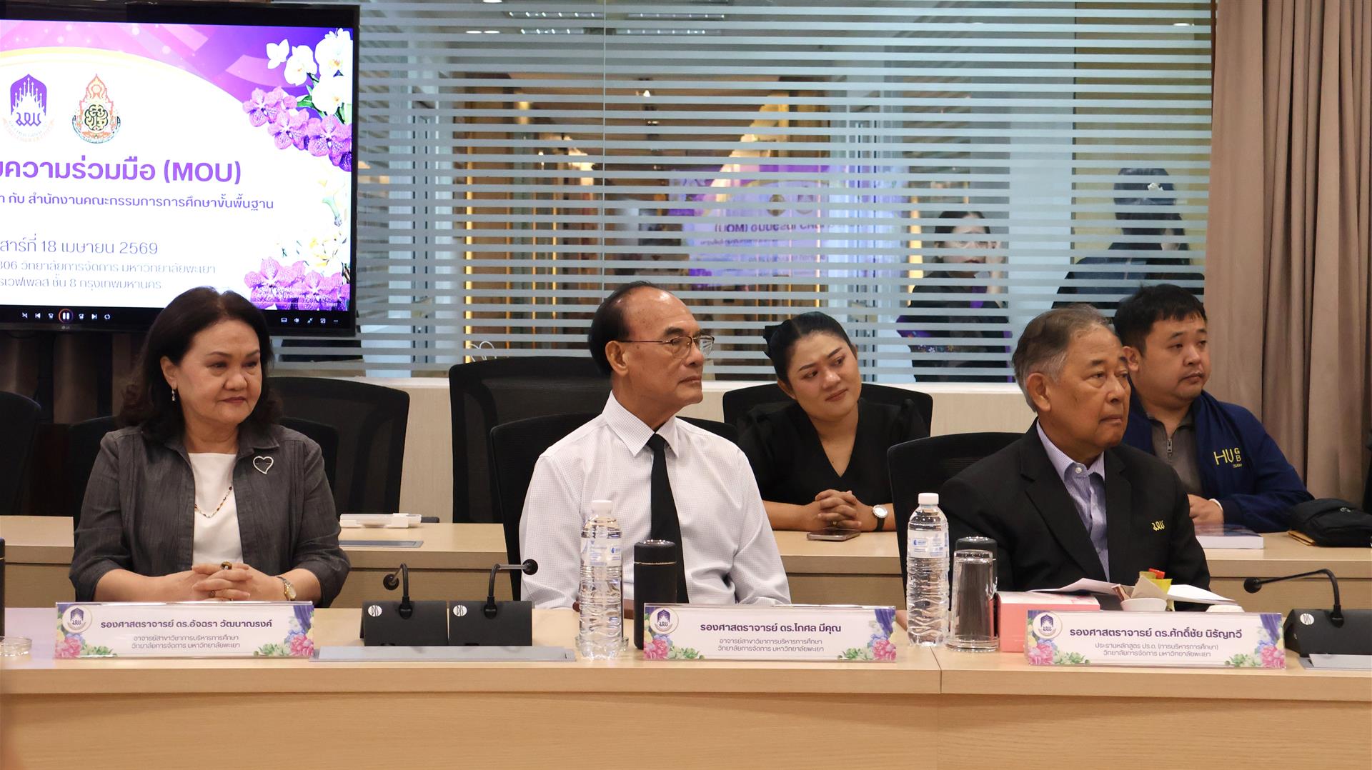 วันที่ 18 เมษายน 2569 มหาวิทยาลัยพะเยา โดย อธิการบดีมหาวิทยาลัยพะเยา รองศาสตราจารย์ ดร.สุภกร พงศบางโพธิ์ กล่าวต้อนรับ คณะผู้บริหารจากสำนักงานคณะกรรมการศึกษาขั้นพื้นฐาน (สพฐ.) และร่วมลงนามในบันทึกความเข้าใจความร่วมมือ ระหว่างมหาวิทยาลัยพะเยา กับสำนักงานคณะกรรมการการศึกษาขั้นพื้นฐาน โดยมี คณบดีวิทยาลัยการศึกษาและรักษาการแทนคณบดีวิทยาลัยการจัดการ รองศาสตราจารย์ ดร.รักษิต สุทธิพงษ์ กล่าวรายงานวัตถุประสงค์ของการจัดทำบันทึกความเข้าใจความร่วมมือ และได้รับเกียรติจาก นางภัทรวรรณ ภัทรบวรวุฒิ รองเลขาธิการคณะกรรมการการศึกษาขั้นพื้นฐาน กล่าวถึงแนวทางการดำเนินงานร่วมกันภายใต้กรอบความร่วมมือพร้อมด้วย ผู้อำนวยการสำนักบริหารงานการศึกษาพิเศษ และผู้อำนวยการกลุ่มส่งเสริมการจัดการศึกษาในศูนย์การศึกษาพิเศษและเรียนรวม รวมทั้งคณาจารย์สาขาวิชาการบริหารการศึกษา วิทยาลัยการจัดการ เข้าร่วมพิธีลงนามบันทึกความเข้าใจความร่วมมือดังกล่าว ณ ห้องประชุม L806 วิทยาลัยการจัดการ มหาวิทยาลัยพะเยา อาคารเวฟเพลส ชั้น 8 ถนนวิทยุ แขวงลุมพินี เขตปทุมวัน กรุงเทพมหานคร