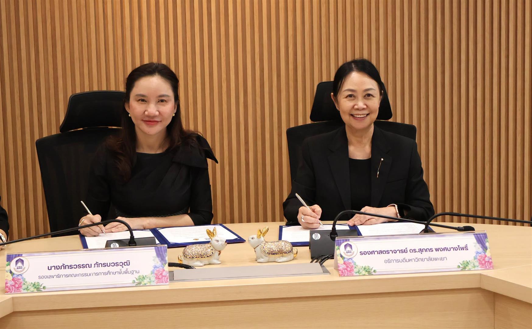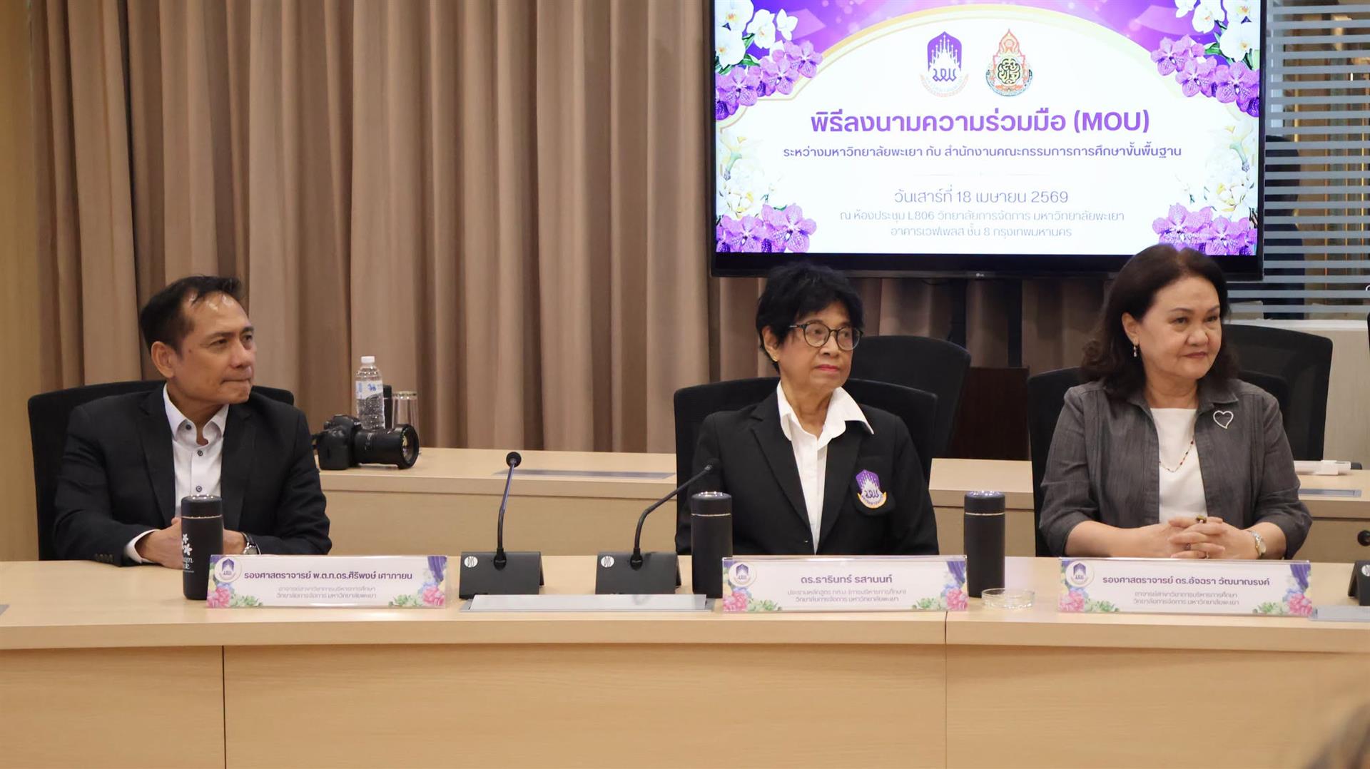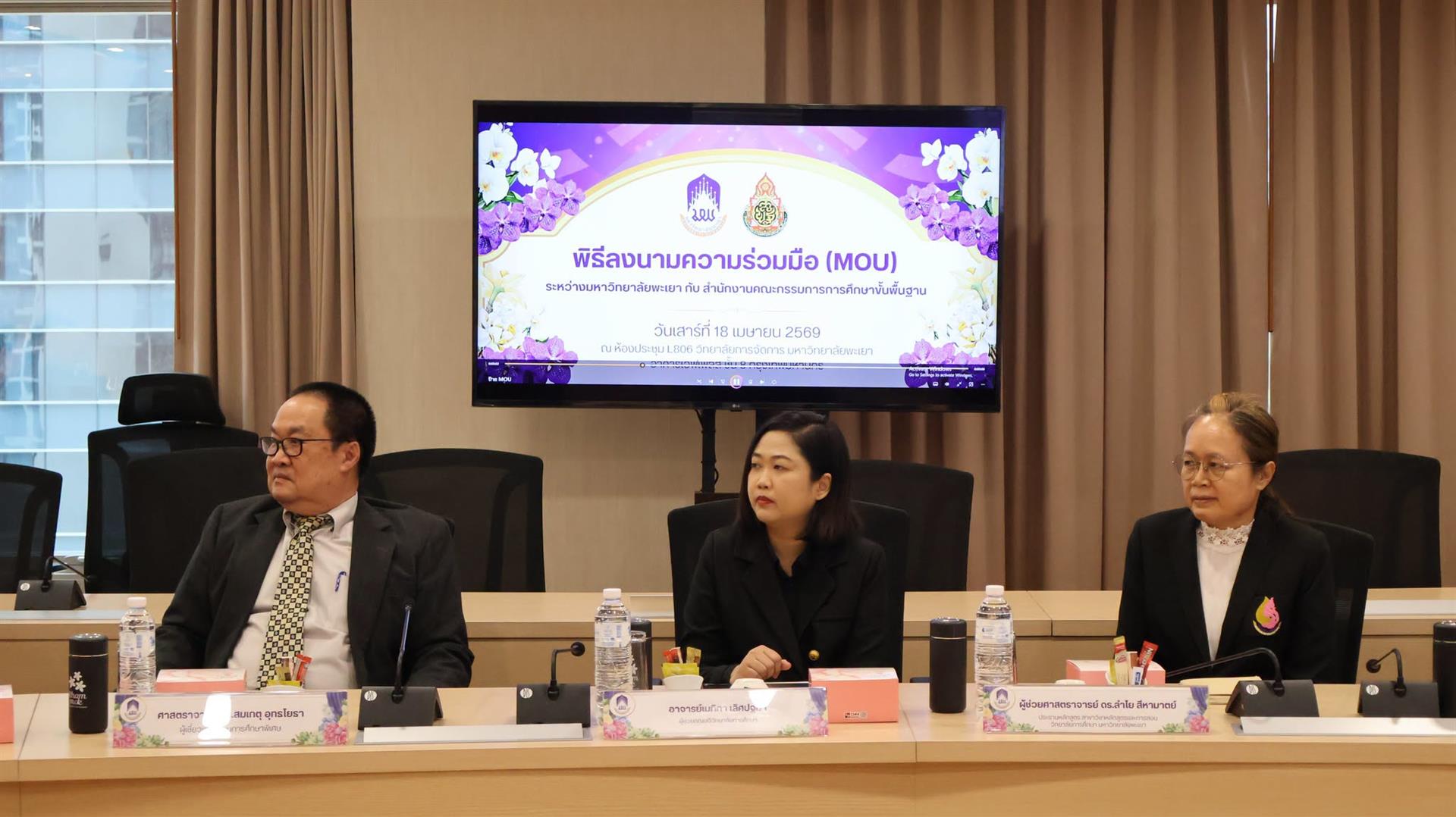 วันที่ 18 เมษายน 2569 มหาวิทยาลัยพะเยา รองศาสตราจารย์ ดร.สุภกร พงศบางโพธิ์ อธิการบดีมหาวิทยาลัยพะเยา กล่าวต้อนรับ คณะผู้บริหารจากสำนักงานคณะกรรมการศึกษาขั้นพื้นฐาน (สพฐ.) และร่วมลงนามในบันทึกความเข้าใจความร่วมมือ ระหว่างมหาวิทยาลัยพะเยา กับสำนักงานคณะกรรมการการศึกษาขั้นพื้นฐาน โดยมี รองศาสตราจารย์ ดร.รักษิต สุทธิพงษ์ คณบดีวิทยาลัยการศึกษา กล่าวรายงานวัตถุประสงค์ของการจัดทำบันทึกความเข้าใจความร่วมมือ และได้รับเกียรติจาก นางภัทรวรรณ ภัทรบวรวุฒิ รองเลขาธิการคณะกรรมการการศึกษาขั้นพื้นฐาน กล่าวถึงแนวทางการดำเนินงานร่วมกันภายใต้กรอบความร่วมมือพร้อมด้วย ผู้อำนวยการสำนักบริหารงานการศึกษาพิเศษ และผู้อำนวยการกลุ่มส่งเสริมการจัดการศึกษาในศูนย์การศึกษาพิเศษและเรียนรวม รวมทั้งคณาจารย์สาขาวิชาการบริหารการศึกษา วิทยาลัยการจัดการ เข้าร่วมพิธีลงนามบันทึกความเข้าใจความร่วมมือดังกล่าว ณ ห้องประชุม L806 วิทยาลัยการจัดการ มหาวิทยาลัยพะเยา อาคารเวฟเพลส ชั้น 8 ถนนวิทยุ แขวงลุมพินี เขตปทุมวัน กรุงเทพมหานคร