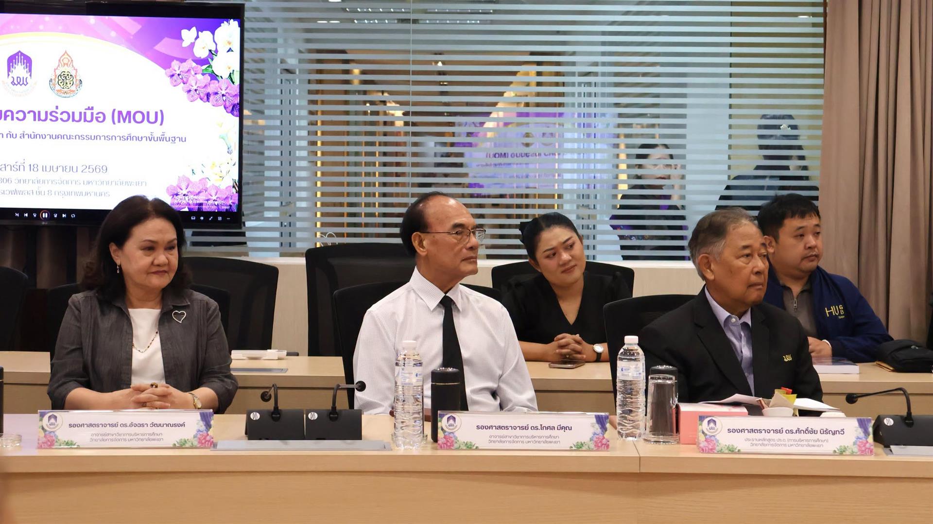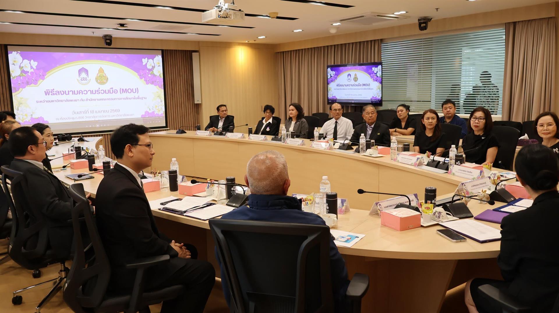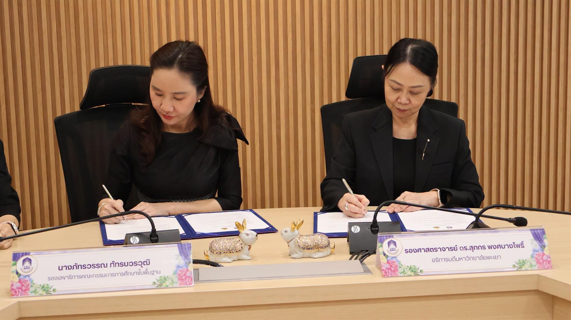 วันที่ 18 เมษายน 2569 มหาวิทยาลัยพะเยา รองศาสตราจารย์ ดร.สุภกร พงศบางโพธิ์ อธิการบดีมหาวิทยาลัยพะเยา กล่าวต้อนรับ คณะผู้บริหารจากสำนักงานคณะกรรมการศึกษาขั้นพื้นฐาน (สพฐ.) และร่วมลงนามในบันทึกความเข้าใจความร่วมมือ ระหว่างมหาวิทยาลัยพะเยา กับสำนักงานคณะกรรมการการศึกษาขั้นพื้นฐาน โดยมี รองศาสตราจารย์ ดร.รักษิต สุทธิพงษ์ คณบดีวิทยาลัยการศึกษา กล่าวรายงานวัตถุประสงค์ของการจัดทำบันทึกความเข้าใจความร่วมมือ และได้รับเกียรติจาก นางภัทรวรรณ ภัทรบวรวุฒิ รองเลขาธิการคณะกรรมการการศึกษาขั้นพื้นฐาน กล่าวถึงแนวทางการดำเนินงานร่วมกันภายใต้กรอบความร่วมมือพร้อมด้วย ผู้อำนวยการสำนักบริหารงานการศึกษาพิเศษ และผู้อำนวยการกลุ่มส่งเสริมการจัดการศึกษาในศูนย์การศึกษาพิเศษและเรียนรวม รวมทั้งคณาจารย์สาขาวิชาการบริหารการศึกษา วิทยาลัยการจัดการ เข้าร่วมพิธีลงนามบันทึกความเข้าใจความร่วมมือดังกล่าว ณ ห้องประชุม L806 วิทยาลัยการจัดการ มหาวิทยาลัยพะเยา อาคารเวฟเพลส ชั้น 8 ถนนวิทยุ แขวงลุมพินี เขตปทุมวัน กรุงเทพมหานคร