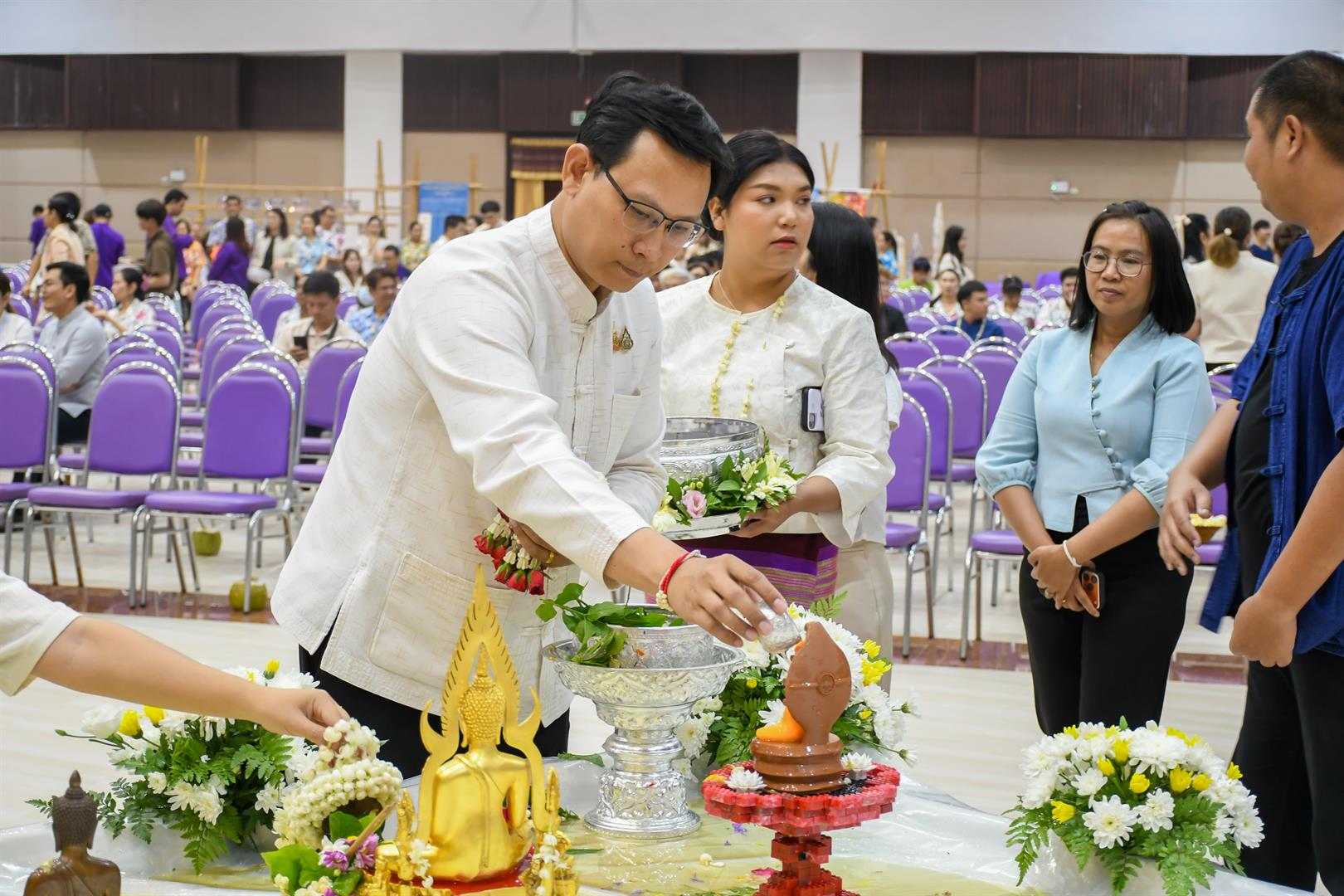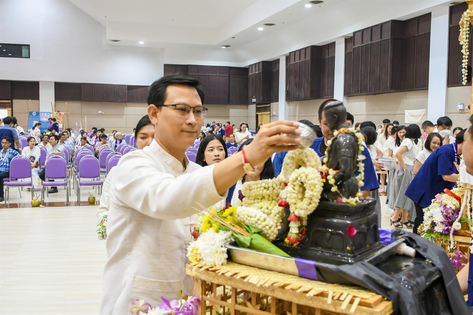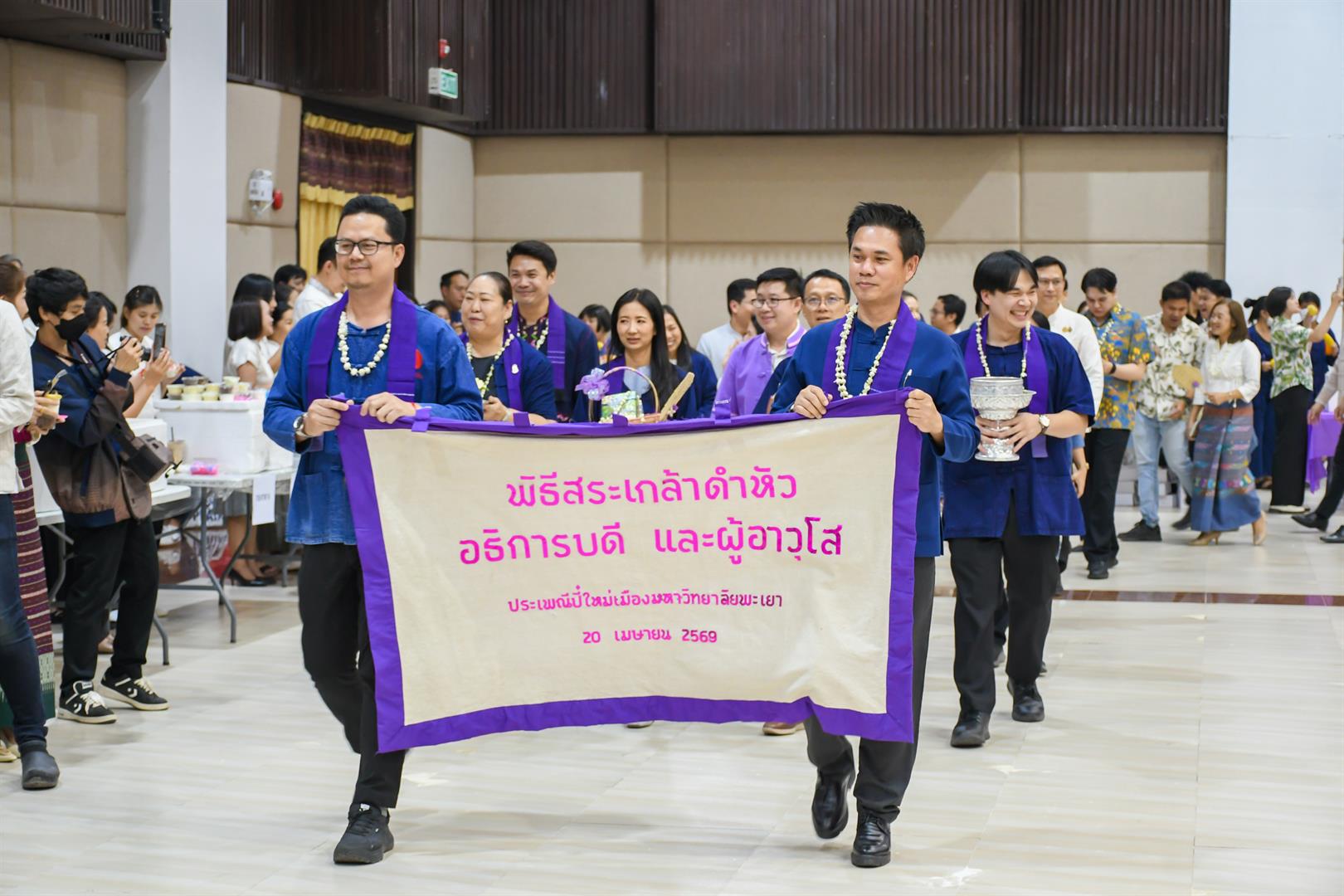 วันที่ ๒๐ เมษายน ๒๕๖๙ วิทยาลัยการศึกษา นำโดย รองศาสตราจารย์ ดร.รักษิต สุทธิพงษ์ คณบดีวิทยาลัยการศึกษา พร้อมด้วยผู้บริหาร คณาจารย์ และบุคลากรสายสนับสนุน เข้าร่วมพิธีสระเกล้าดำหัวอธิการบดีและผู้อาวุโส เนื่องในเทศกาลสงกรานต์มหาวิทยาลัยพะเยา ประจำปี ๒๕๖๙ ณ หอประชุมพญางำเมือง มหาวิทยาลัยพะเยา โดยร่วมสรงน้ำพระพุทธภุชคารักษ์ และพระบรมรูปสมเด็จพระนเรศวรมหาราช เพื่อความเป็นสิริมงคล พร้อมทั้งขอขมาและรับพรจาก รองศาสตราจารย์ ดร.สุภกร พงศบางโพธิ์ อธิการบดีมหาวิทยาลัยพะเยา และผู้อาวุโสที่เคารพ