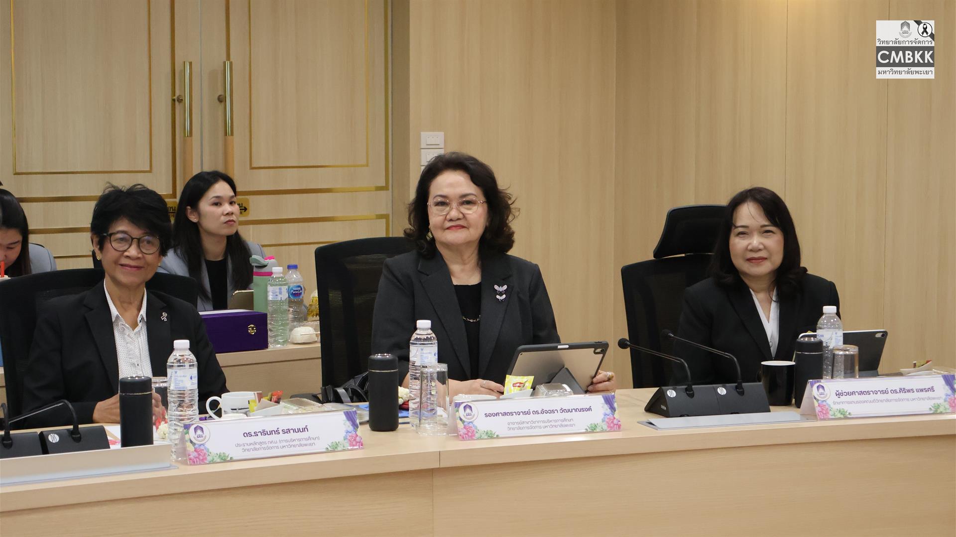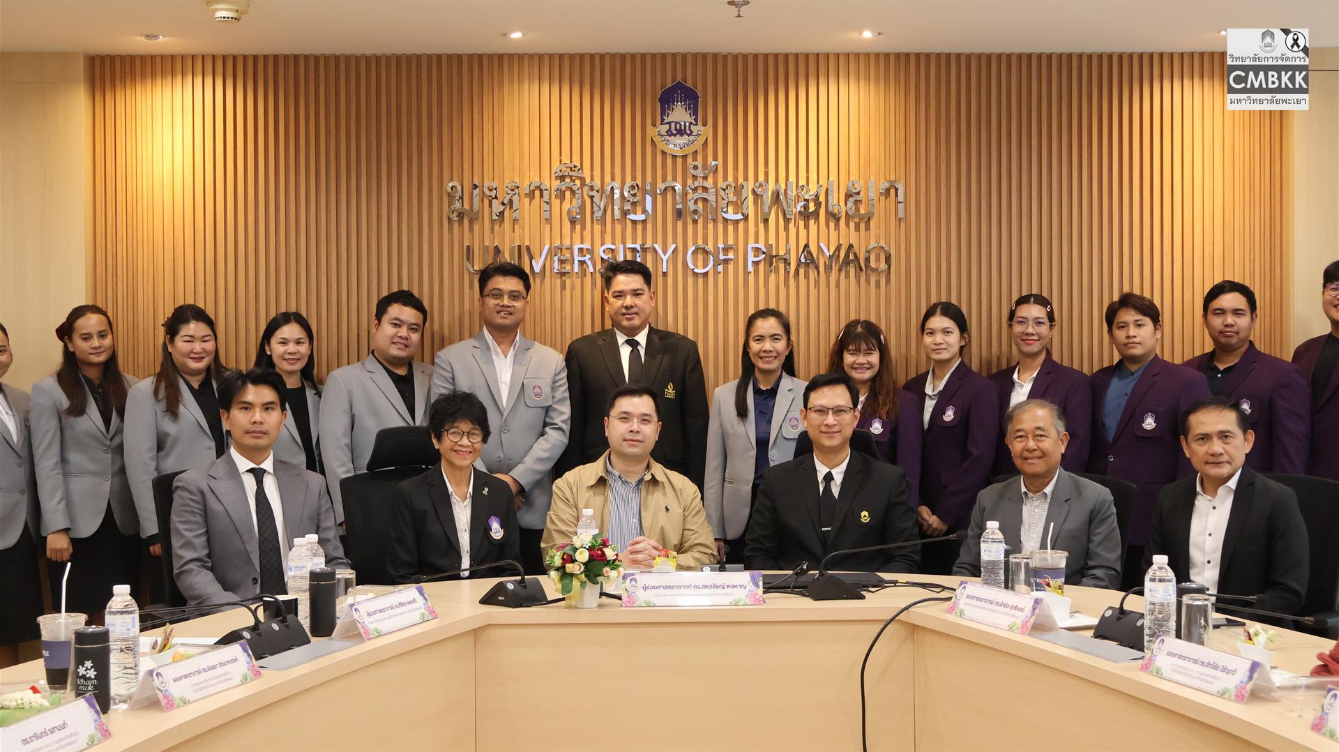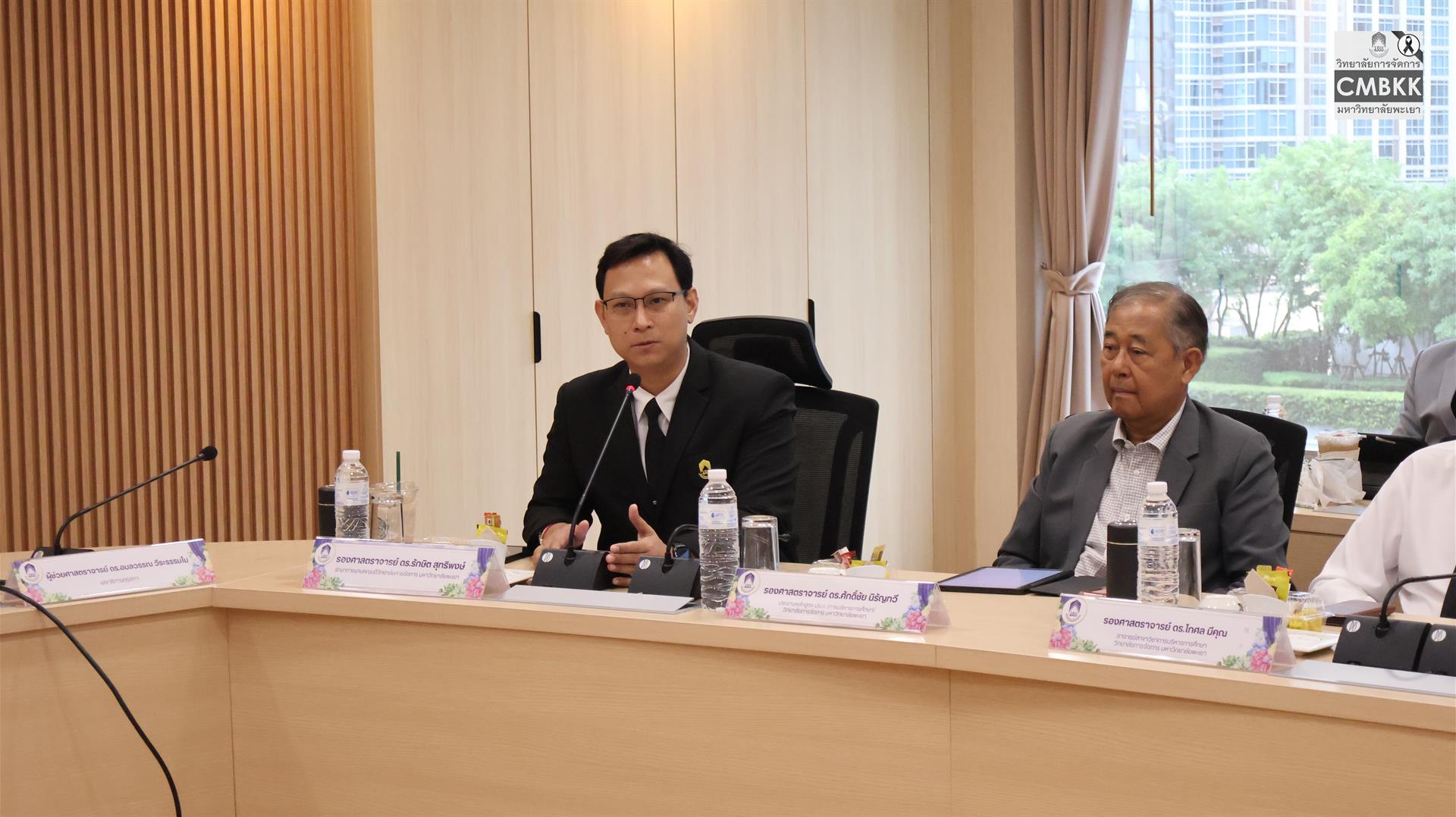 วันที่ 25 เมษายน 2569 วิทยาลัยการจัดการ มหาวิทยาลัยพะเยา จัดสัมมนาวิชาการสำหรับนิสิตระดับบัณฑิตศึกษา เพื่อเสริมสร้างองค์ความรู้และมุมมองด้านการบริหารการศึกษาให้สอดคล้องกับบริบทสังคมไทยที่เปลี่ยนแปลงอย่างรวดเร็ว โดยมี รองศาสตราจารย์ ดร.รักษิต สุทธิพงษ์ รักษาการแทนคณบดีวิทยาลัยการจัดการ และผู้ช่วยศาสตราจารย์ ดร.ศิริพร แพรศรี รักษาการแทนรองคณบดีวิทยาลัยการจัดการ พร้อมด้วยคณาจารย์ประจำสาขาวิชาการบริหารการศึกษา และนิสิตหลักสูตรการศึกษามหาบัณฑิต สาขาวิชาการบริหารการศึกษา ชั้นปีที่ 1 และชั้นปีที่ 2 ให้การต้อนรับ ผู้ช่วยศาสตราจารย์ ดร.อมลวรรณ วีระธรรมโม เลขาธิการ คุรุสภา และผู้ช่วยศาสตราจารย์ ดร.สหวรัชญ์ พลหาญ ผู้อำนวยการ สถาบันวิจัยเพื่อความเสมอภาคทางการศึกษา เข้าร่วมกิจกรรมดังกล่าว ณ ห้องประชุม L806 วิทยาลัยการจัดการ อาคารเวฟเพลส ชั้น 8 กรุงเทพมหานคร