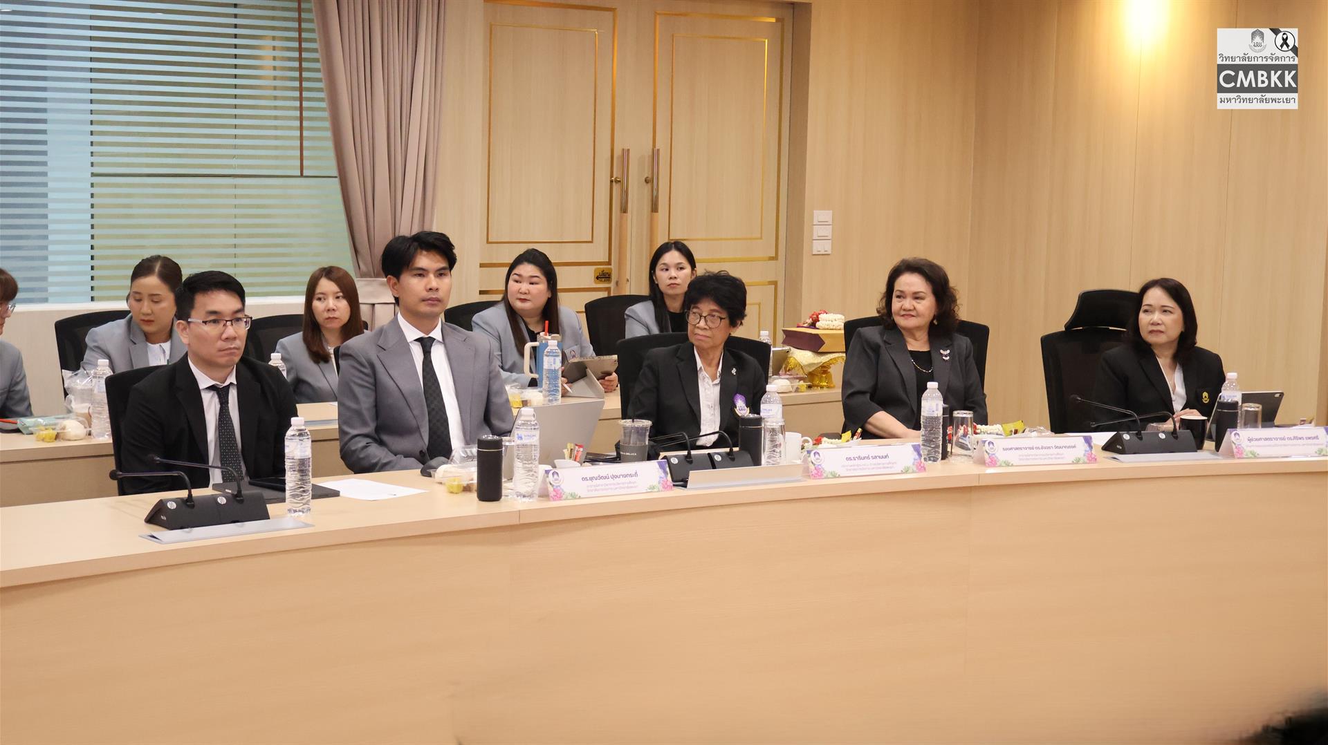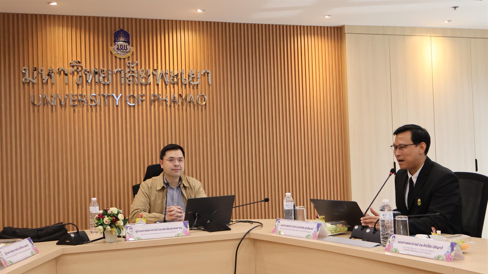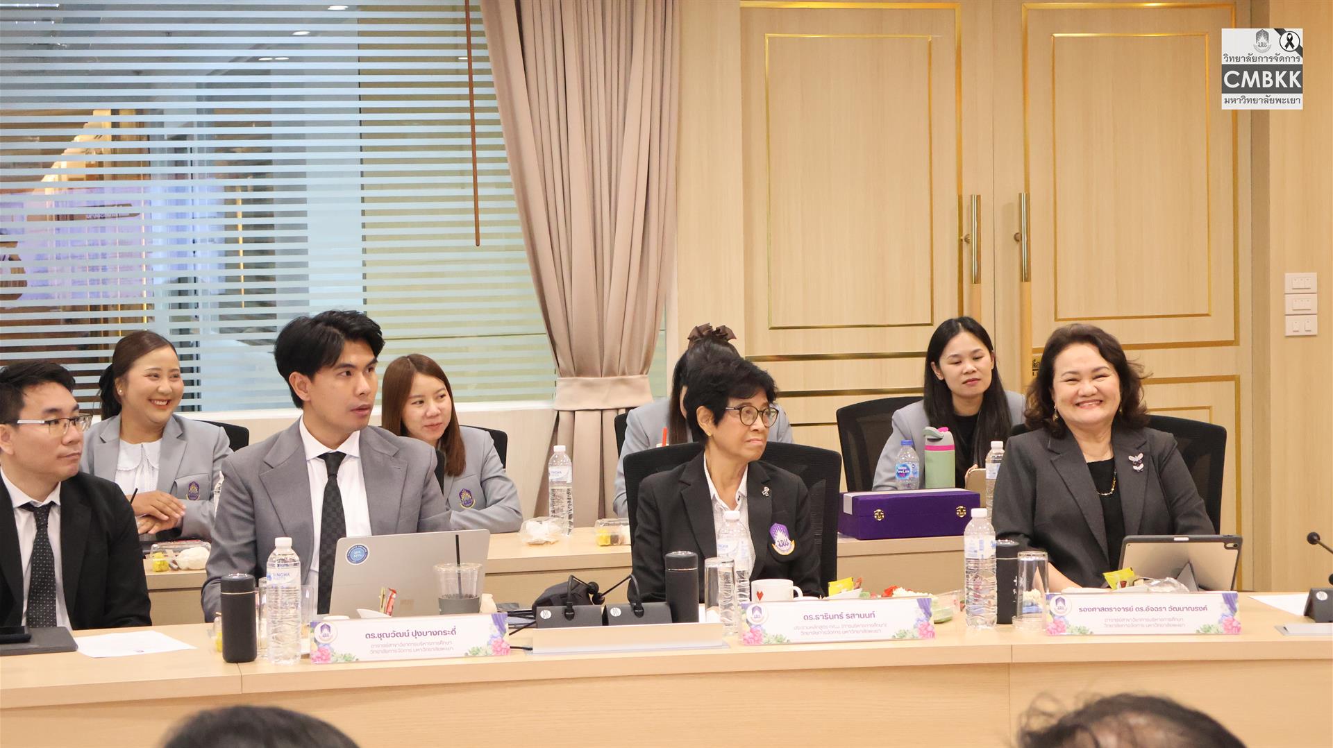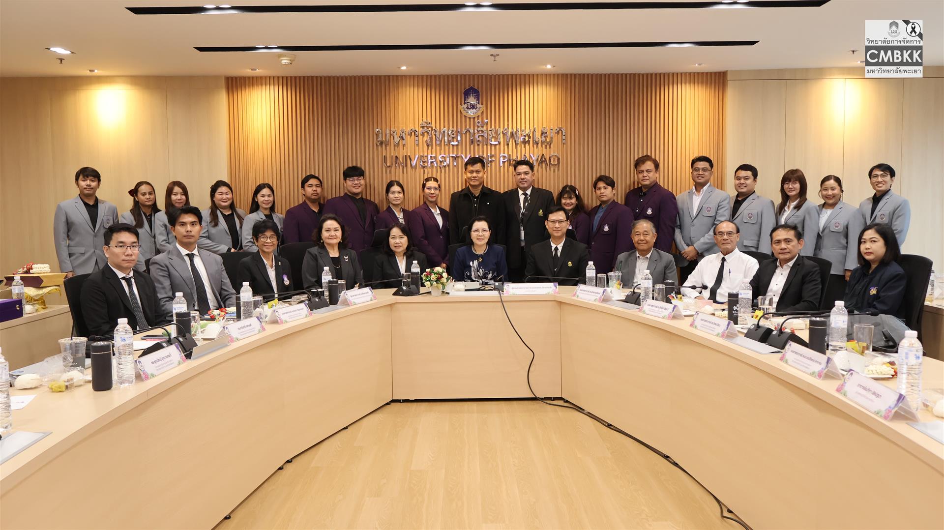 วันที่ 25 เมษายน 2569 วิทยาลัยการจัดการ มหาวิทยาลัยพะเยา จัดสัมมนาวิชาการสำหรับนิสิตระดับบัณฑิตศึกษา เพื่อเสริมสร้างองค์ความรู้และมุมมองด้านการบริหารการศึกษาให้สอดคล้องกับบริบทสังคมไทยที่เปลี่ยนแปลงอย่างรวดเร็ว โดยมี รองศาสตราจารย์ ดร.รักษิต สุทธิพงษ์ รักษาการแทนคณบดีวิทยาลัยการจัดการ และผู้ช่วยศาสตราจารย์ ดร.ศิริพร แพรศรี รักษาการแทนรองคณบดีวิทยาลัยการจัดการ พร้อมด้วยคณาจารย์ประจำสาขาวิชาการบริหารการศึกษา และนิสิตหลักสูตรการศึกษามหาบัณฑิต สาขาวิชาการบริหารการศึกษา ชั้นปีที่ 1 และชั้นปีที่ 2 ให้การต้อนรับ ผู้ช่วยศาสตราจารย์ ดร.อมลวรรณ วีระธรรมโม เลขาธิการ คุรุสภา และผู้ช่วยศาสตราจารย์ ดร.สหวรัชญ์ พลหาญ ผู้อำนวยการ สถาบันวิจัยเพื่อความเสมอภาคทางการศึกษา เข้าร่วมกิจกรรมดังกล่าว ณ ห้องประชุม L806 วิทยาลัยการจัดการ อาคารเวฟเพลส ชั้น 8 กรุงเทพมหานคร