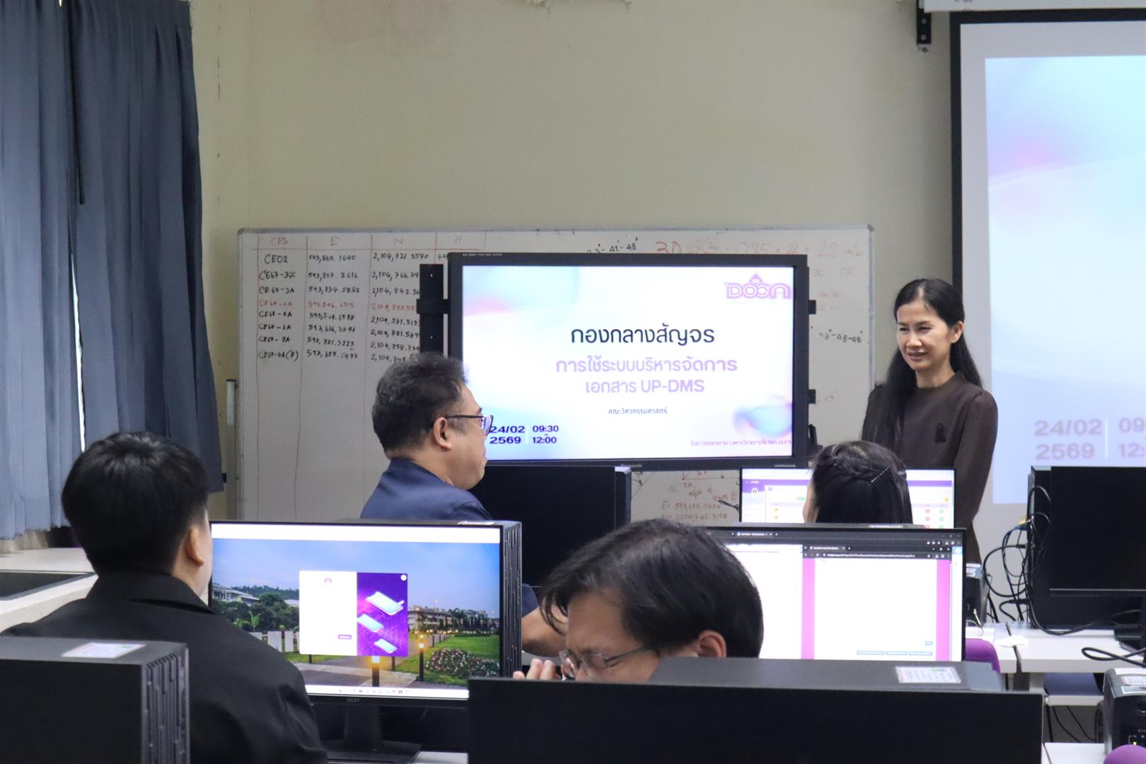 School of Engineering, University of Phayao, led by Assistant Professor Dr. Apichat Buakla, Associate Dean for Administration and Special Affairs, and Assistant Professor Dr. Wassana Naku, Associate Dean for Academic Affairs and Quality Assurance, together with faculty personnel and laboratory instructors, participated in the “UP DMS Outreach Program on Digital Document Management System Utilization” The program was organized by the Central Administration Division of the University of Phayao on 24 February 2026 at the School’s Computer Laboratory (EN 1301).