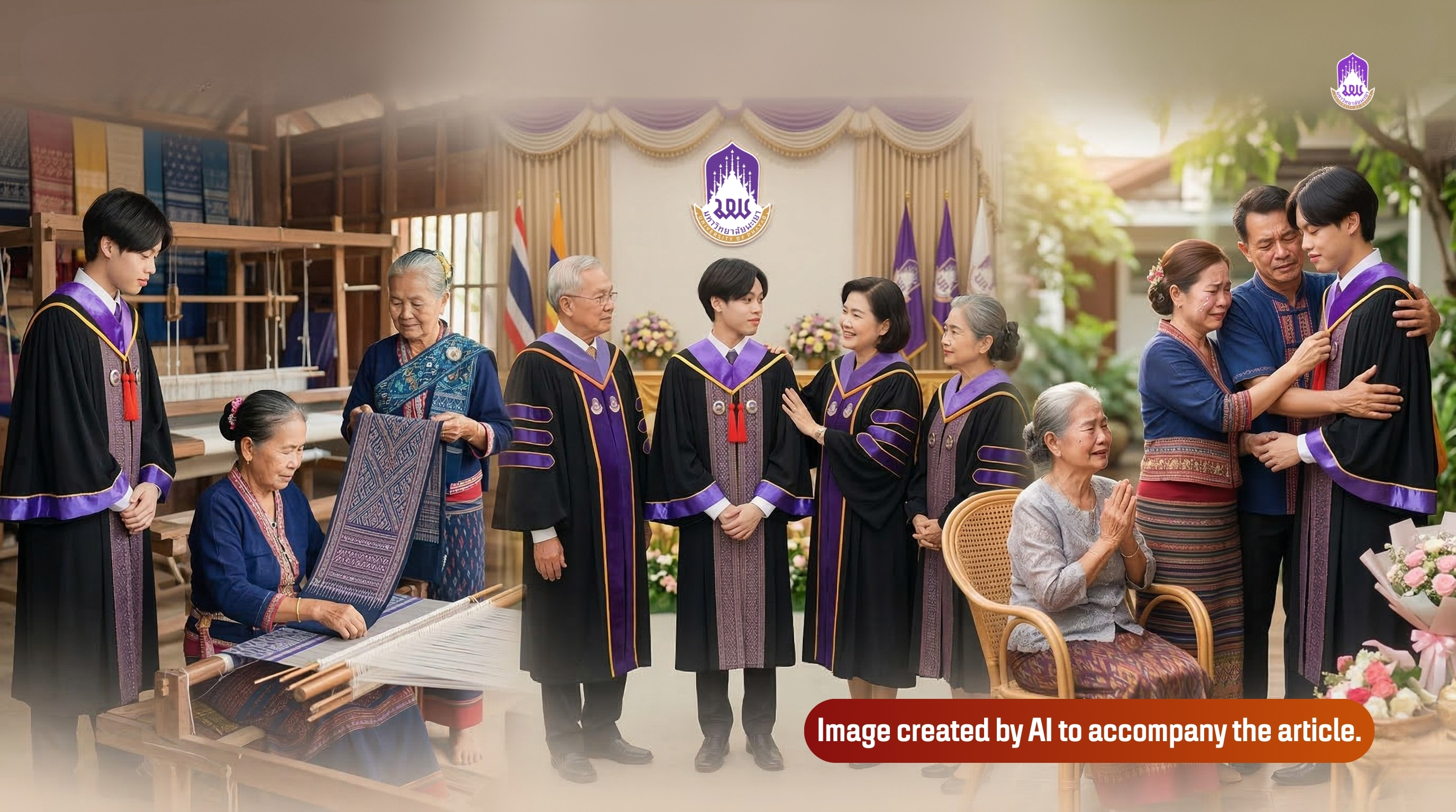 On the day the graduates step forward to receive their royal degrees, the pride felt within that hall does not belong to just one person; it exists in many profound layers. The first layer is the pride of the Tai Lue community in Chiang Kham District, who meticulously hand-loomed the Lai Tam Kao weave, ensuring its intricate beauty adorns the gown of every graduate. The next layer is the pride of the faculty and mentors who have imparted their knowledge, sending these graduates out to serve society in alignment with the university’s mission. And the deepest layer of all is the pride of parents and families, watching their children stand tall in that regalia. On that day, what they see before them is no ordinary gown—it is the “Gown of Local Wisdom,” imbued with the spirit of a refined scholar. It represents an individual armed with the intellect and soul to step forward, create a better society, and build a lasting strength for the land.
