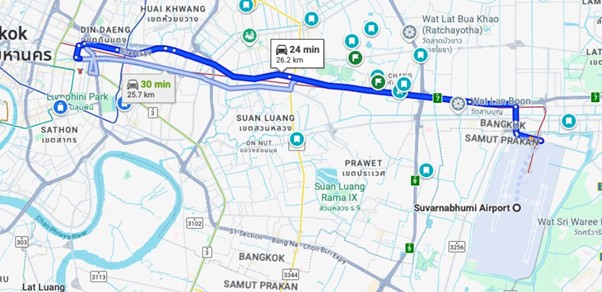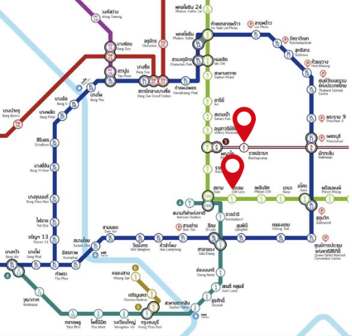 - Airport Link Ratchaprarop Station Exit 2 (12 minutes walks)