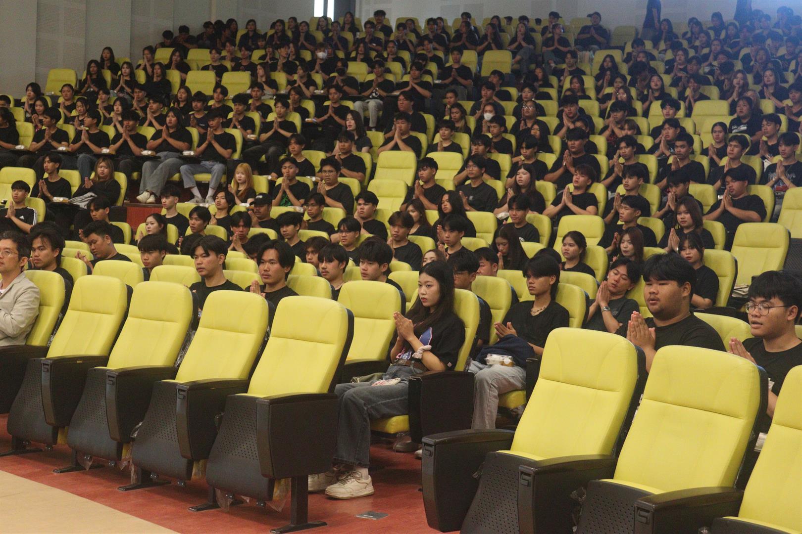 School of Engineering, University of Phayao, through the Student Affairs Division, in collaboration with the Engineering Student Club, Engineering Music Club, and Engineering Photo Up, organized the project to present the “ENGINEERING WORKSHOP XVII” operational shirts to first-year engineering students on 10 January 2025. The ceremony was presided over by Assistant Professor Dr. Natthithanon Phongphanich, Associate Dean for Student Affairs and Industrial Cooperation Development, and was honored by the presence of Dr. Anuchit Phumiphan, Assistant Dean of the School of Engineering. The activity took place at Room UB001, 99th Anniversary Phra Ubali Kunupamachan Building, University of Phayao.