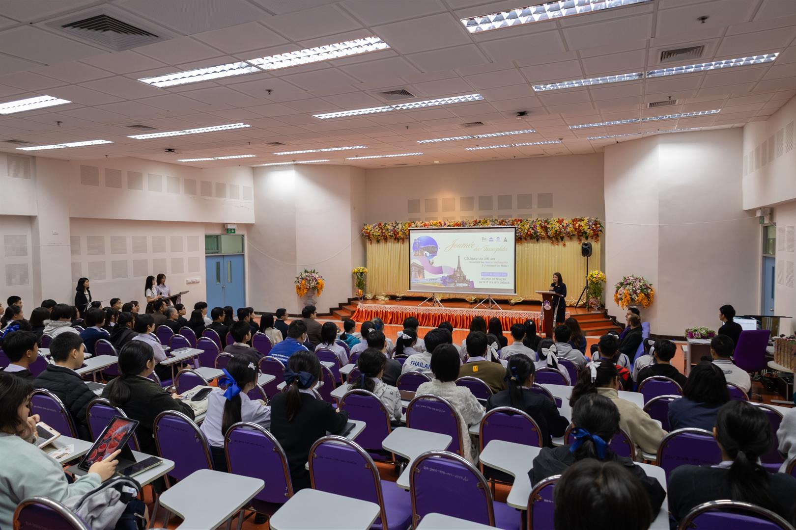 The event was attended by faculty members from higher education institutions, secondary school students, teachers, and undergraduate students of French from various schools and educational institutions, with a total of 100 participants.