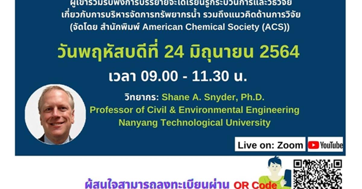 ศูนย์บรรณสารและการเรียนรู้ ขอเชิญบุคลากรและนิสิตมหาวิทยาลัยพะเยา เข้าร่วมรับฟังการบรรยายออนไลน์ “Water Research” ผู้เข้าร่วมรับฟังการบรรยายจะได้เรียนรู้กระบวนการและวิธีวิจัยเกี่ยวกับการบริหารจัดการทรัพยากรน้ำ รวมถึงแนวคิดด้านการวิจัย วันพฤหัสบดีที่ 24 มิถุนายน 2564 ผู้สนใจสามารถลงทะเบียนผ่านเว็บไซต์ shorturl.asia/Qcwtd หรือผ่าน QR Code ติดต่อสอบถามข้อมูลเพิ่มเติมได้ที่ งานคลังข้อมูลเพื่อการวิจัย โทร. 0 5446 6666 ต่อ 3531