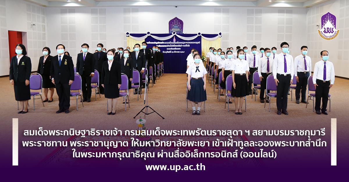 อธิการบดีมหาวิทยาลัยพะเยา รองศาสตราจารย์ ดร.สุภกร พงศบางโพธิ์ นำคณะผู้บริหาร คณาจารย์ และนักเรียนทุนพระราชทาน เข้าเฝ้าทูลละอองพระบาท สมเด็จพระกนิษฐาธิราชเจ้า กรมสมเด็จพระเทพรัตนราชสุดา สยามบรมราชกุมารี ผ่านสื่ออิเล็กทรอนิกส์ (ออนไลน์) จำนวน ๕๑ คน โดยปัจจุบันมหาวิทยาลัยพะเยามีนิสิตและนักเรียนทุนพระราชทาน จำนวนทั้งสิ้น ๒๗ คน ประกอบด้วย นิสิตระดับปริญญาตรี จำนวน ๒๑ คน นิสิตระดับปริญญาโท จำนวน ๔ คน และนักเรียนระดับมัธยมศึกษาตอนปลาย จำนวน ๒ คน