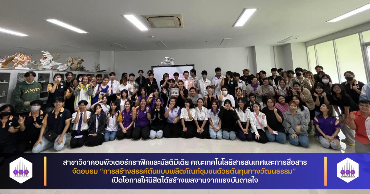 เมื่อวันที่ 29 มิถุนายน 2567 สาขาวิชาคอมพิวเตอร์กราฟิกและมัลติมีเดีย คณะเทคโนโลยีสารสนเทศและการสื่อสาร จัดกิจกรรมการอบรมเชิงปฏิบัติการ “การสร้างสรรค์ต้นแบบผลิตภัณฑ์ชุมชนด้วยต้นทุนทางวัฒนธรรม” ให้กับนิสิตในสาขาวิชาฯ โดยได้รับเกียรติจาก รองศาสตราจารย์ ดร.ดนัย เรียบสกุล ผู้เชี่ยวชาญด้านการออกแบบผลิตภัณฑ์ เป็นวิทยากร ซึ่งมีการบรรยายเกี่ยวกับการสร้างแรงบันดาลใจจากต้นทุนทางวัฒนธรรมและทดลองการทำต้นแบบผลิตภัณฑ์จากวัสดุต่าง ๆ ในหัวข้อ “ศิราภรณ์”นอกจากความรู้จากการบรรยายในครั้งนี้ นิสิตยังได้รับความสนุกสนานจากการปฏิบัติงานจริง รวมไปจนถึงกระบวนการความคิดสร้างสรรค์ที่เกิดจากการทำงานอีกด้วย