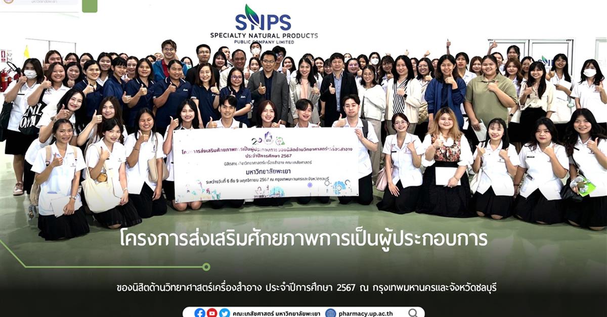 เมื่อวันที่ 6-9 พฤศจิกายน 2567 ที่ผ่านมา รองศาสตราจารย์ ดร. เภสัชกรสุรศักดิ์ เสาแก้ว คณบดีคณะเภสัชศาสตร์ พร้อมด้วยคณาจารย์สาขาวิชาวิทยาศาสตร์เครื่องสำอาง ได้นำนิสิตสาขาวิชาวิทยาศาสตร์เครื่องสำอางชั้นปีที่ 2 และ 3 เข้าร่วมโครงการส่งเสริมศักยภาพการเป็นผู้ประกอบการของนิสิตด้านวิทยาศาสตร์เครื่องสำอาง ประจำปีการศึกษา 2567 ณ กรุงเทพมหานครและจังหวัดชลบุรี