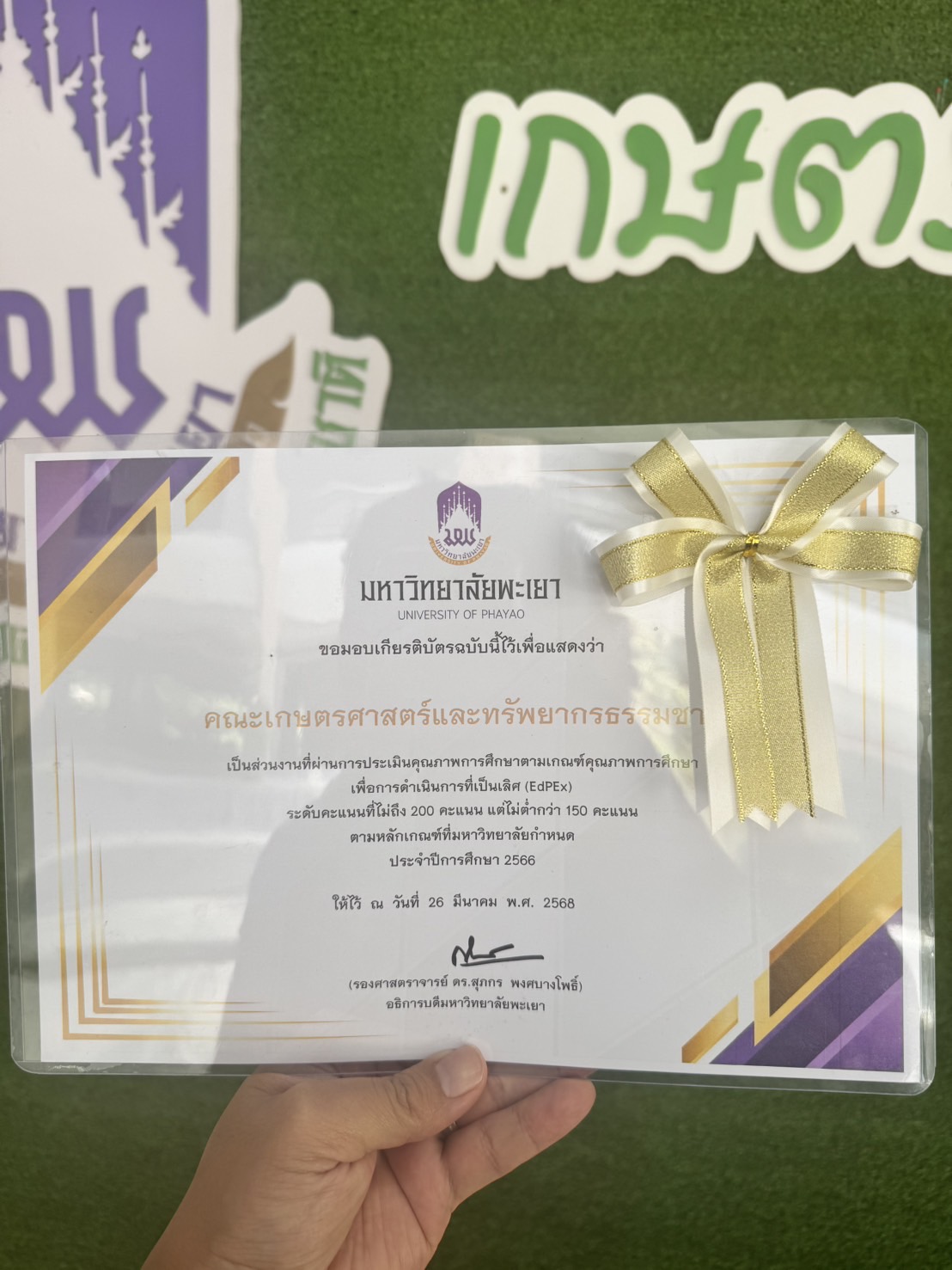 คณะเกษตรศาสตร์และทรัพยากรธรรมชาติ มหาวิทยาลัยพะเยา คว้ารางวัลผ่านการประเมินคุณภาพการศึกษา EdPEx ปีการศึกษา 2566