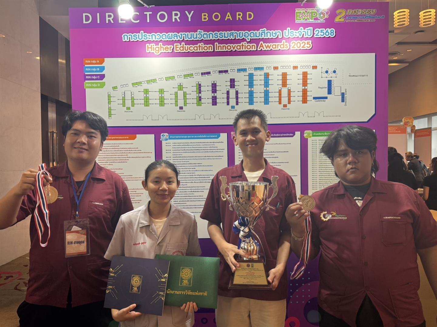 ทีมนิสิตสาขาวิชาเทคโนโลยีการเกษตร คณะเกษตรศาสตร์และทรัพยากรธรรมชาติ มหาวิทยาลัยพะเยา สร้างชื่อเสียงในเวทีระดับประเทศ คว้ารางวัล เหรียญทองระดับดีเด่น (อันดับ 1) และ เหรียญเงิน จากการประกวดผลงานนวัตกรรมสายอุดมศึกษา ประจำปี 2568 (Higher Education Innovation Awards 2025) กลุ่ม 1 ด้านการเกษตรและอุตสาหกรรมอาหาร ซึ่งจัดขึ้นระหว่างวันที่ 16 – 18 มิถุนายน 2568 โดยสำนักงานการวิจัยแห่งชาติ (วช.) โดยมี ดร.วิภารัตน์ ดีอ่อง ผู้อำนวยการสำนักงานการวิจัยแห่งชาติ เป็นประธานในพิธีมอบรางวัล ในงานมหกรรมงานวิจัยแห่งชาติ 2568 (Thailand Research Expo 2025) ณ โรงแรมเซ็นทาราแกรนด์ และบางกอกคอนเวนชันเซ็นเตอร์ เซ็นทรัลเวิลด์ กรุงเทพมหานคร