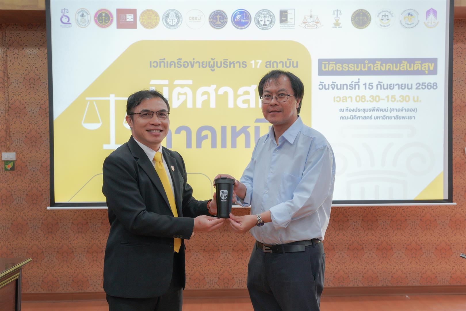 วันที่ 15 กันยายน 2568 คณะนิติศาสตร์ มหาวิทยาลัยพะเยา จัดกิจกรรม “เสวนาเครือข่ายความร่วมมือด้านวิชาการนิติศาสตร์ (ภาคเหนือ)” ณ ห้องประชุมรพีพัฒน์ และผ่านระบบออนไลน์ (MS-Team) โดยมีคณบดีและผู้แทนจากสถาบันการศึกษาด้านกฎหมายในภาคเหนือเข้าร่วมอย่างคับคั่ง