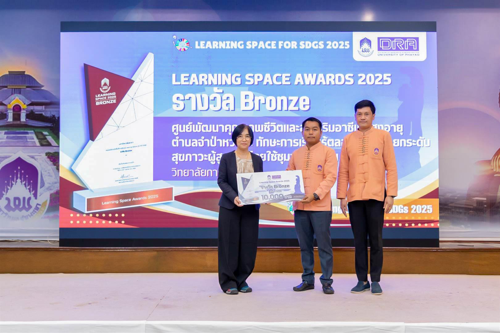 เมื่อวันที่ 18 กันยายน 2568 ผู้ช่วยศาสตราจารย์ ดร.วัชระ จตุพร รองคณบดีฝ่ายวิจัยและบริการวิชาการเชิงพื้นที่ พร้อมด้วย ผู้ช่วยศาสตราจารย์ ดร.สุนทร คล้ายอ่ำ รองคณบดีฝ่ายบริหารและพัฒนาคุณภาพนิสิต ผู้ช่วยศาสตราจารย์ ดร.น้ำฝน กันมา รองคณบดีฝ่ายวิชาการ และนวัตกรรมการศึกษา ผู้ช่วยศาสตราจารย์ ดร.ณัฐวุฒิ สัพโส ผู้ช่วยคณบดี ผู้ช่วยศาสตราจารย์ ดร.ลำไย สีหามาตย์ ประธานหลักสูตรปรัชญาดุษฎีบัณฑิต สาขาวิชาหลักสูตรและการสอน และหลักสูตรการศึกษามหาบัณฑิต สาขาวิชาหลักสูตรและการสอน ดร.อาภาพรรณ ประทุมไทย ดร.นริศรา เสือคล้าย อาจารย์สาขาวิชาวัดและประเมินผลการศึกษา ผู้ช่วยศาสตราจารย์ ดร.วิลาวัลย์ สมยาโรน อาจารย์สาขาวิชาเทคโนโลยีทางการศึกษา บุคลากรสายสนับสนุน และนวัตกรชุมชน เข้าร่วมกิจกรรม Pitching การประกวดรางวัลสนับสนุนพื้นที่การเรียนรู้ (Learning Space for SDGs 2025) ณ ห้องประชุมเมืองพะเยา มหาวิทยาลัยพะเยา ซึ่งกิจกรรมการประกวดครั้งนี้จัดขึ้นอย่างต่อเนื่องเป็น ปีที่ 5 ภายใต้หัวข้อ “Learning Space for SDGs” โดยได้รับเกียรติจาก ศาสตราจารย์ ดร.เสมอ ถาน้อย รองอธิการบดีฝ่ายวิจัยและนวัตกรรม เป็นประธานกล่าวเปิดโครงการฯ เพื่อส่งเสริมการสร้างและพัฒนาพื้นที่การเรียนรู้ที่สามารถสร้างผลกระทบเชิงบวกต่อชุมชนได้อย่างเป็นรูปธรรม และสอดคล้องกับเป้าหมายการพัฒนาที่ยั่งยืนขององค์การสหประชาชาติ (Sustainable Development Goals - SDGs) ซึ่งเป็นหนึ่งในตัวชี้วัดสำคัญ หรือ Flagship ของมหาวิทยาลัย ทั้งนี้ วิทยาลัยการศึกษาได้รับ รางวัล Bronze ในหัวข้อ “ศูนย์พัฒนาคุณภาพชีวิตและส่งเสริมอาชีพผู้สูงอายุตำบลจำป่าหวาย : ทักษะการเรียนรู้ตลอดชีวิตเพื่อยกระดับสุขภาวะผู้สูงอายุโดยใช้ชุมชนเป็นฐาน” พื้นที่ดำเนินการ หมู่ที่ 7 บ้านบุญเรือง ตำบลจำป่าหวาย อำเภอเมือง จังหวัดพะเยา สอดคล้องกับเป้าหมายการพัฒนาที่ยั่งยืน (Sustainable Development Goals) SDG 3 : การมีสุขภาพและความเป็นอยู่ที่ดี (Good Health and Well-being) SDG 4: ส่งเสริมโอกาสในการเรียนรู้ สร้างการศึกษาที่มีคุณภาพและเท่าเทียม (Quality Education) SDG 8 : ส่งเสริมการจ้างงานที่มีคุณค่าและเติบโตทางเศรษฐกิจ SDG 10 : ลดความเหลื่อมล้ำ (Reduced Inequalities) SDG 11 : สร้างเมืองและการตั้งถิ่นฐานที่ปลอดภัยและยั่งยืน และSDG 17 : สร้างความร่วมมือเพื่อการพัฒนาที่ยั่งยืน (Partnerships for the Goals)