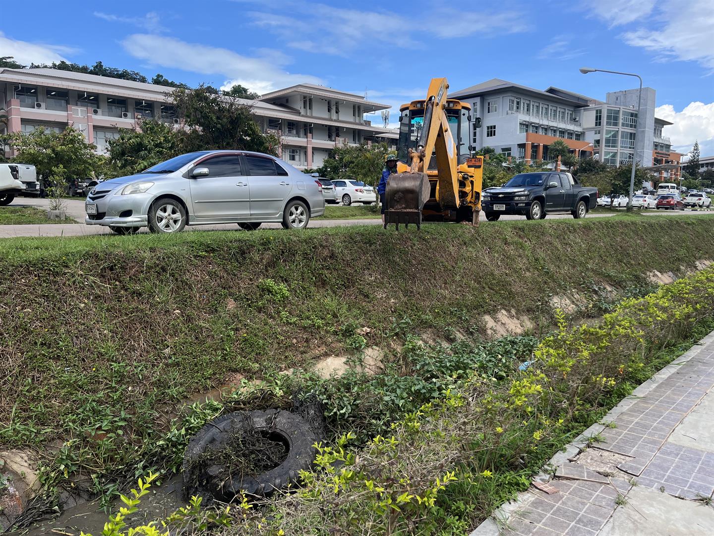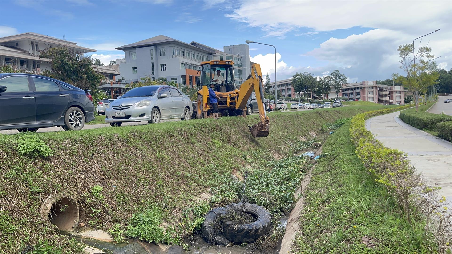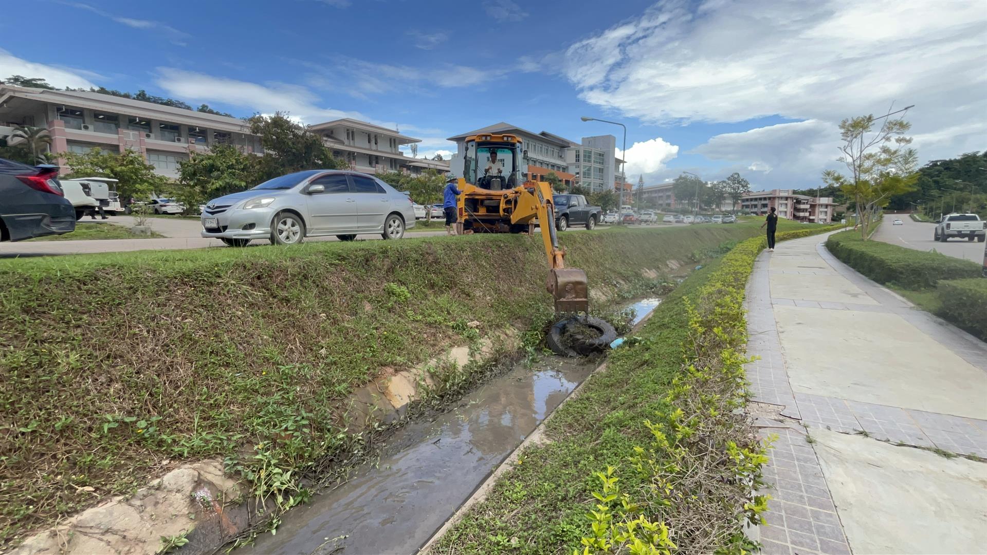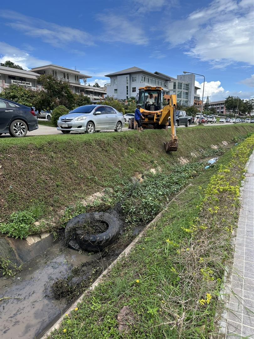 วันที่ 25 กันยายน 2568 กองอาคารสถานที่ มหาวิทยาลัยพะเยา โดยทีมงานความปลอดภัย ได้นำเครื่องจักรกลเข้าดำเนินการลอกท่อและรางระบายน้ำ บริเวณด้านหน้าอาคารเรียนคณะสาธารณสุขศาสตร์ คณะเภสัชศาสตร์ และคณะวิศวกรรมศาสตร์ เพื่อกำจัดวัชพืช ดิน และโคลนที่สะสมภายในรางระบายน้ำตลอดแนว จากสถานการณ์ฝนตกหนักที่ผ่านมา