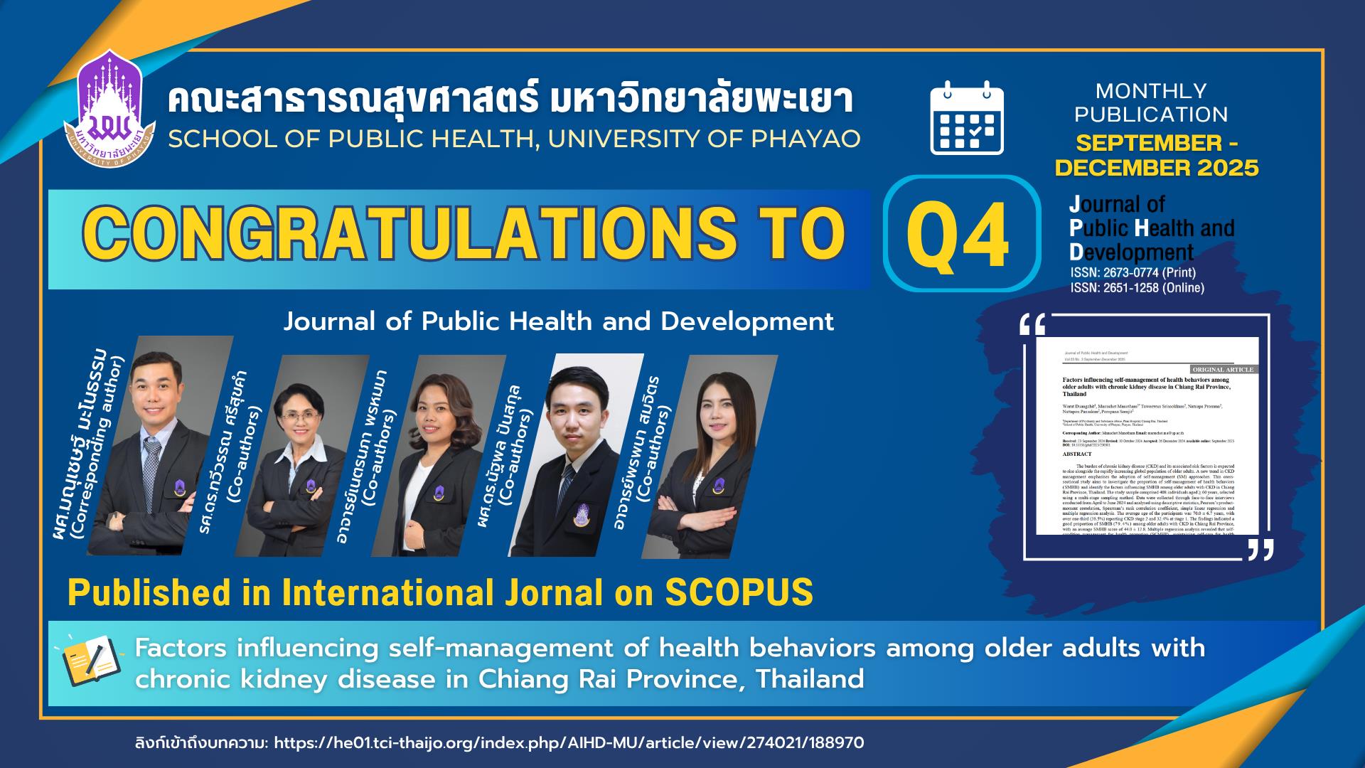 เรื่อง: Factors influencing self-management of health behaviors among older adults with chronic kidney disease in Chiang Rai Province, Thailand